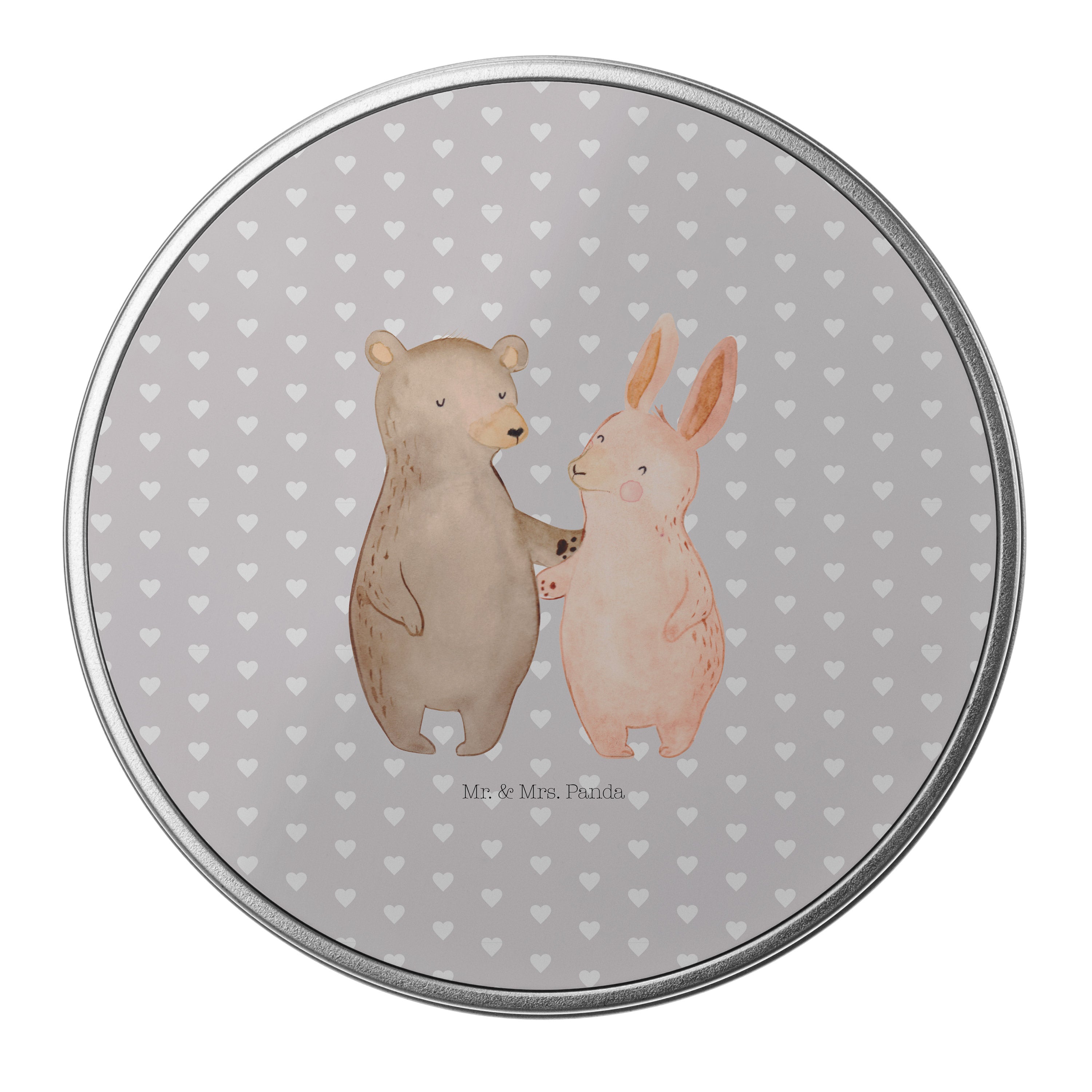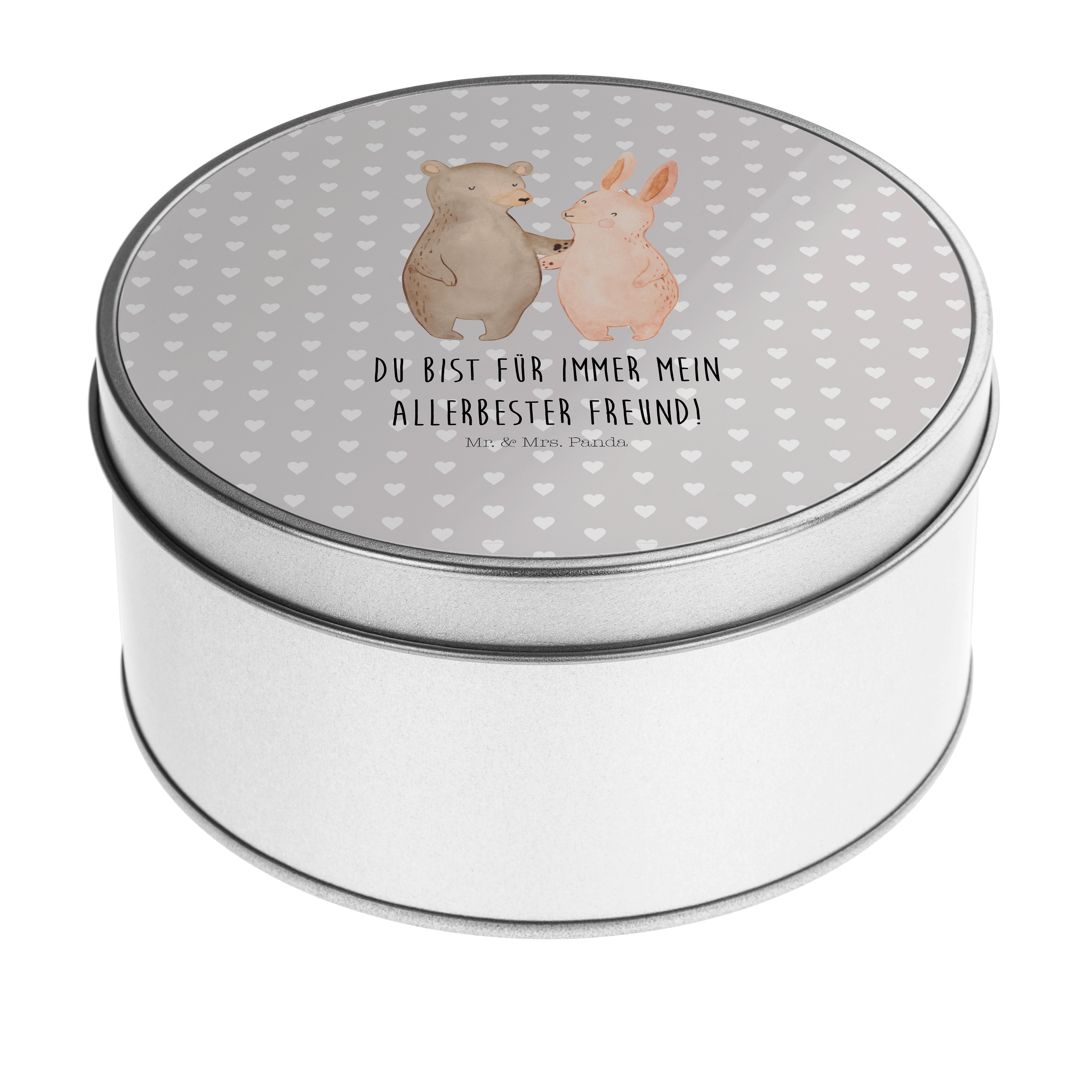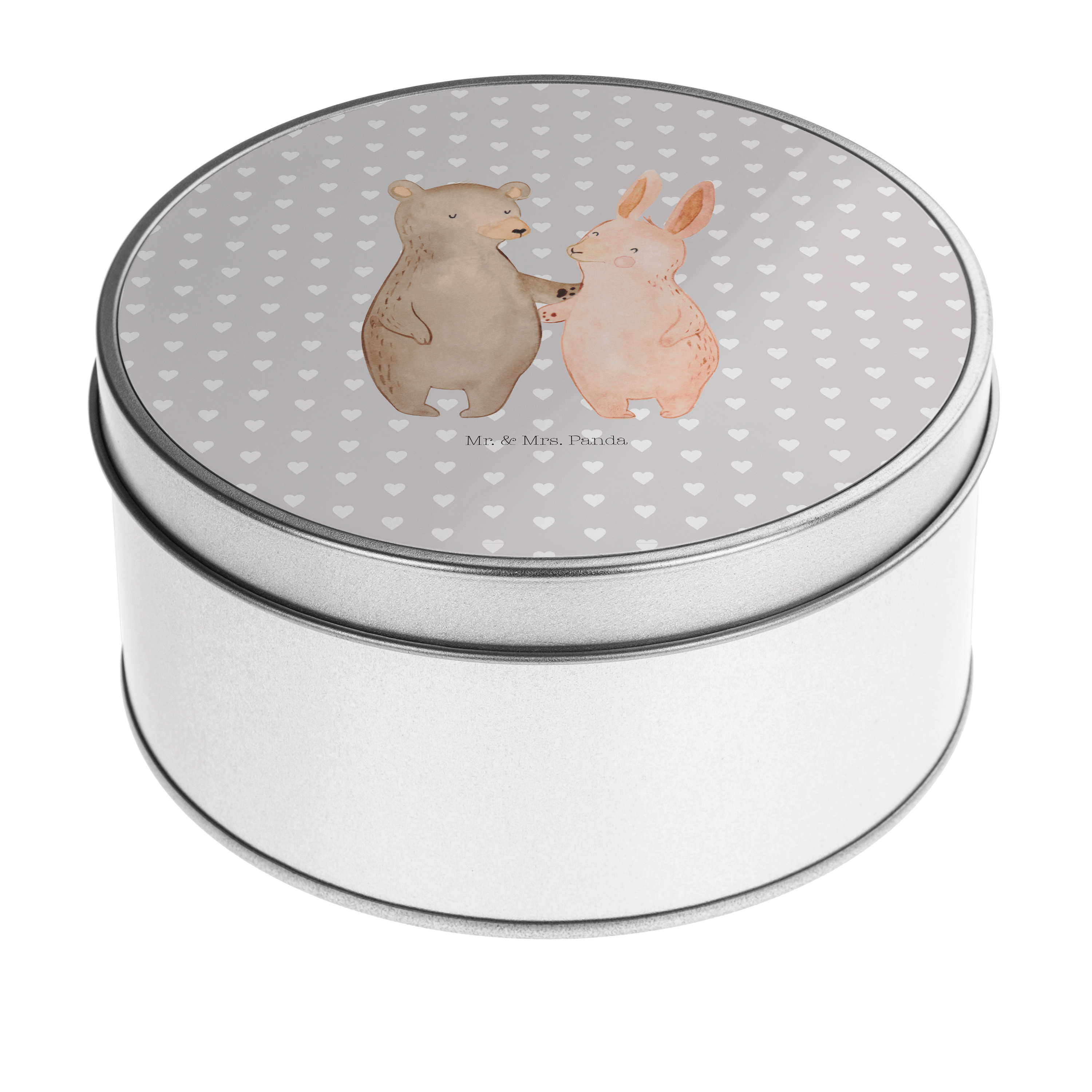 Blechdose rund Bär Hase Umarmen - mit Spruch - Grau Pastell