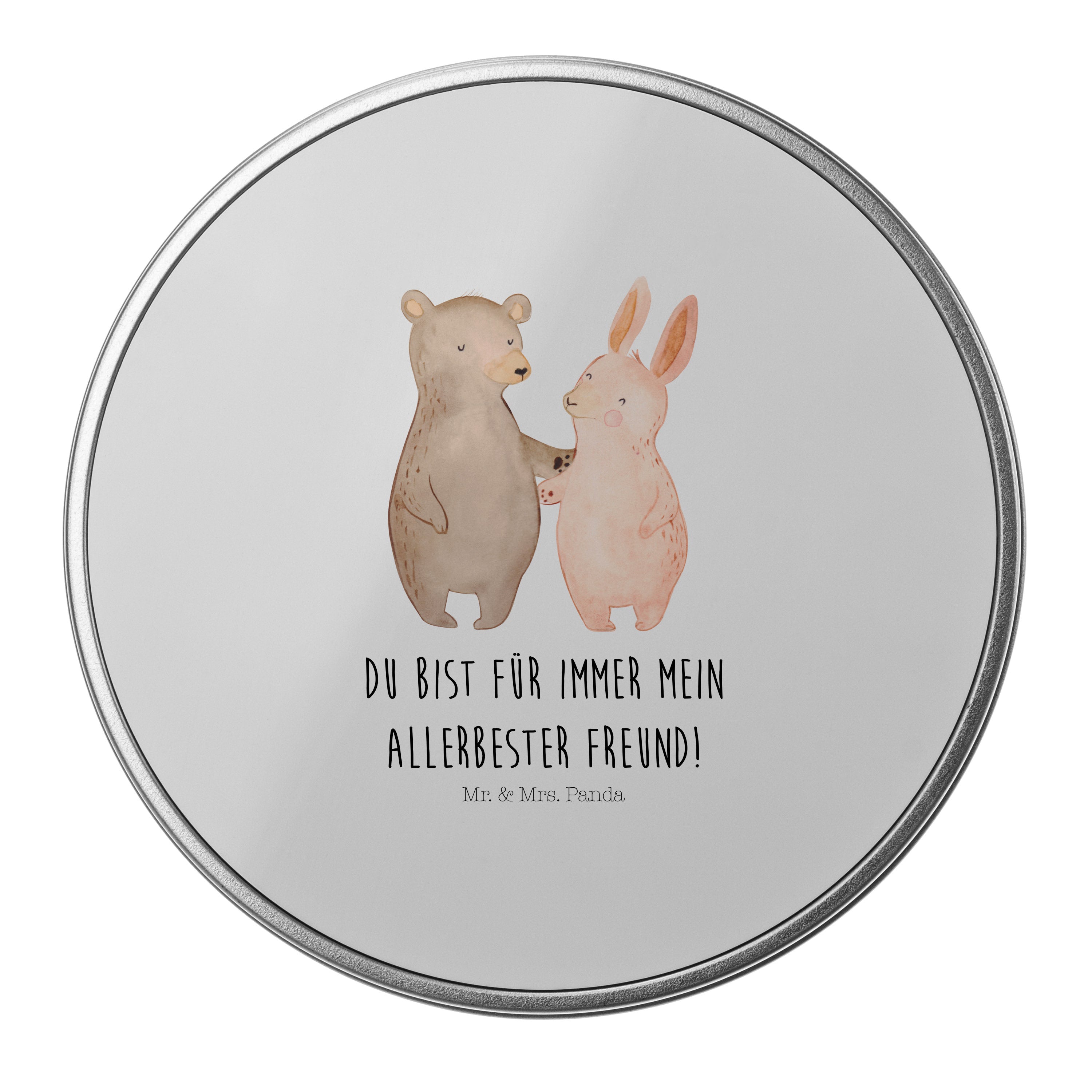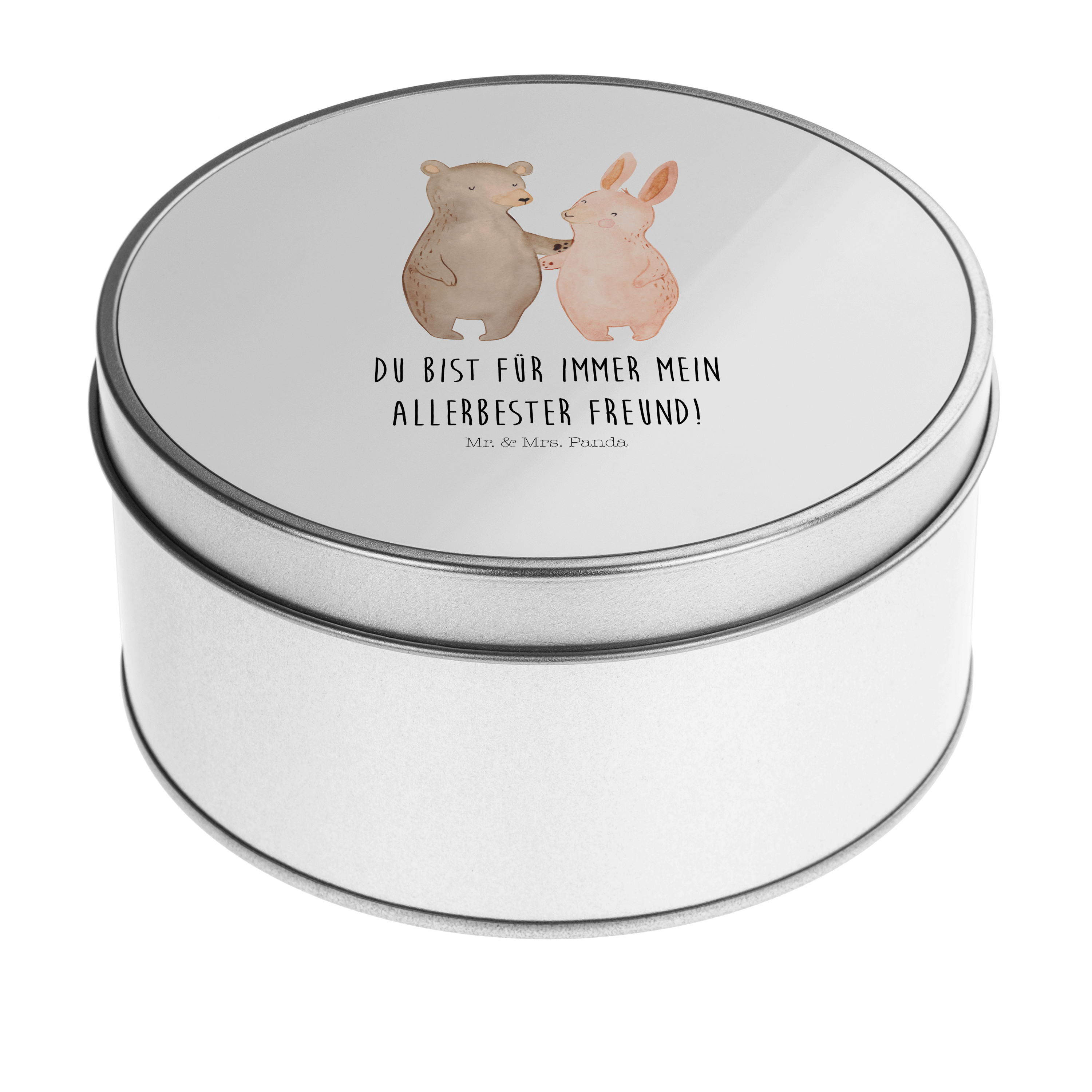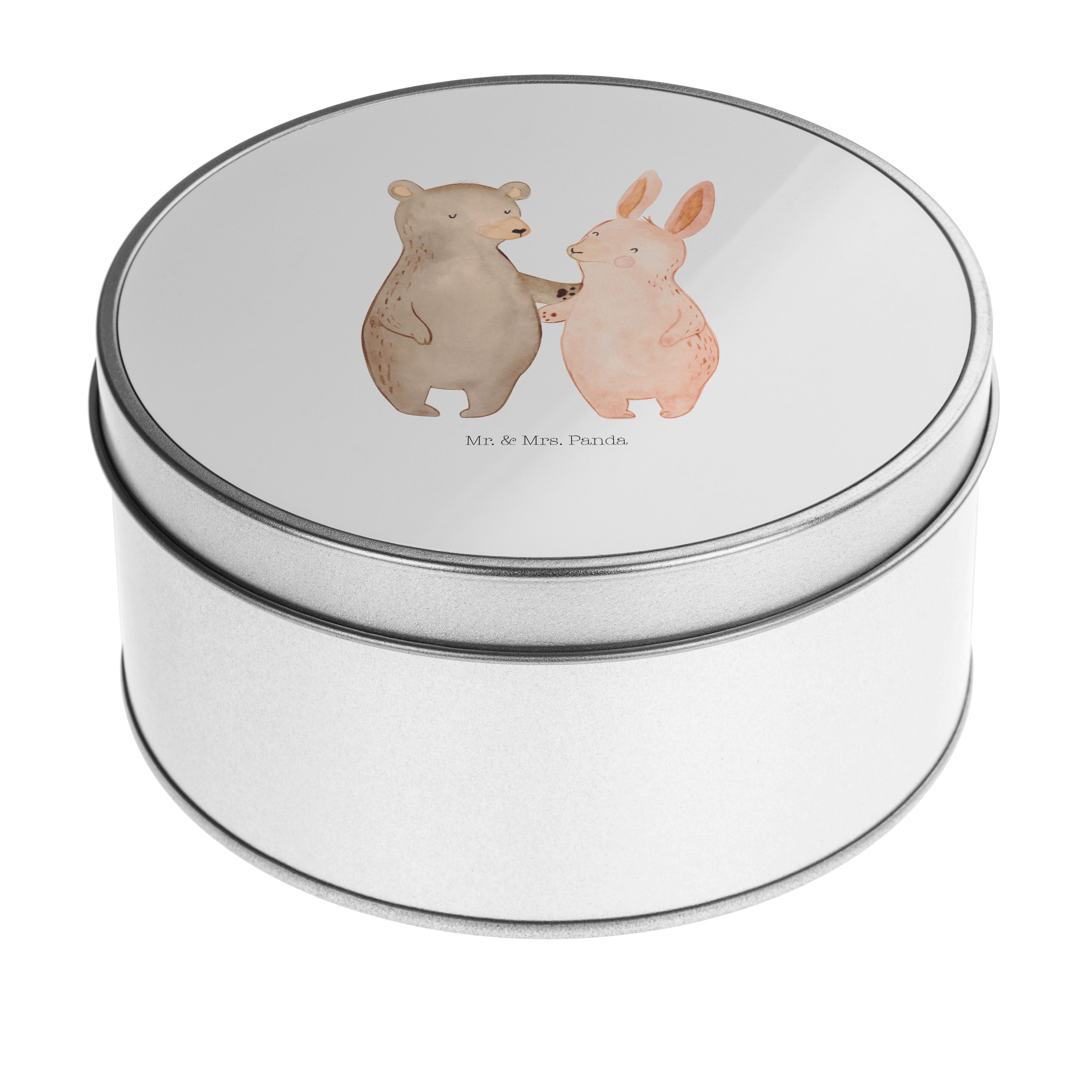 Blechdose rund Bär Hase Umarmen - mit Spruch - Grau Pastell
