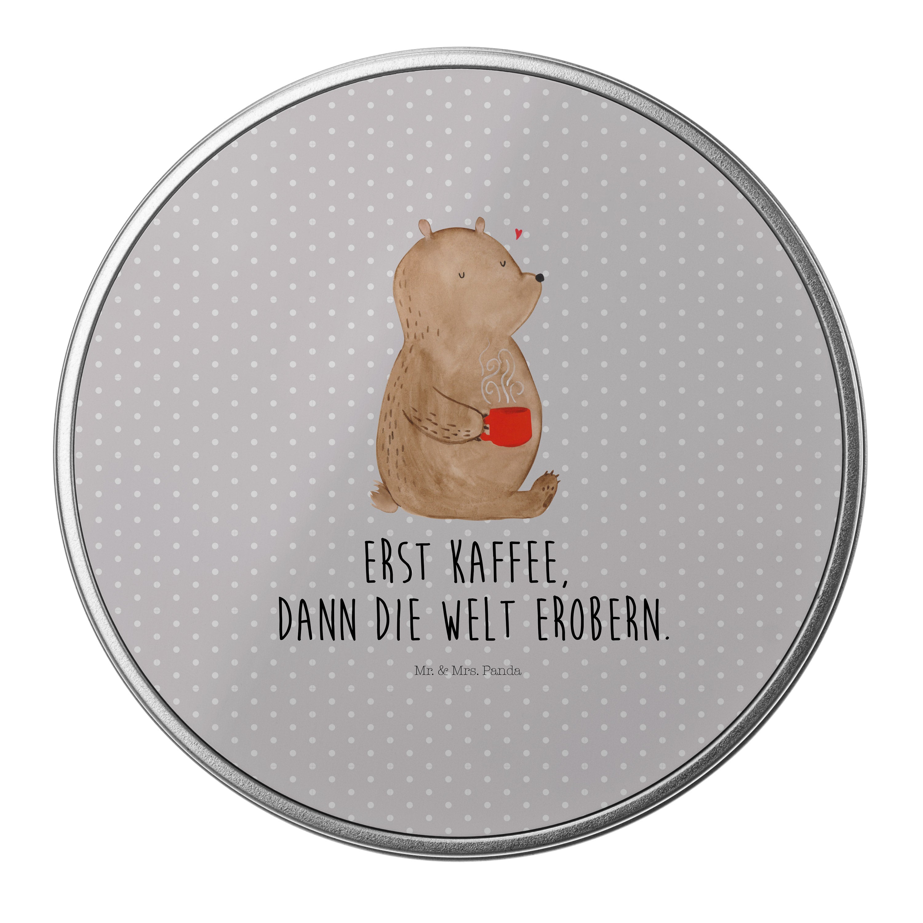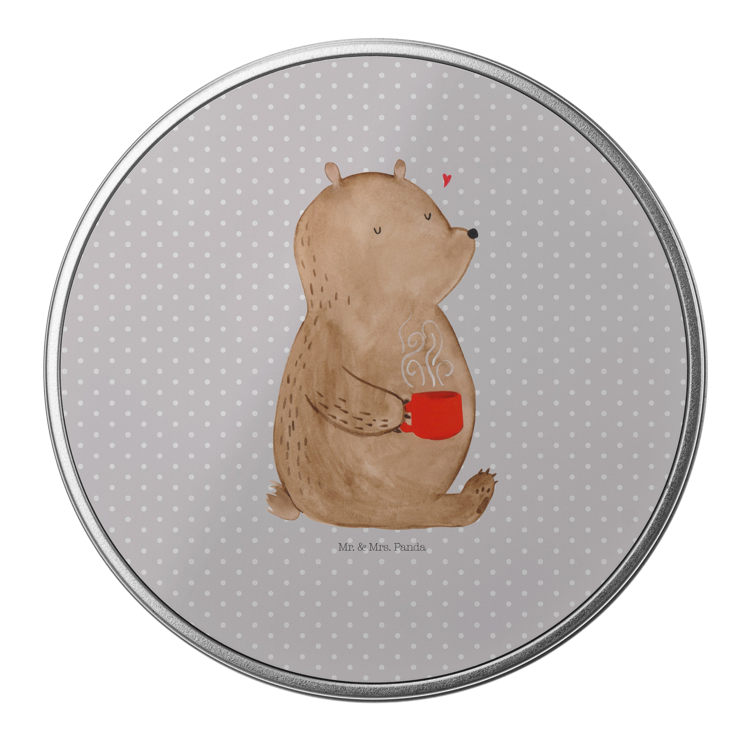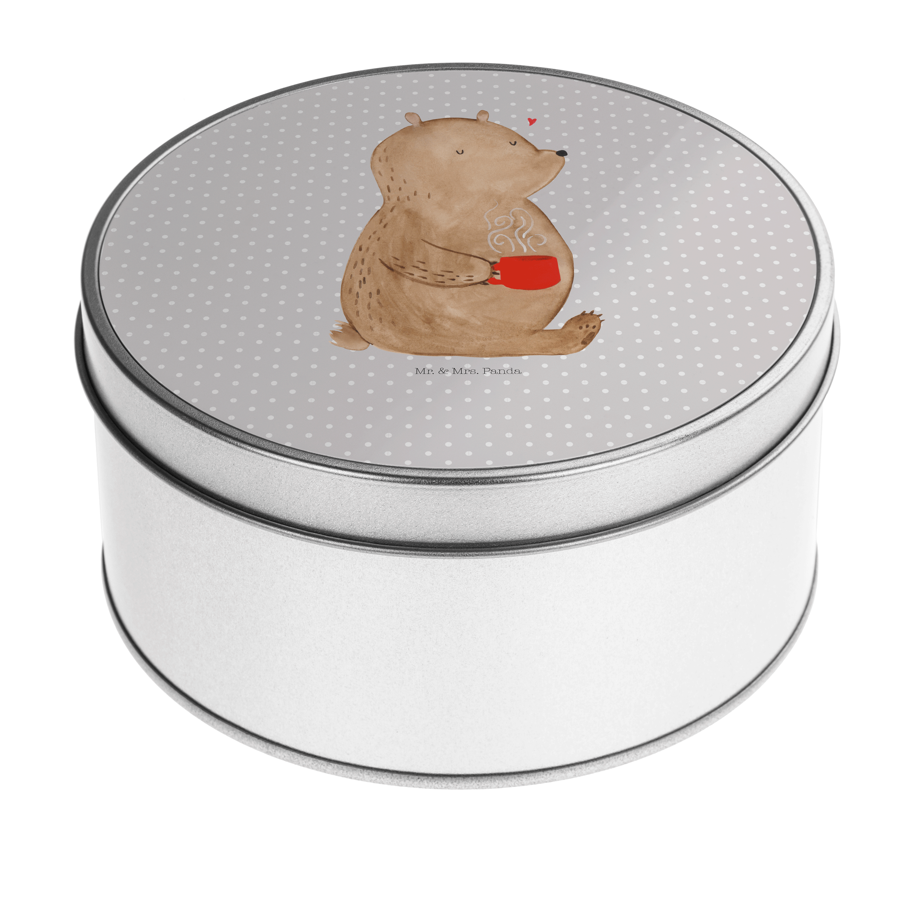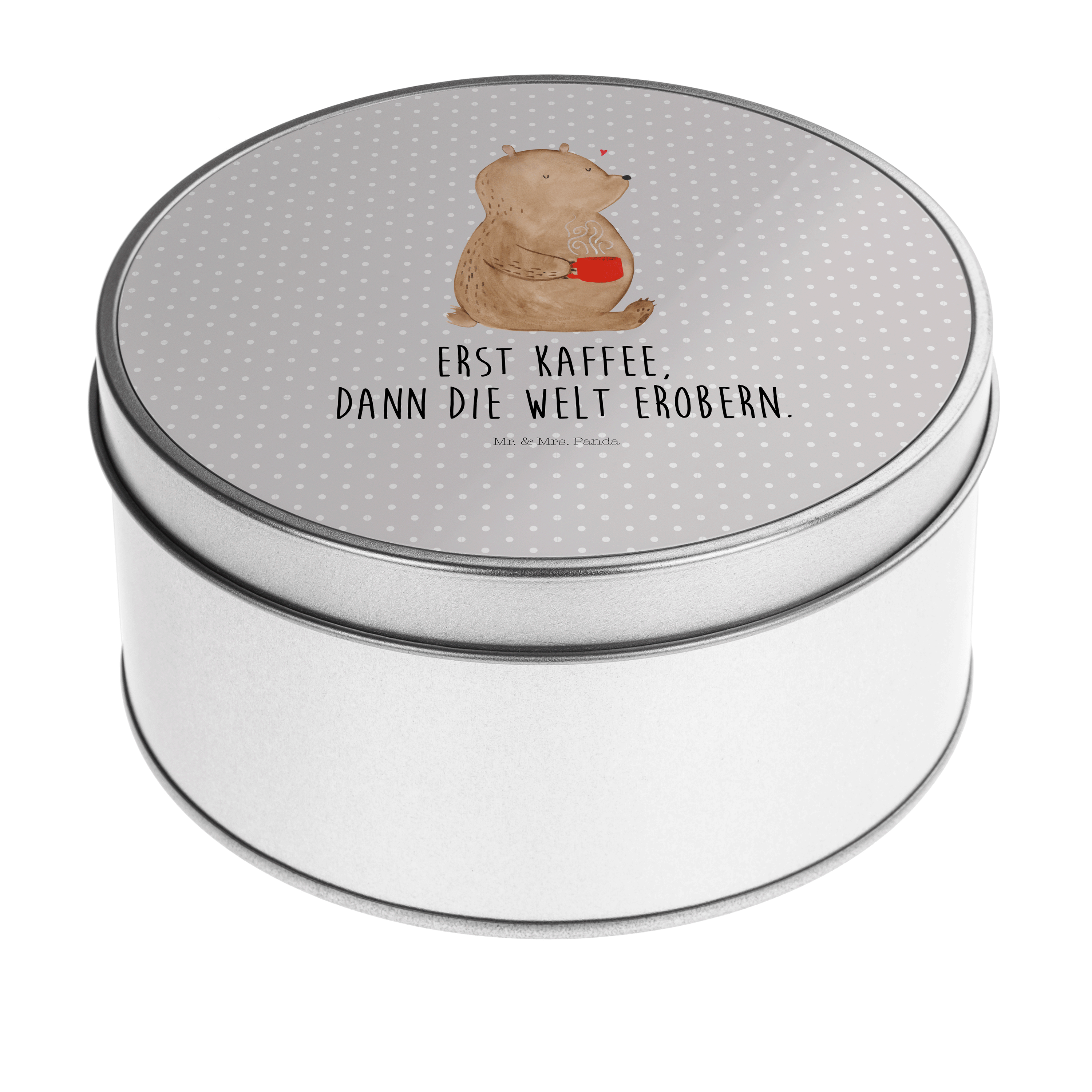 Blechdose rund Bär Kaffee - mit Spruch - Grau Pastell