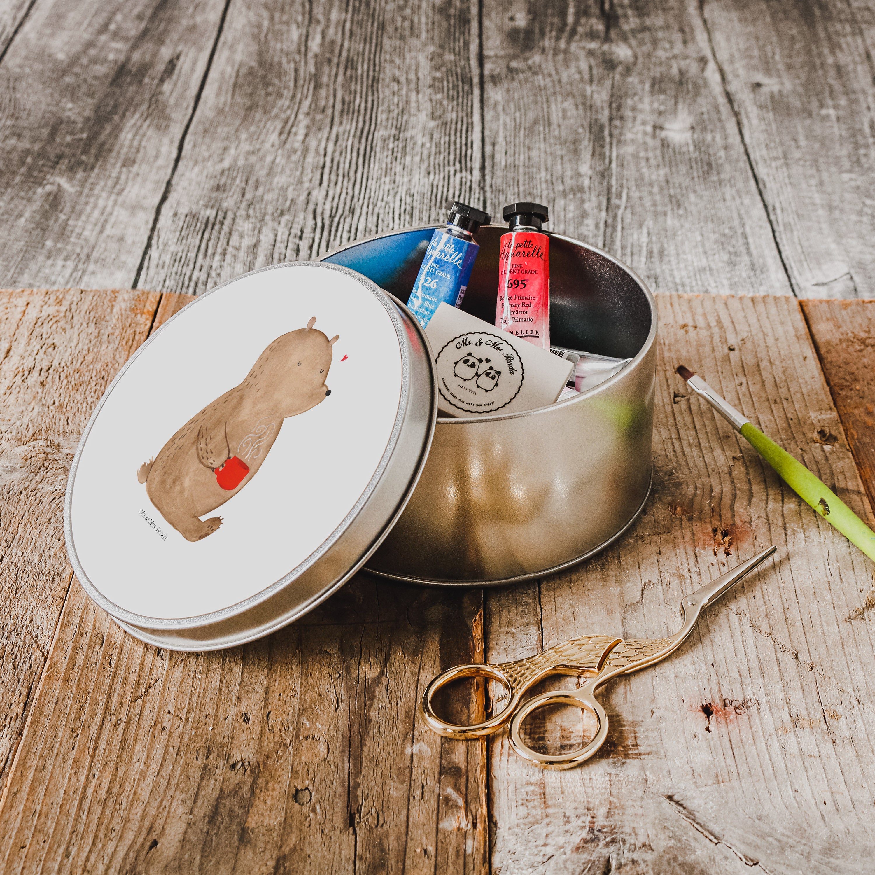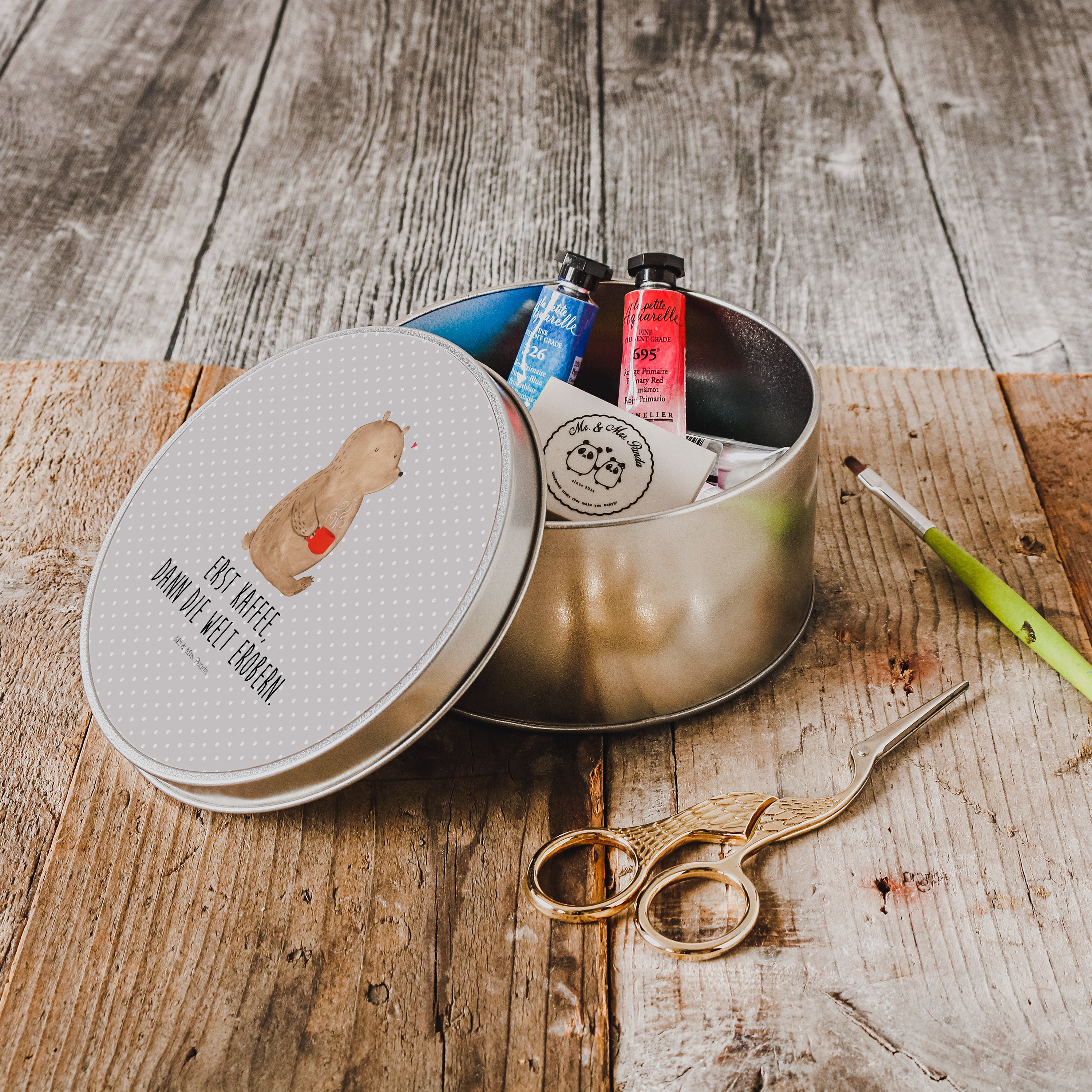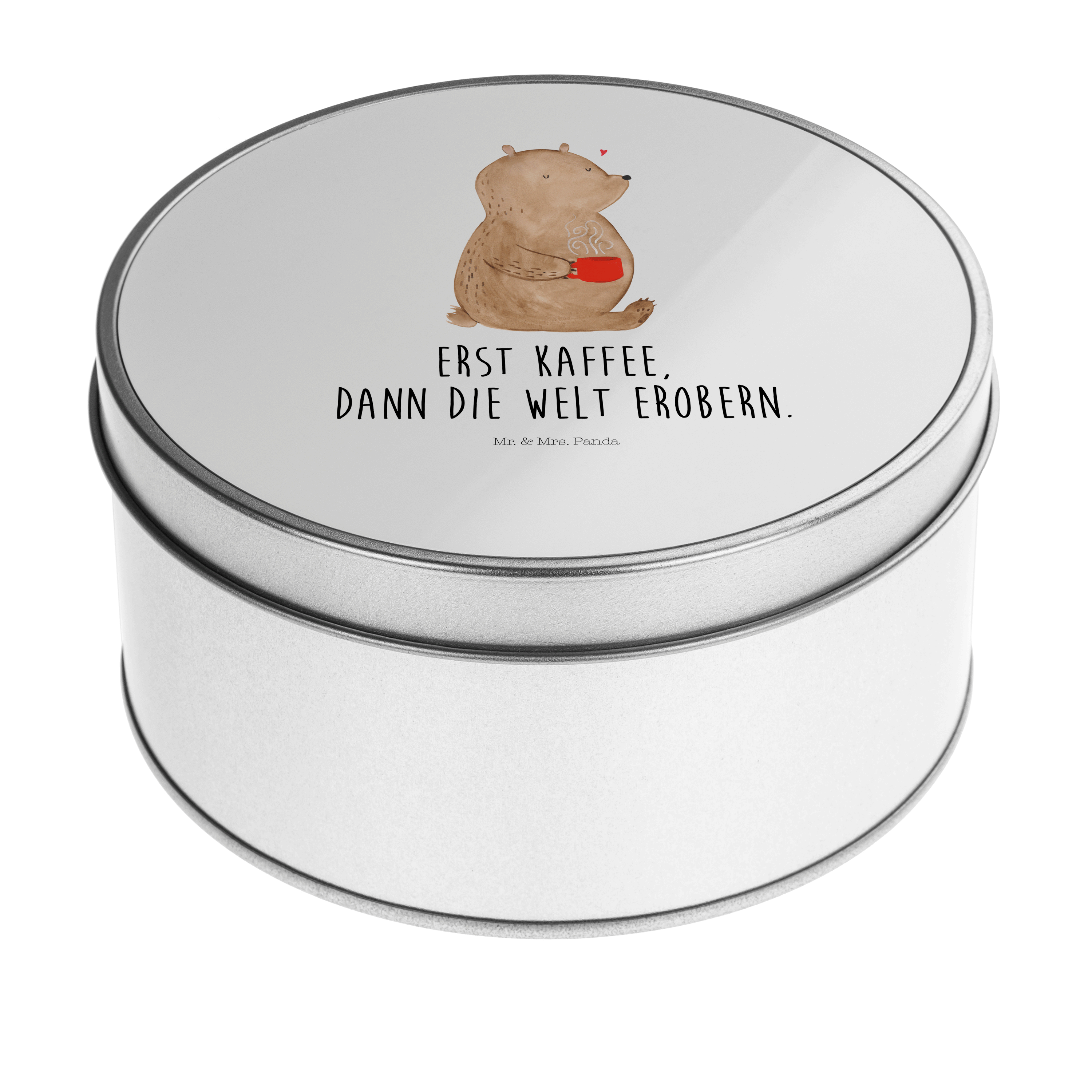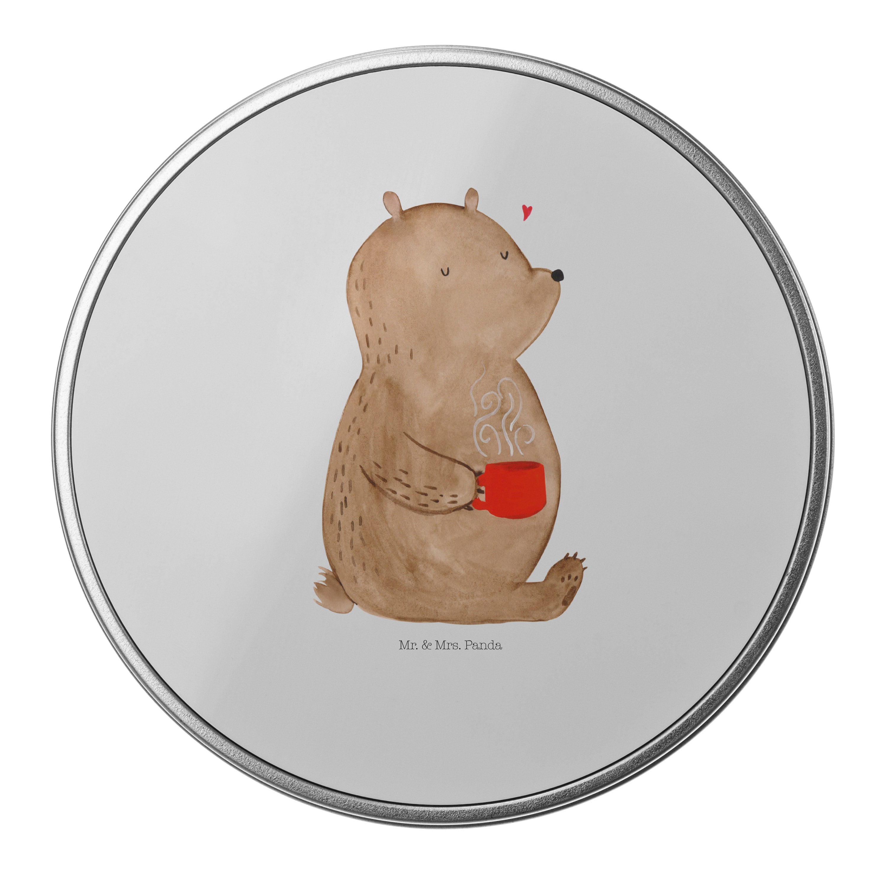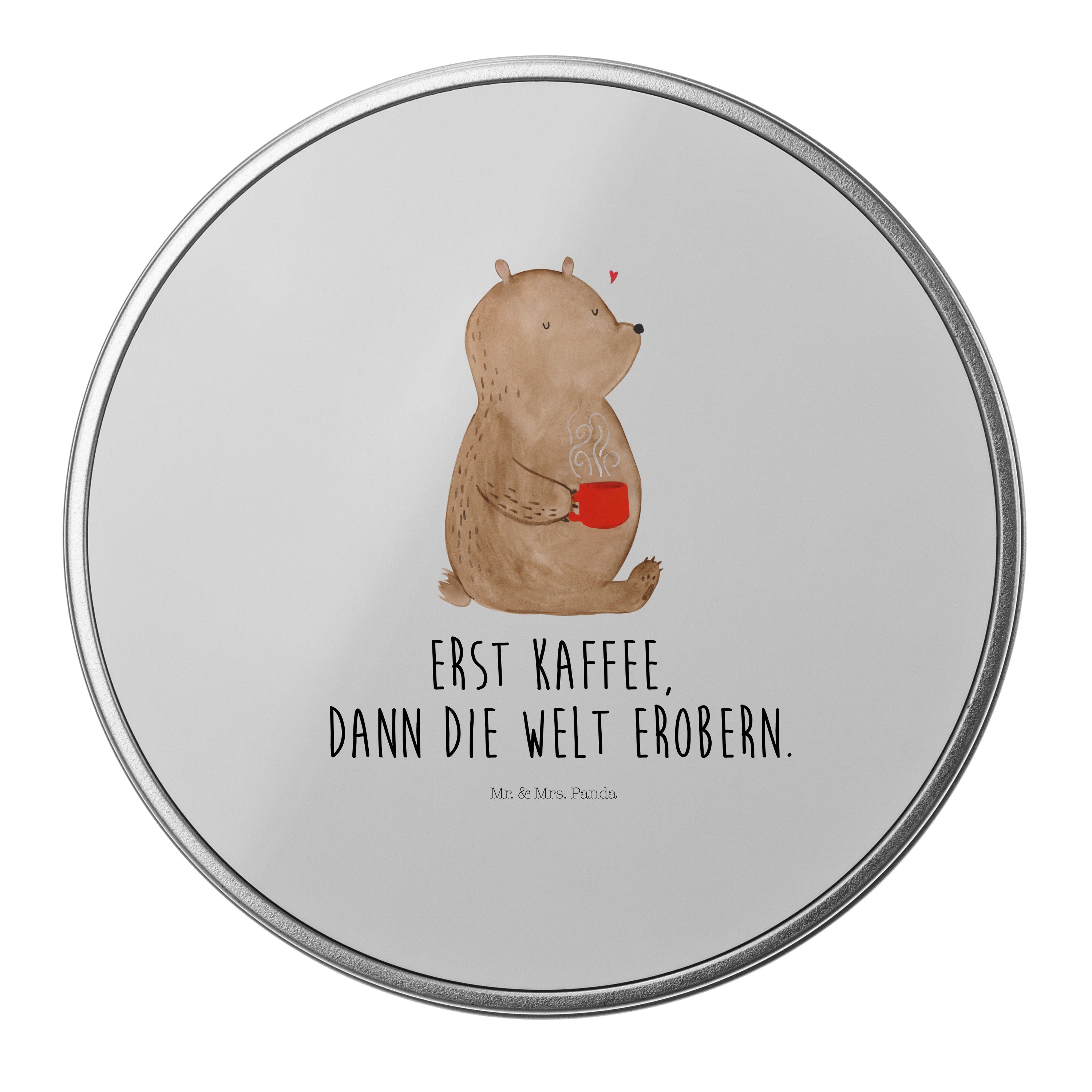 Blechdose rund Bär Kaffee - mit Spruch - Grau Pastell