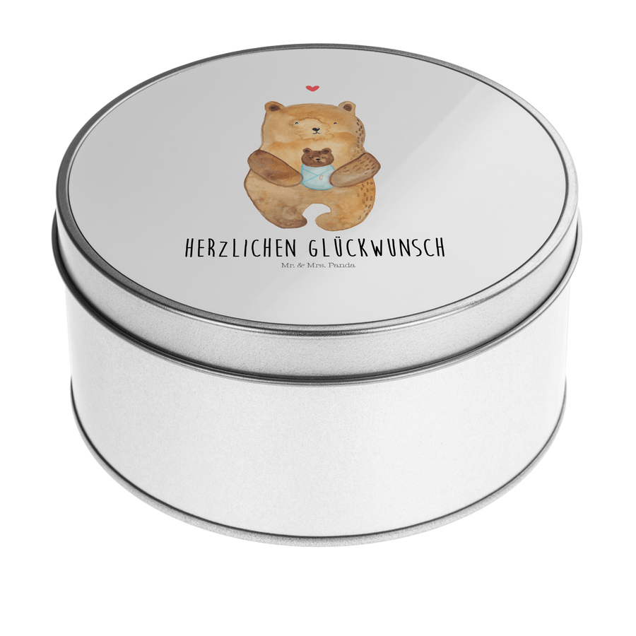 Blechdose rund Bär mit Baby - mit Spruch - Weiß