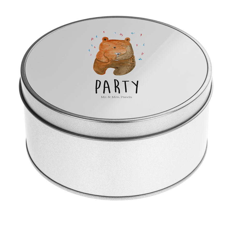 Blechdose rund Bär Party - mit Spruch - Weiß