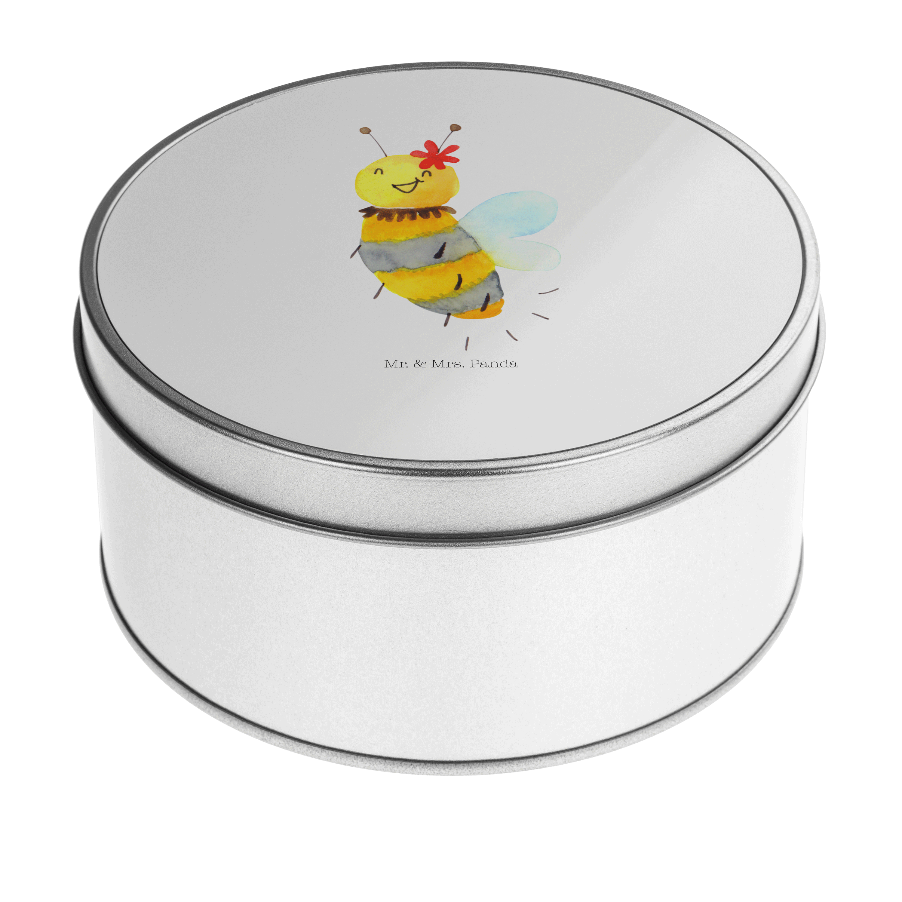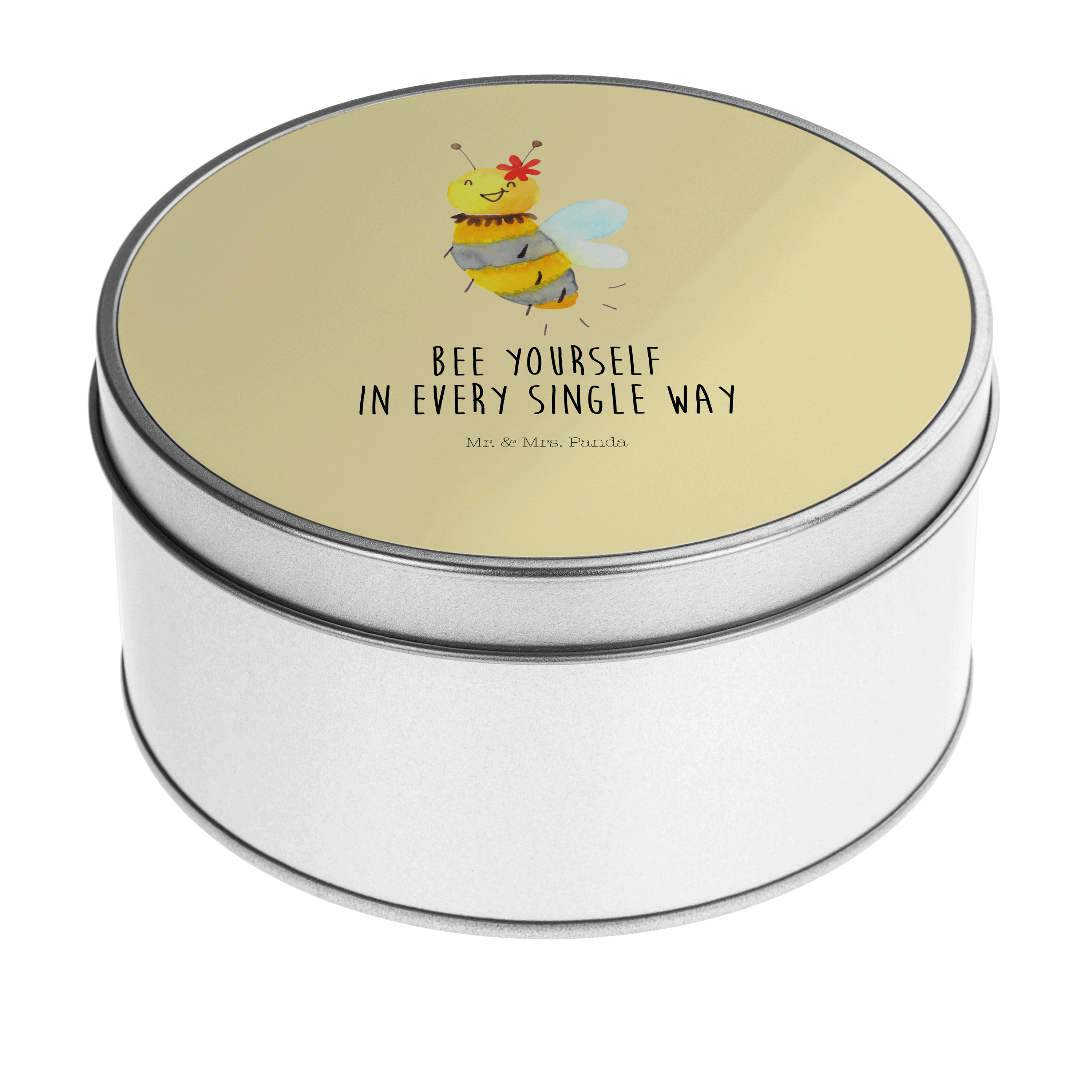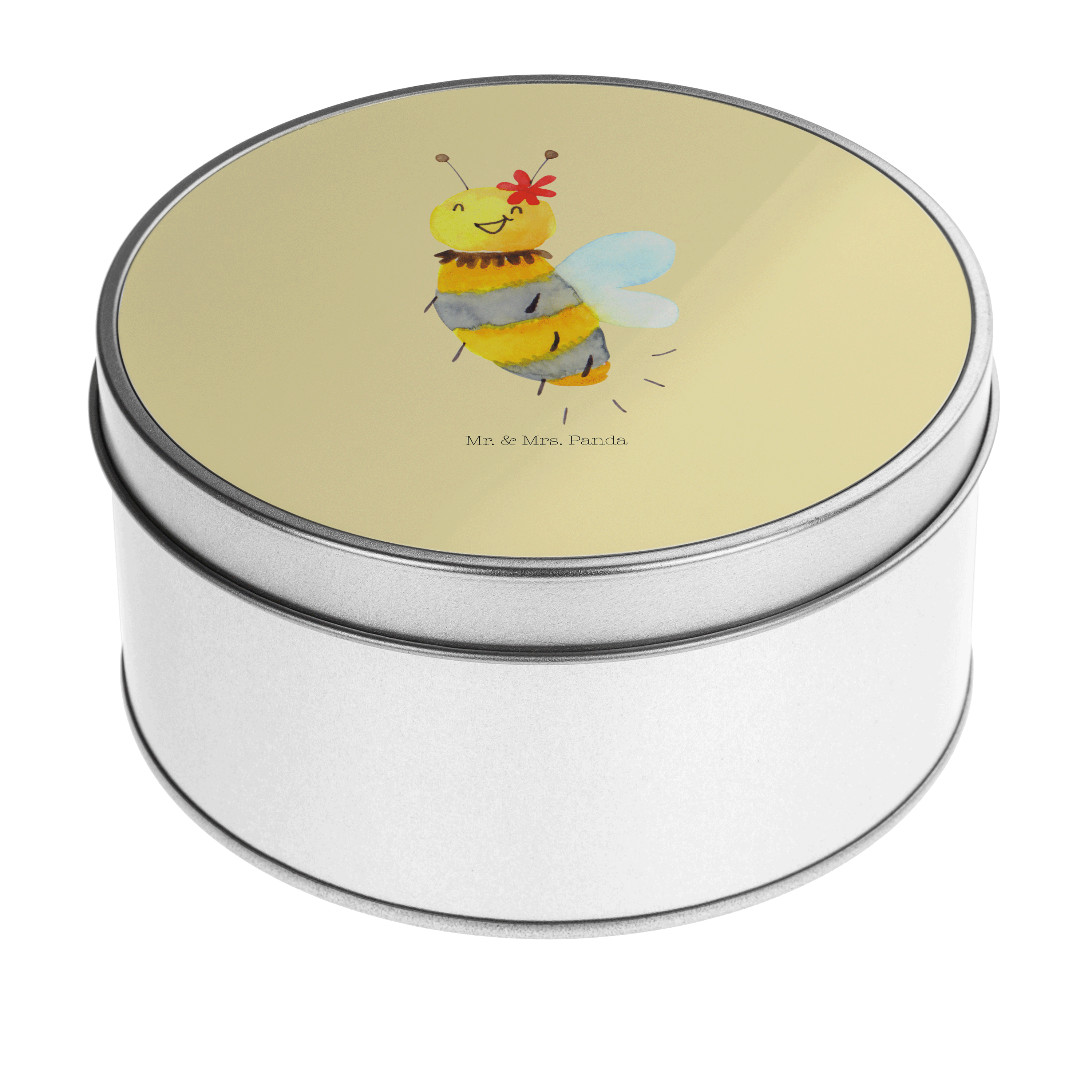 Blechdose rund Biene Blume - mit Spruch - Gelb Pastell