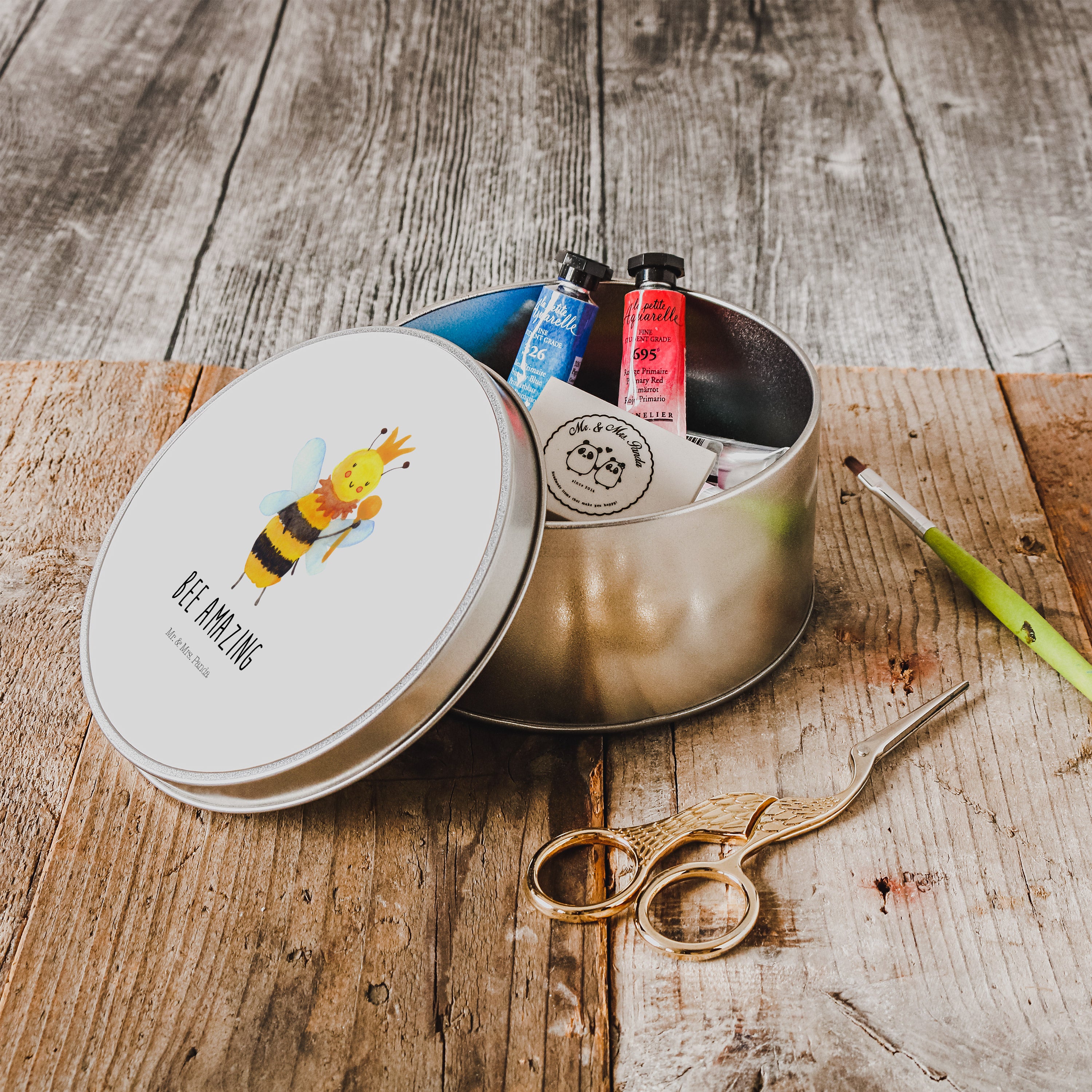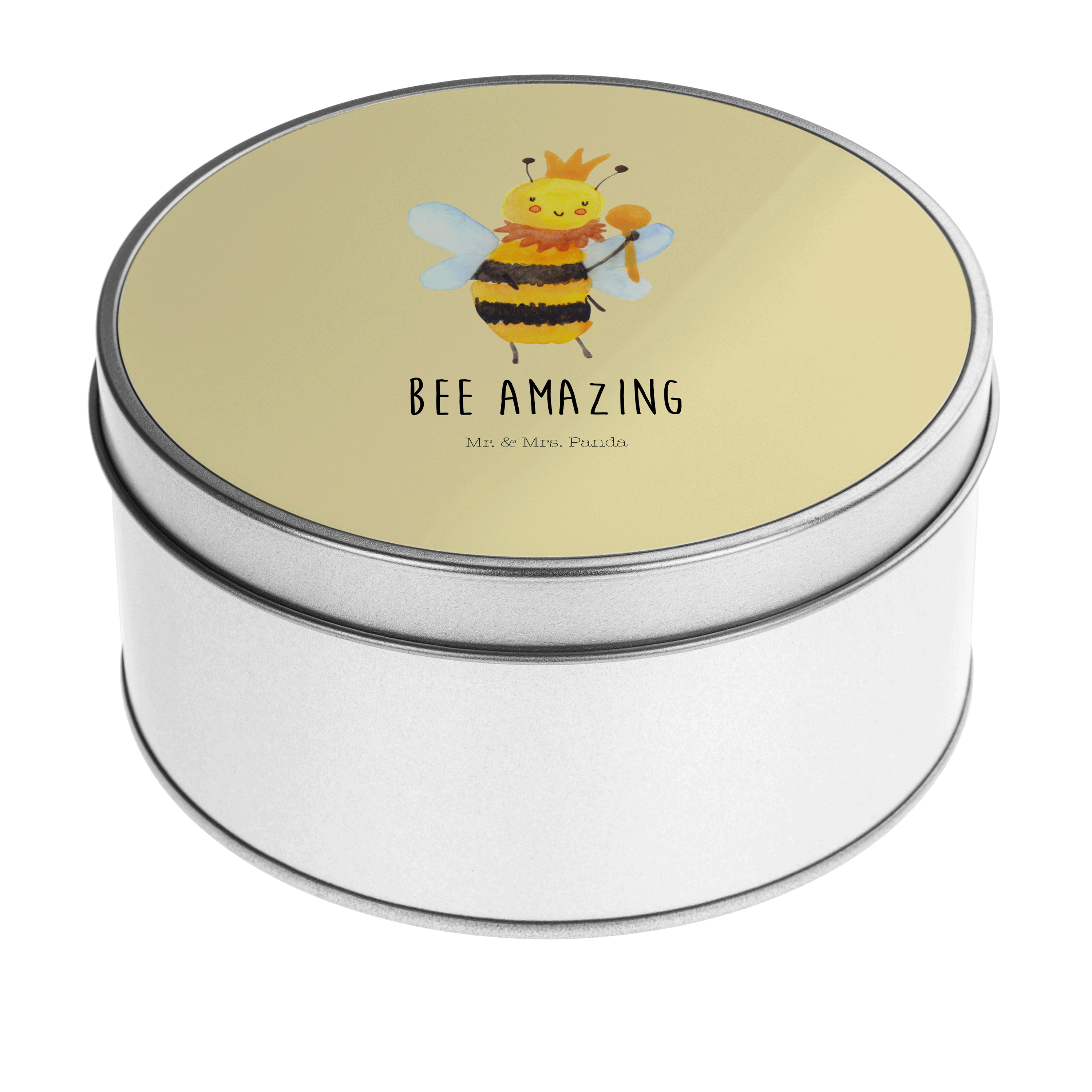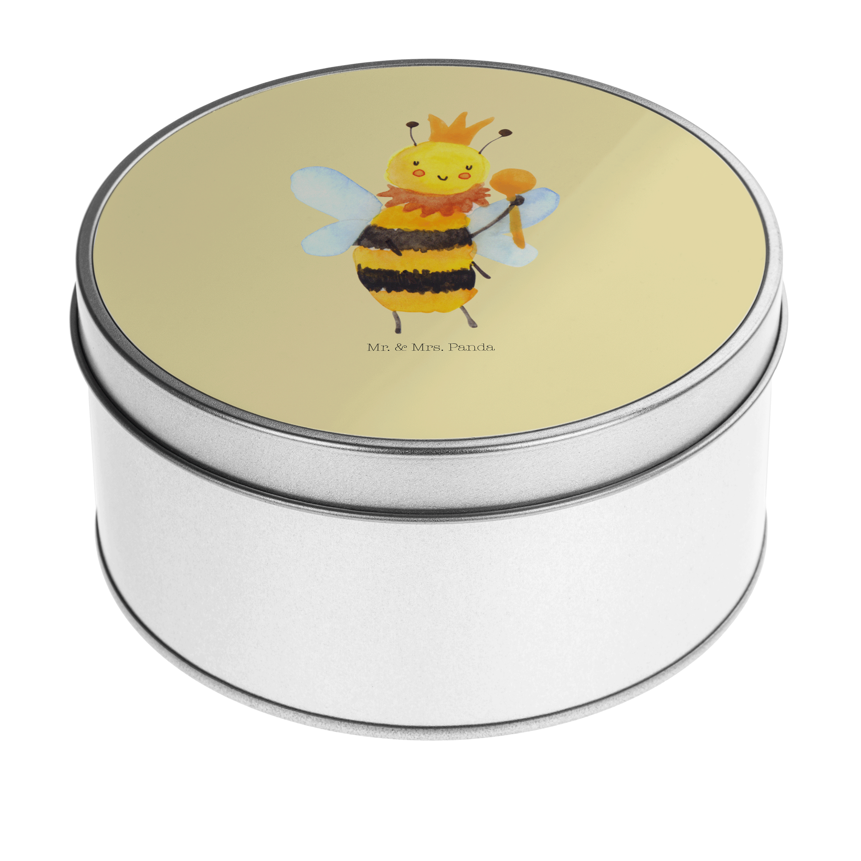 Blechdose rund Biene König - mit Spruch - Gelb Pastell