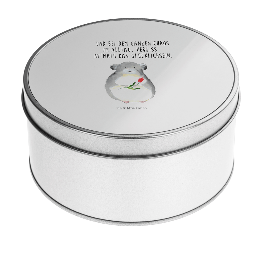 Blechdose rund Chinchilla mit Blume - mit Spruch - Weiß