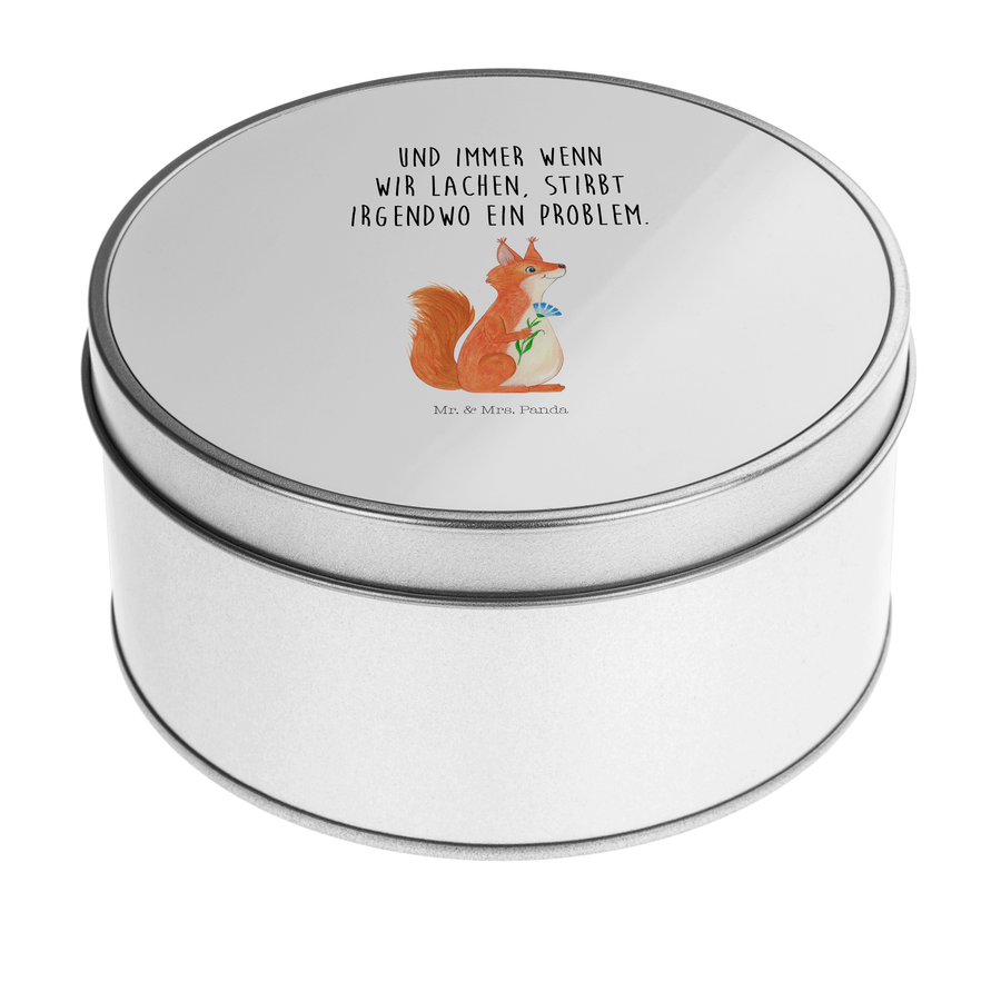 Blechdose rund Eichhörnchen Blume - mit Spruch - Weiß