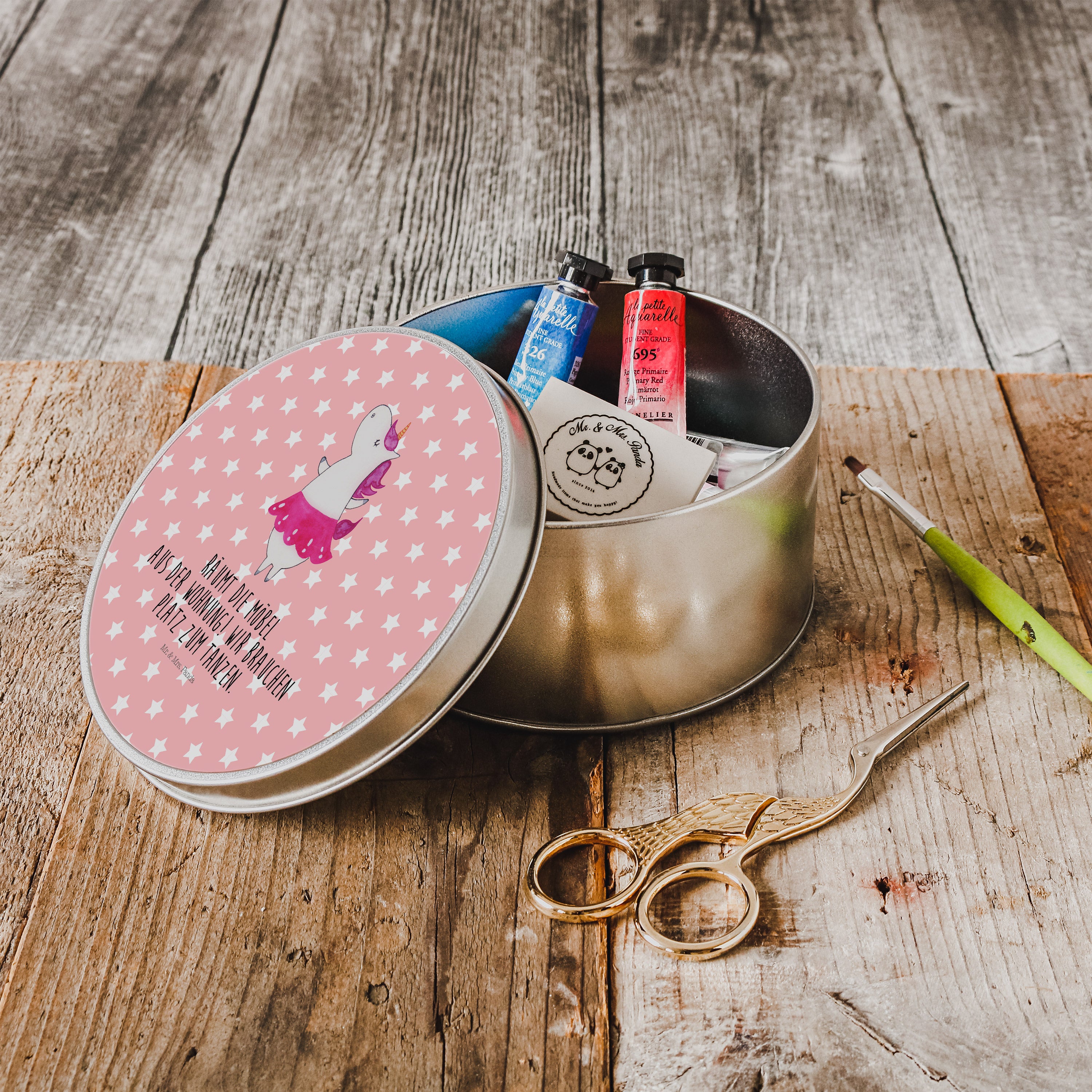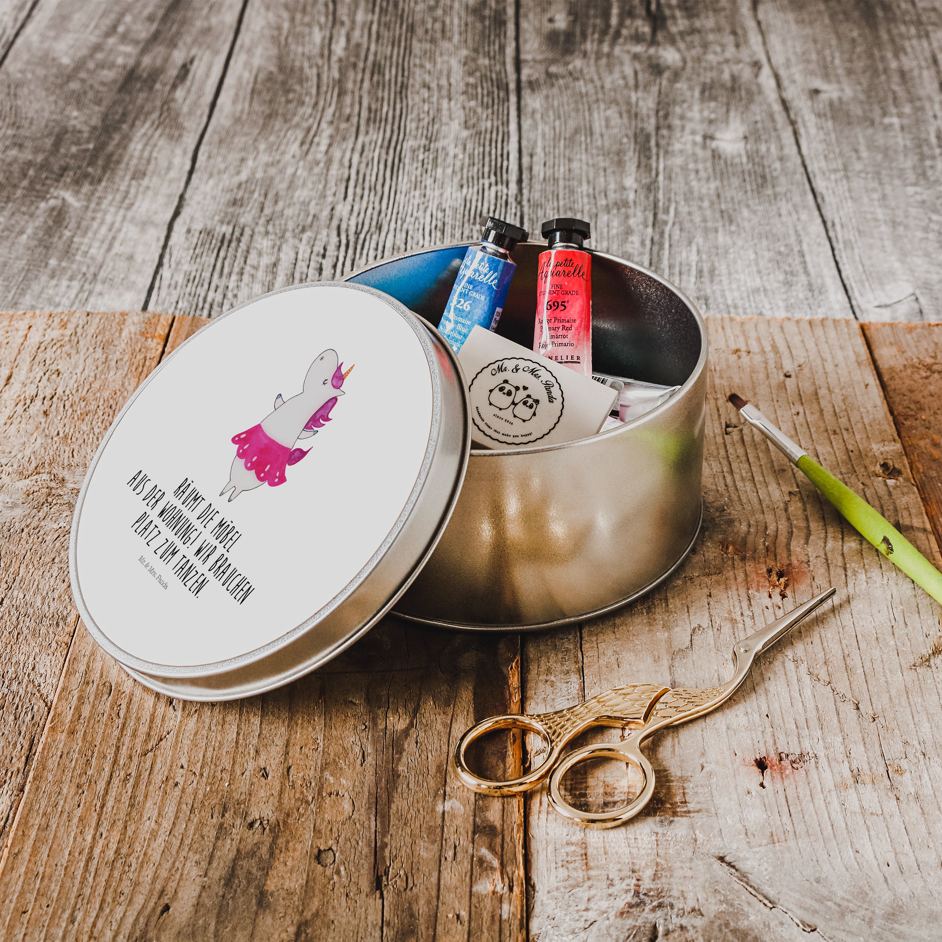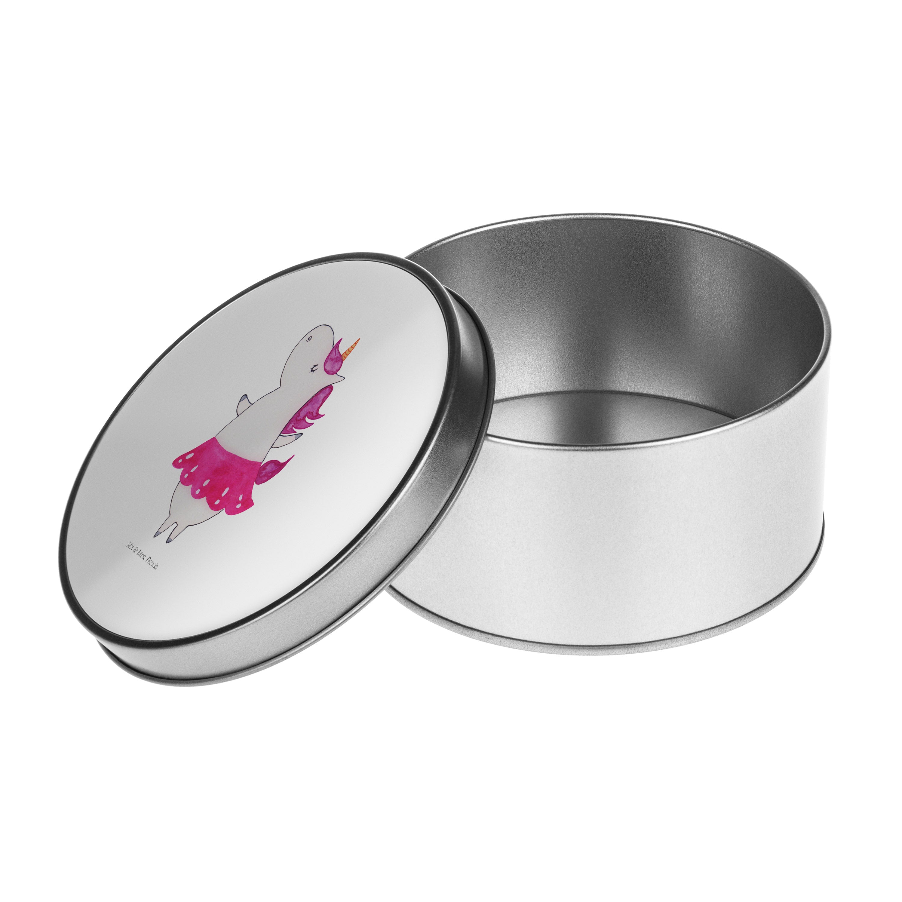 Blechdose rund Einhorn Ballerina - mit Spruch - Weiß