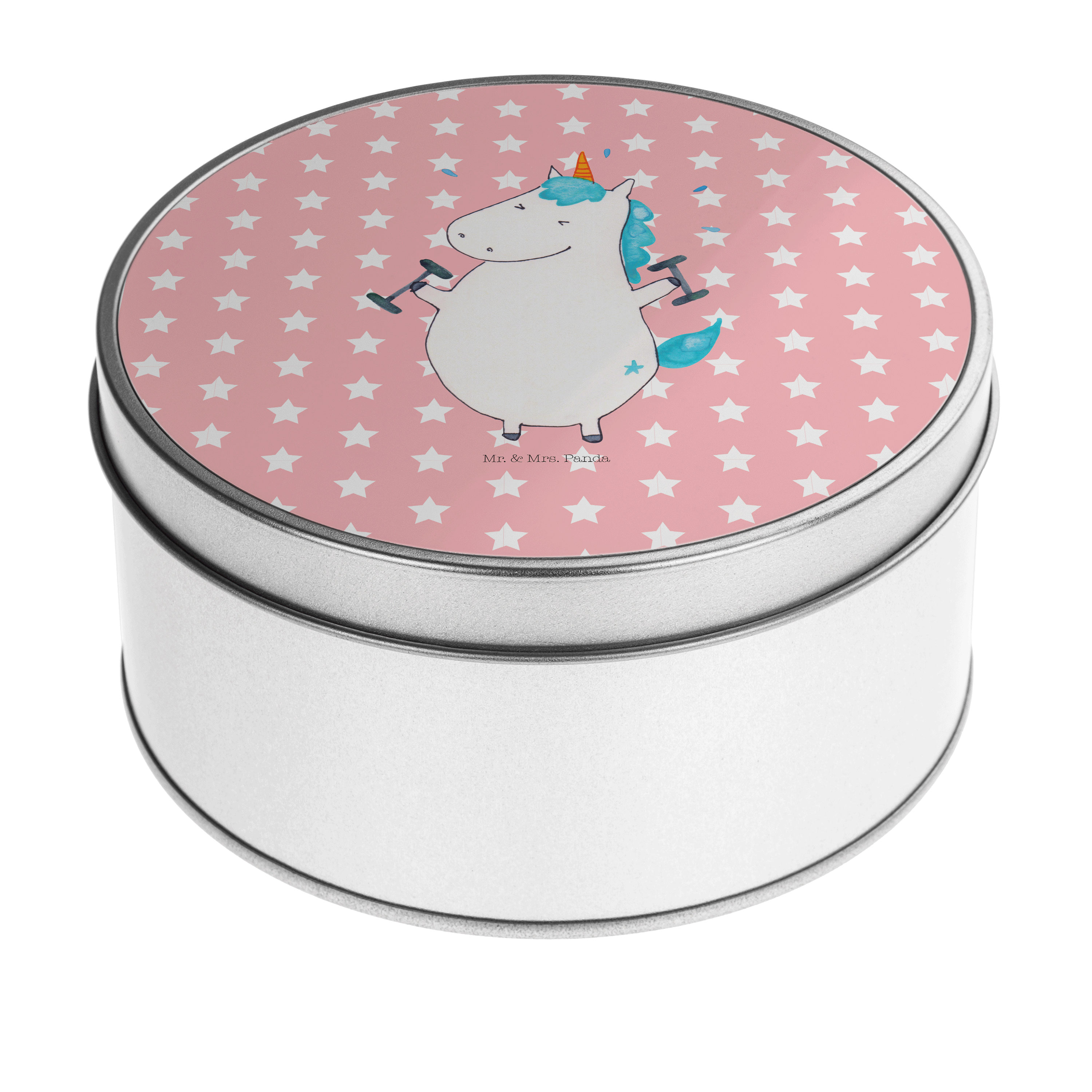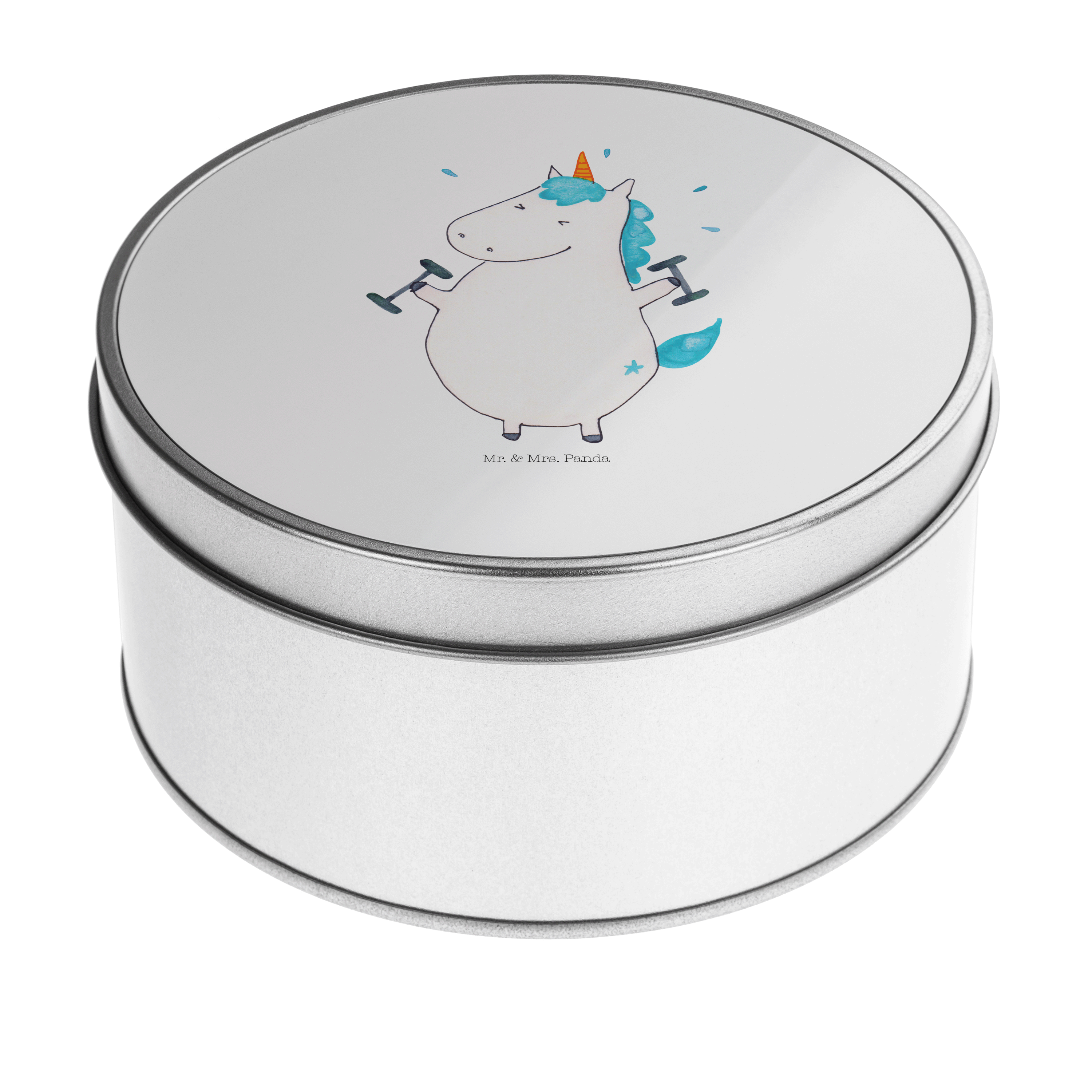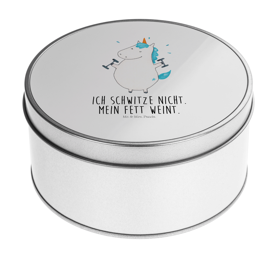 Blechdose rund Einhorn Fitness - mit Spruch - Weiß