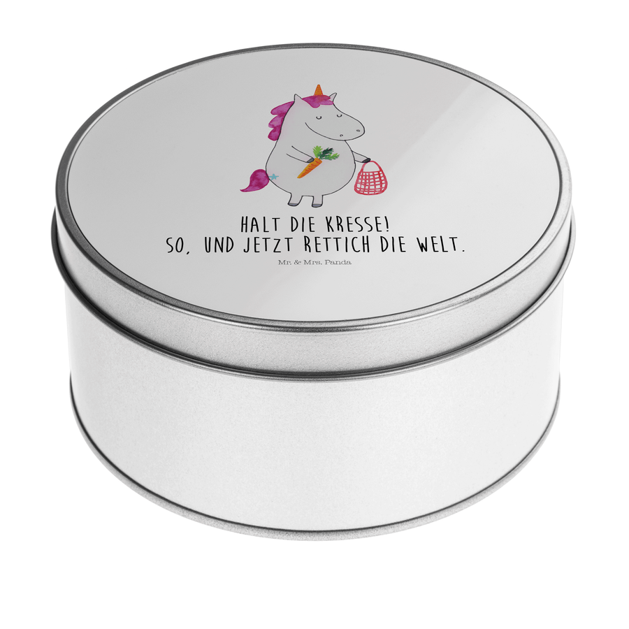 Blechdose rund Einhorn Gemüse - mit Spruch - Weiß