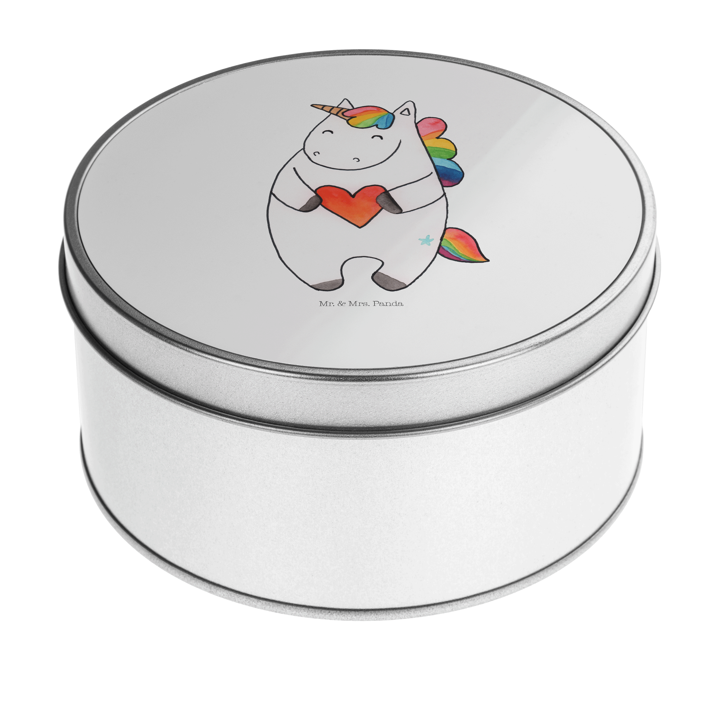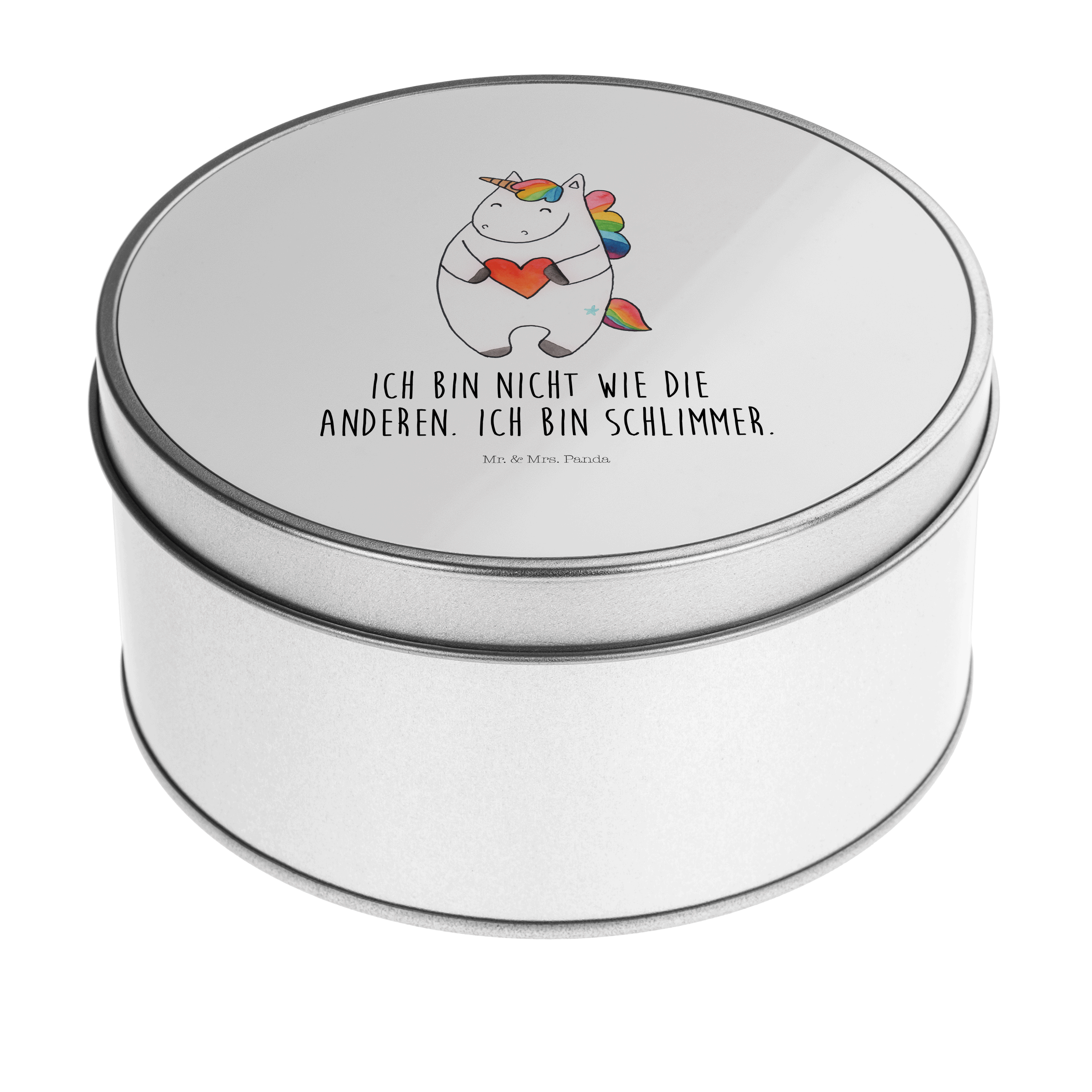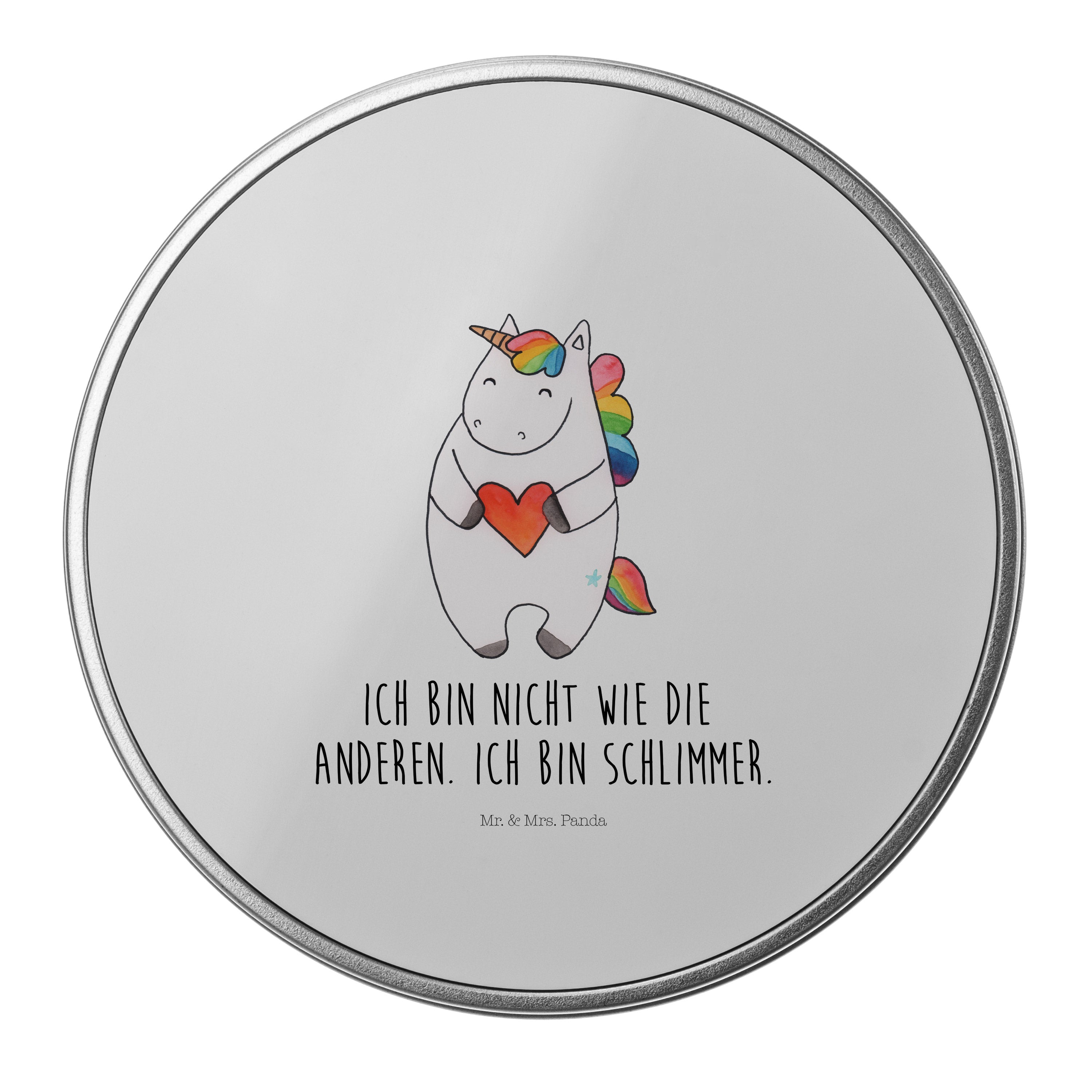 Blechdose rund Einhorn Herz - mit Spruch - Weiß