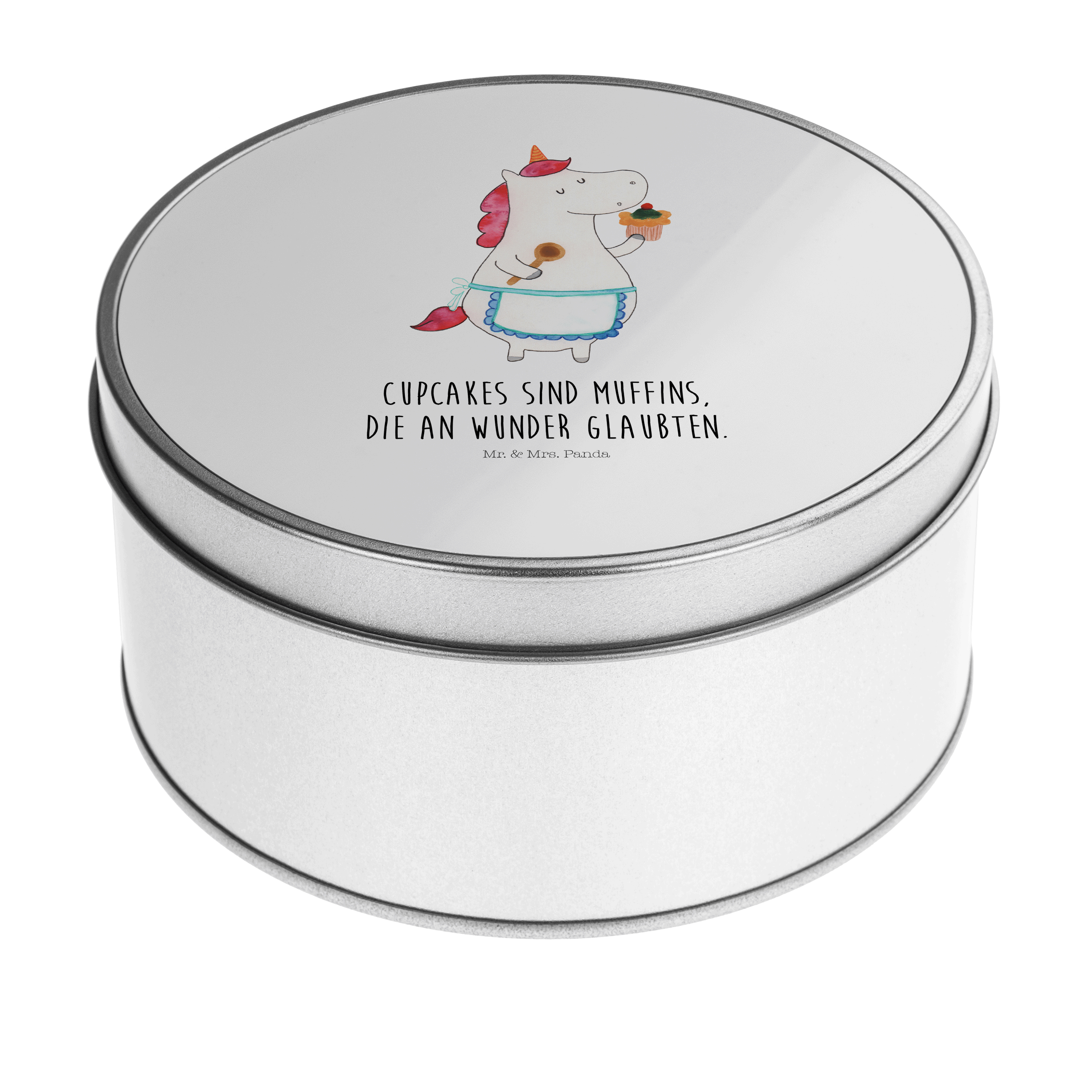 Blechdose rund Einhorn Küchenfee - mit Spruch - Weiß
