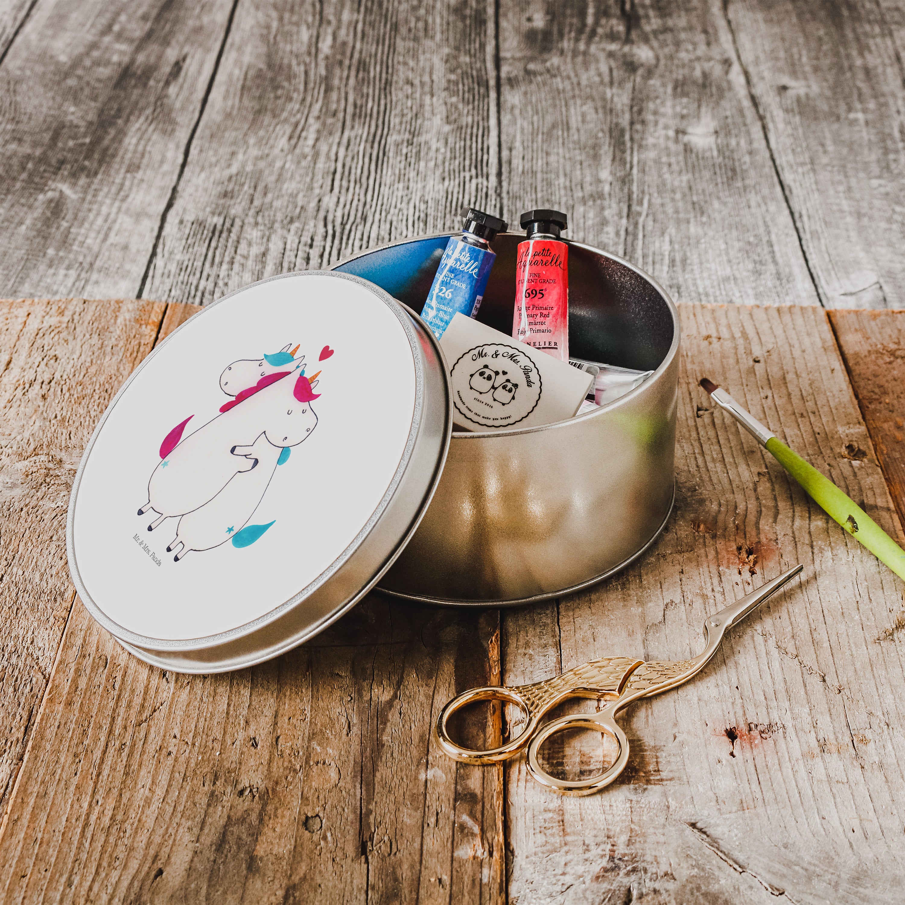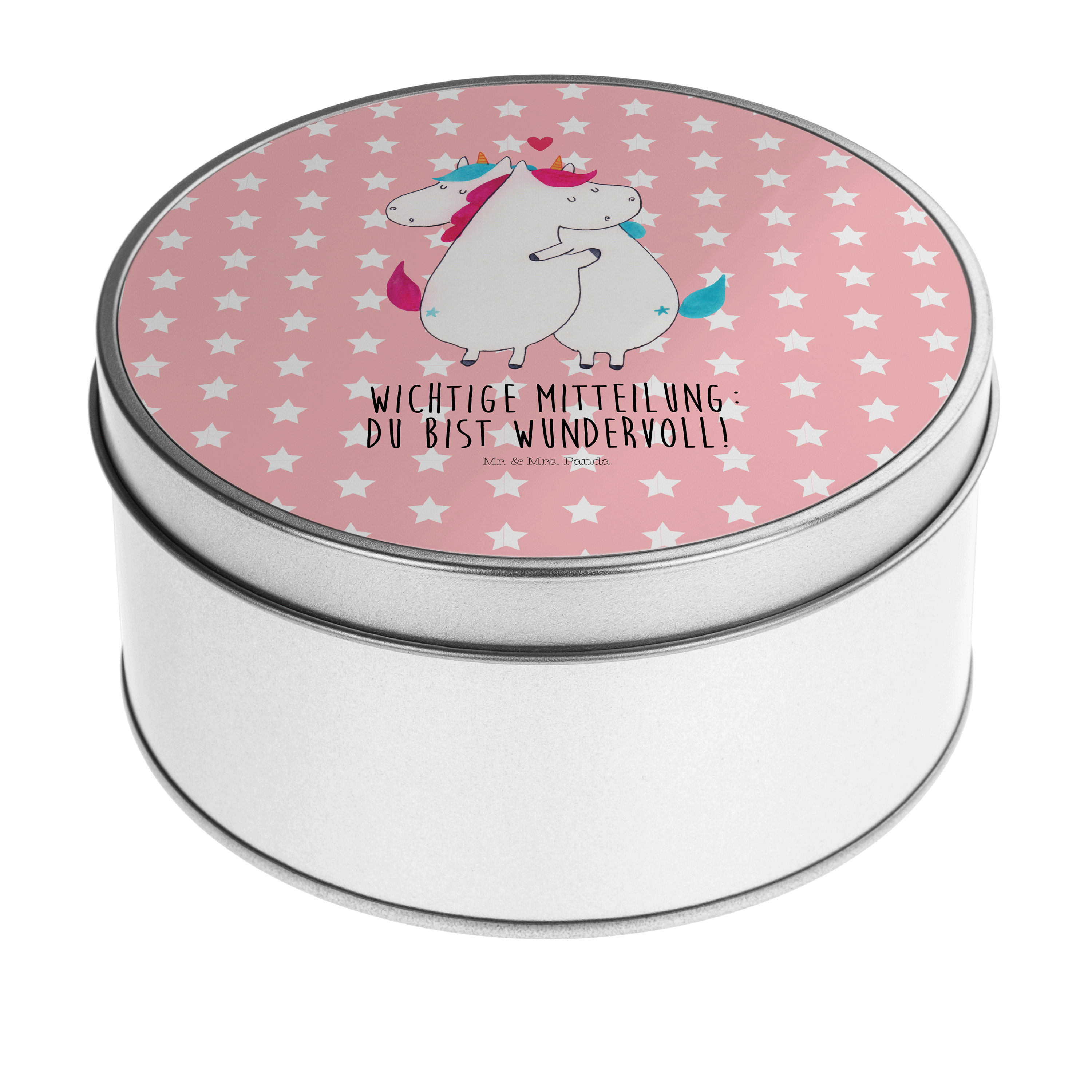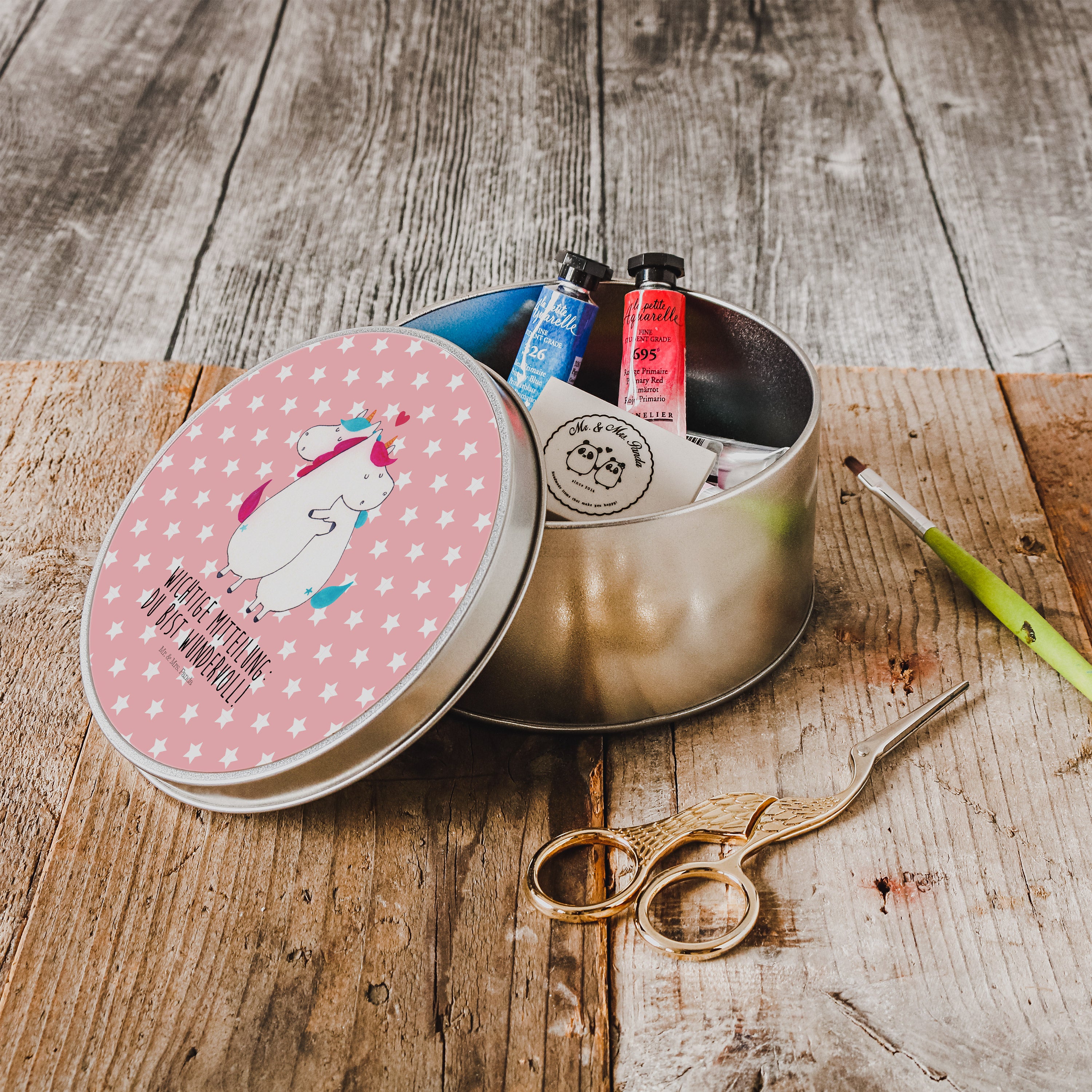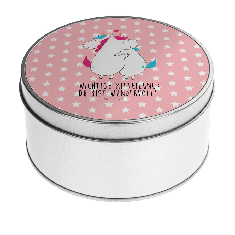Blechdose rund Einhorn Mitteilung - mit Spruch - Rot Pastell