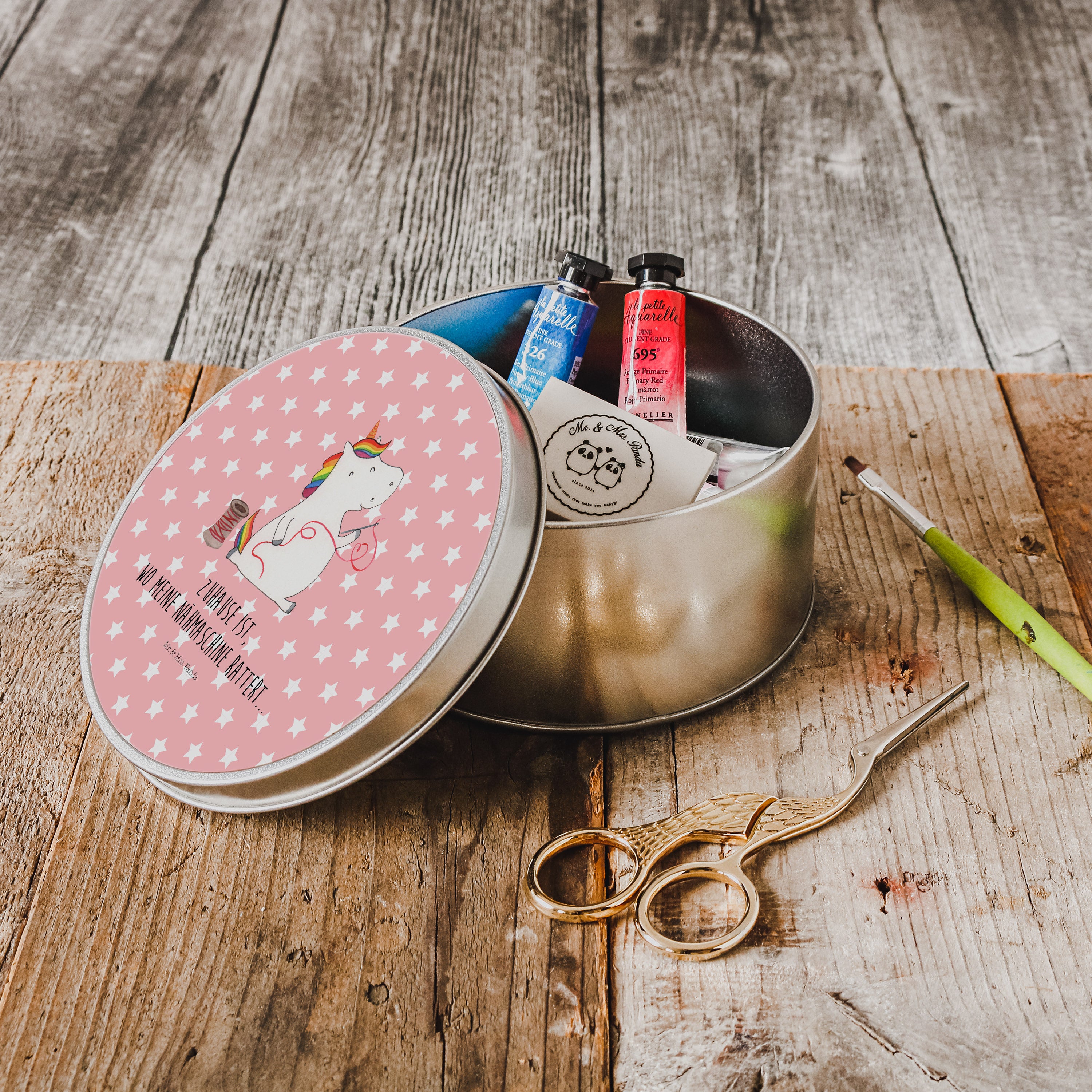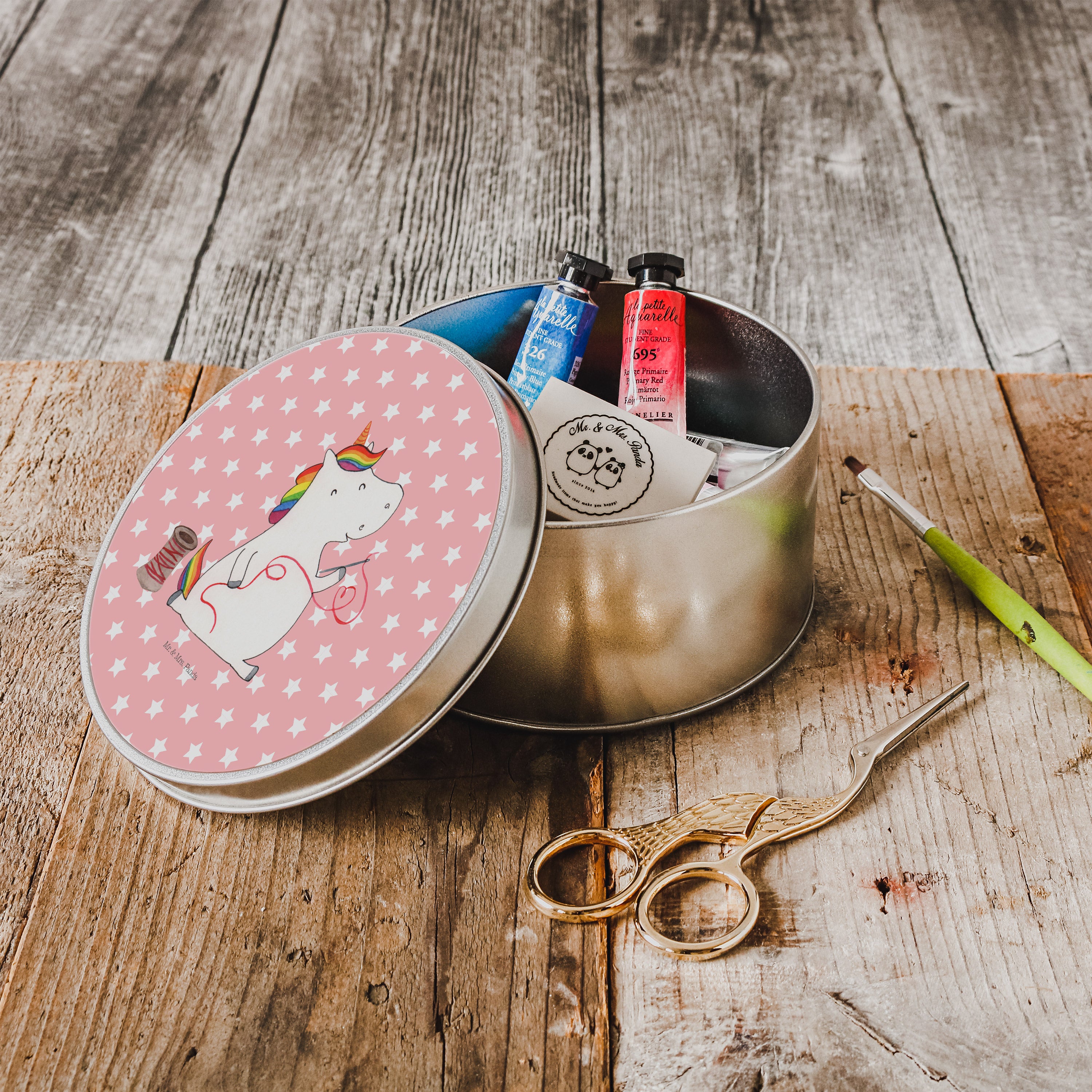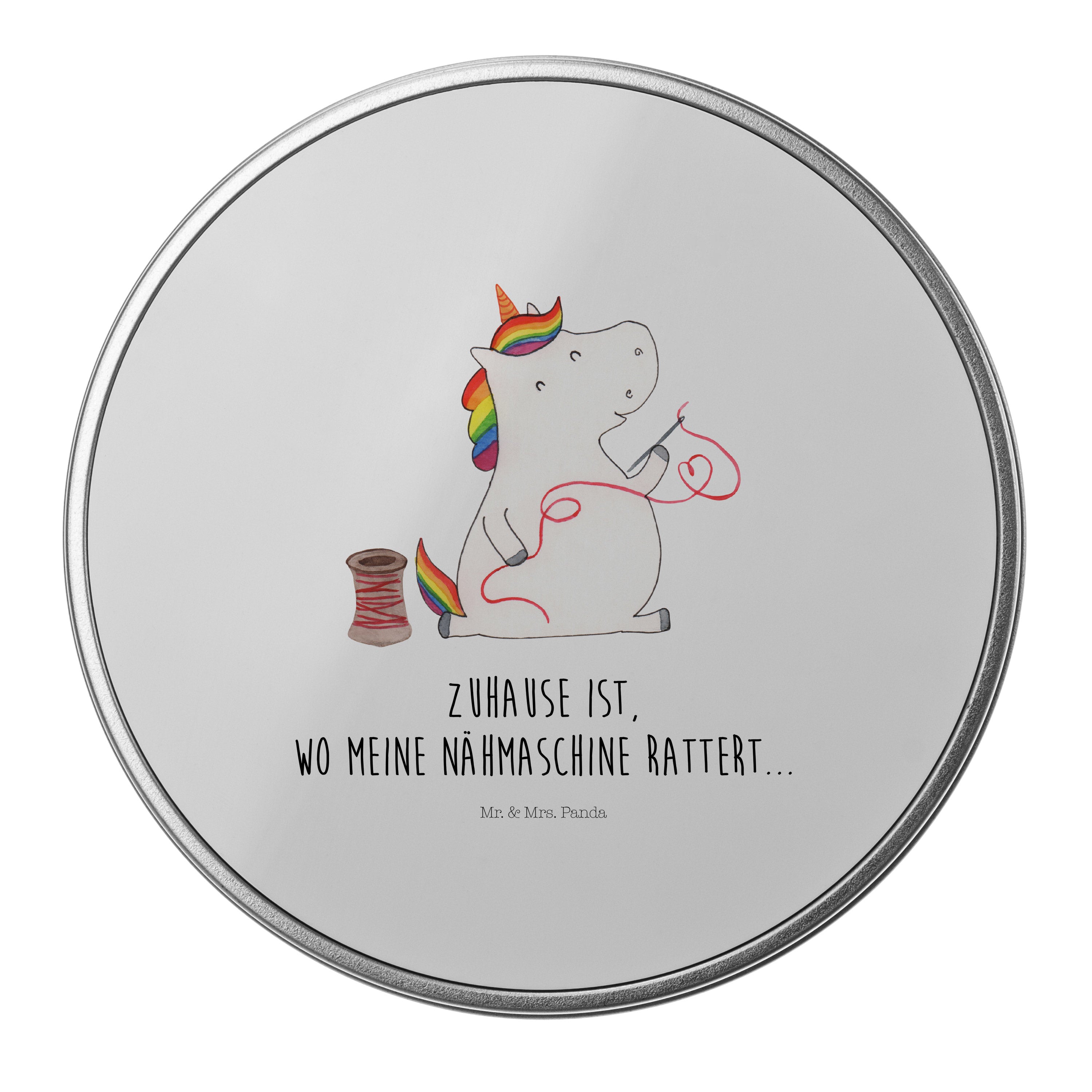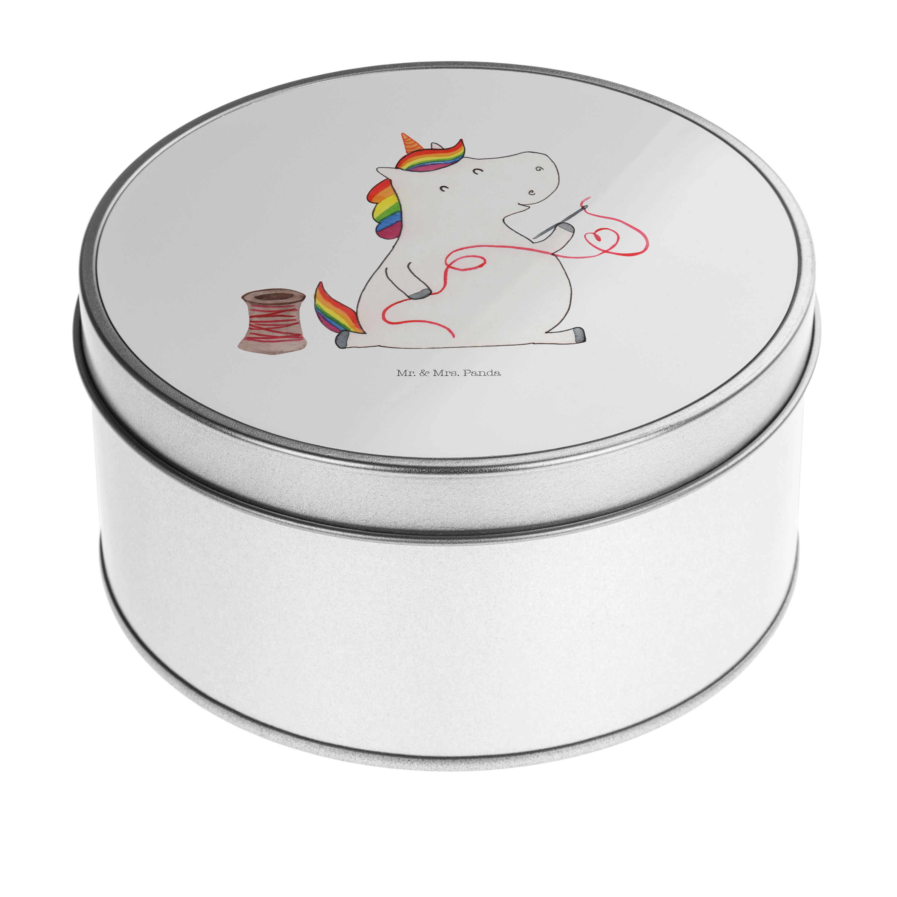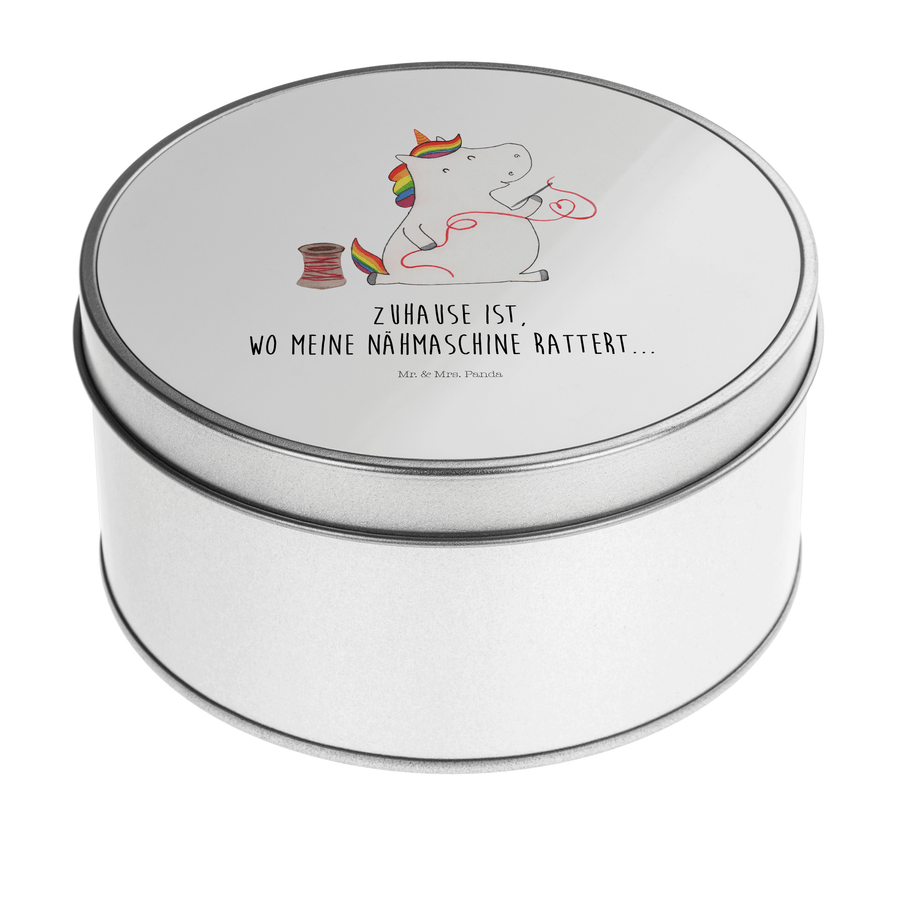 Blechdose rund Einhorn Näherin - mit Spruch - Weiß