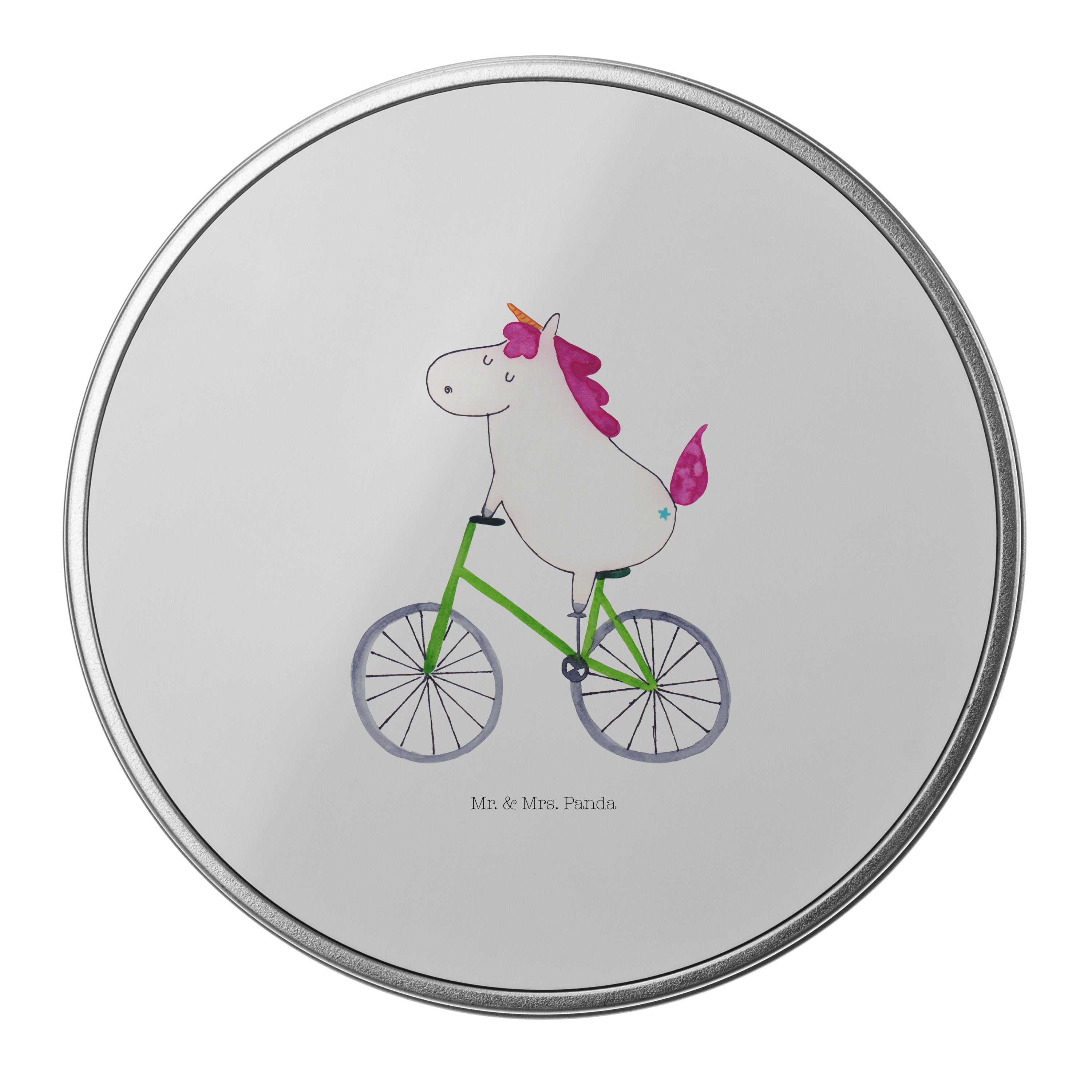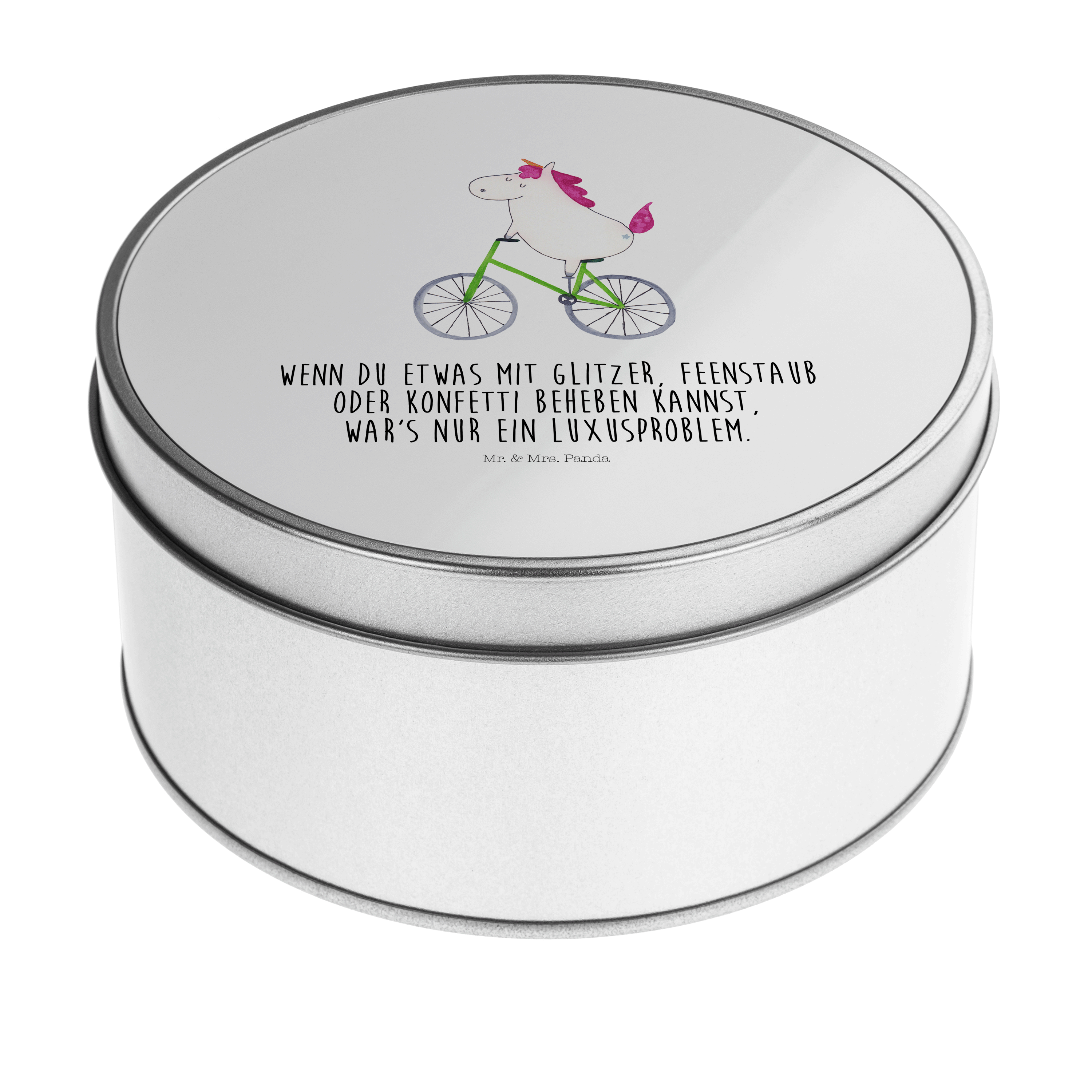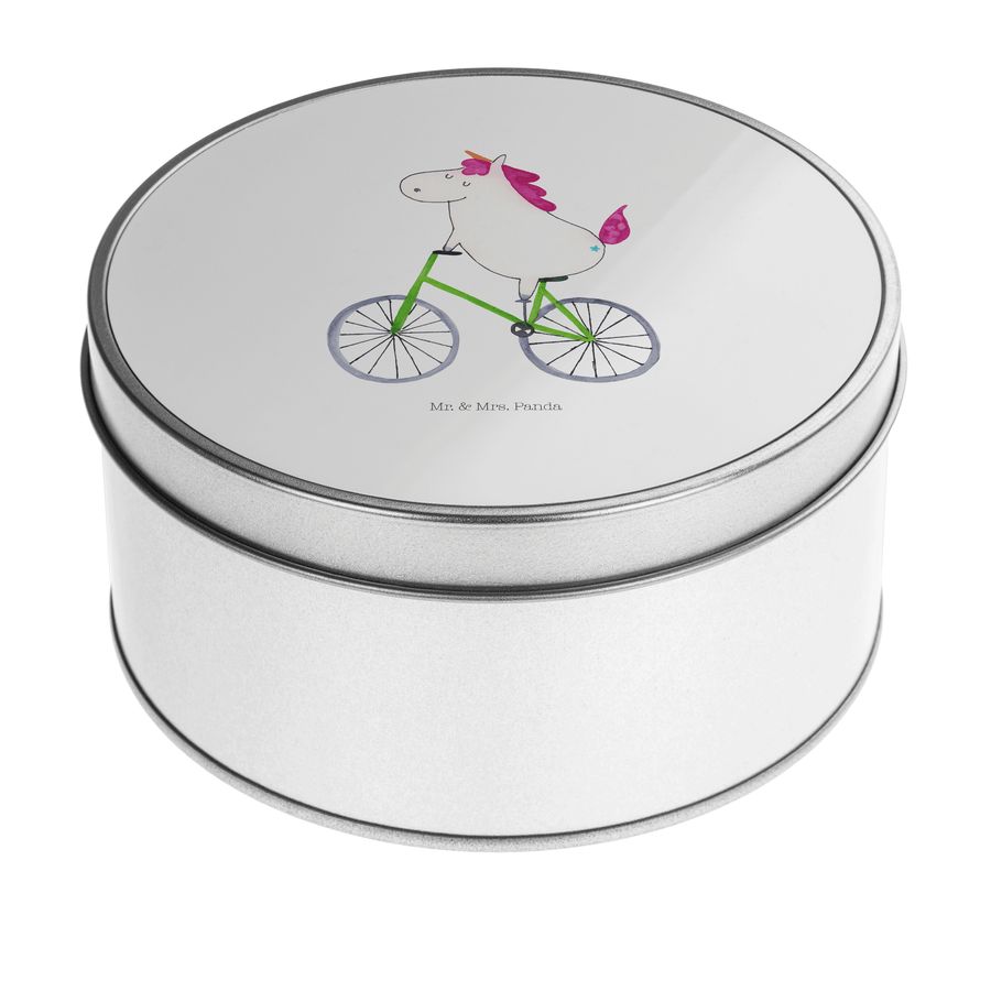 Blechdose rund Einhorn Radfahrer - ohne Spruch - Weiß