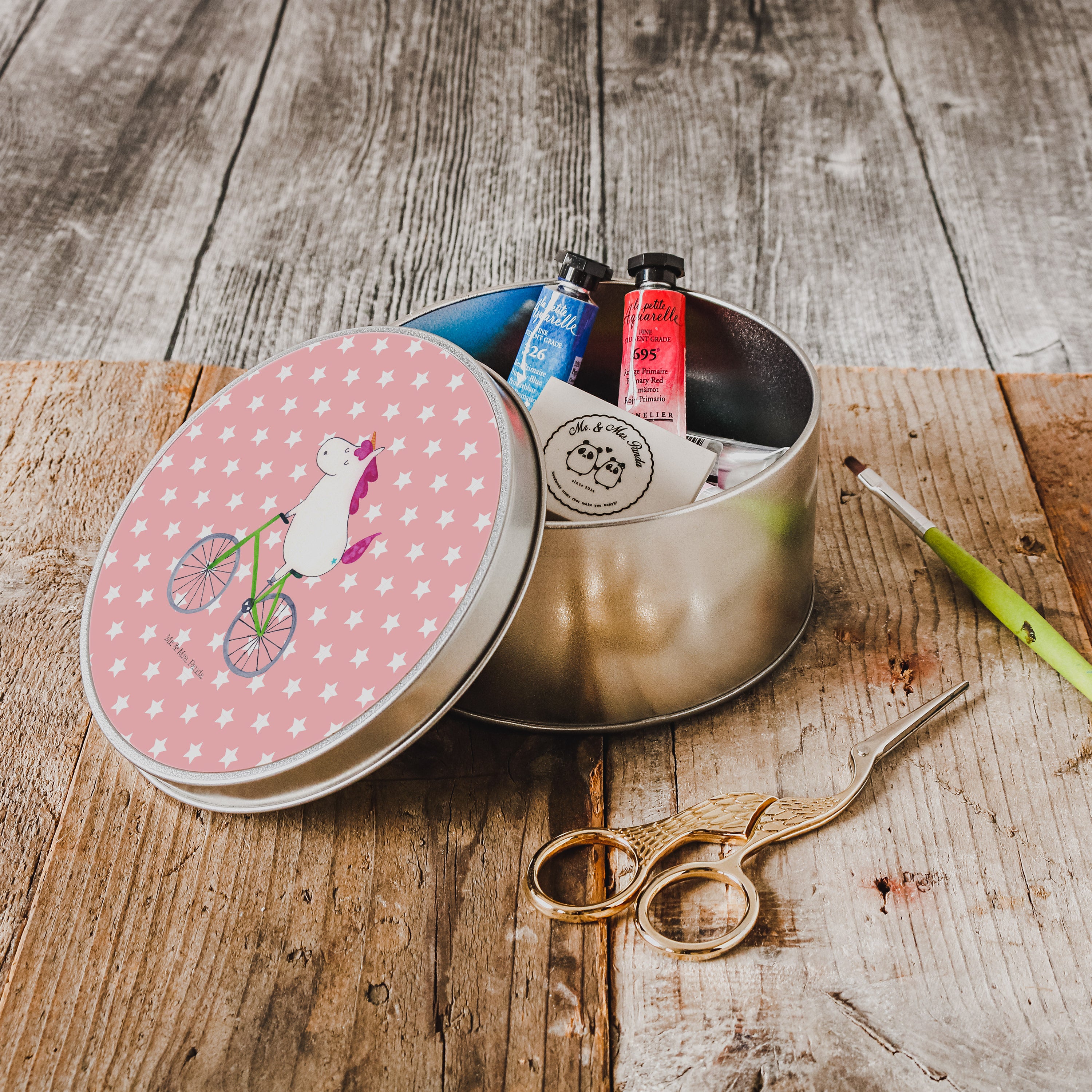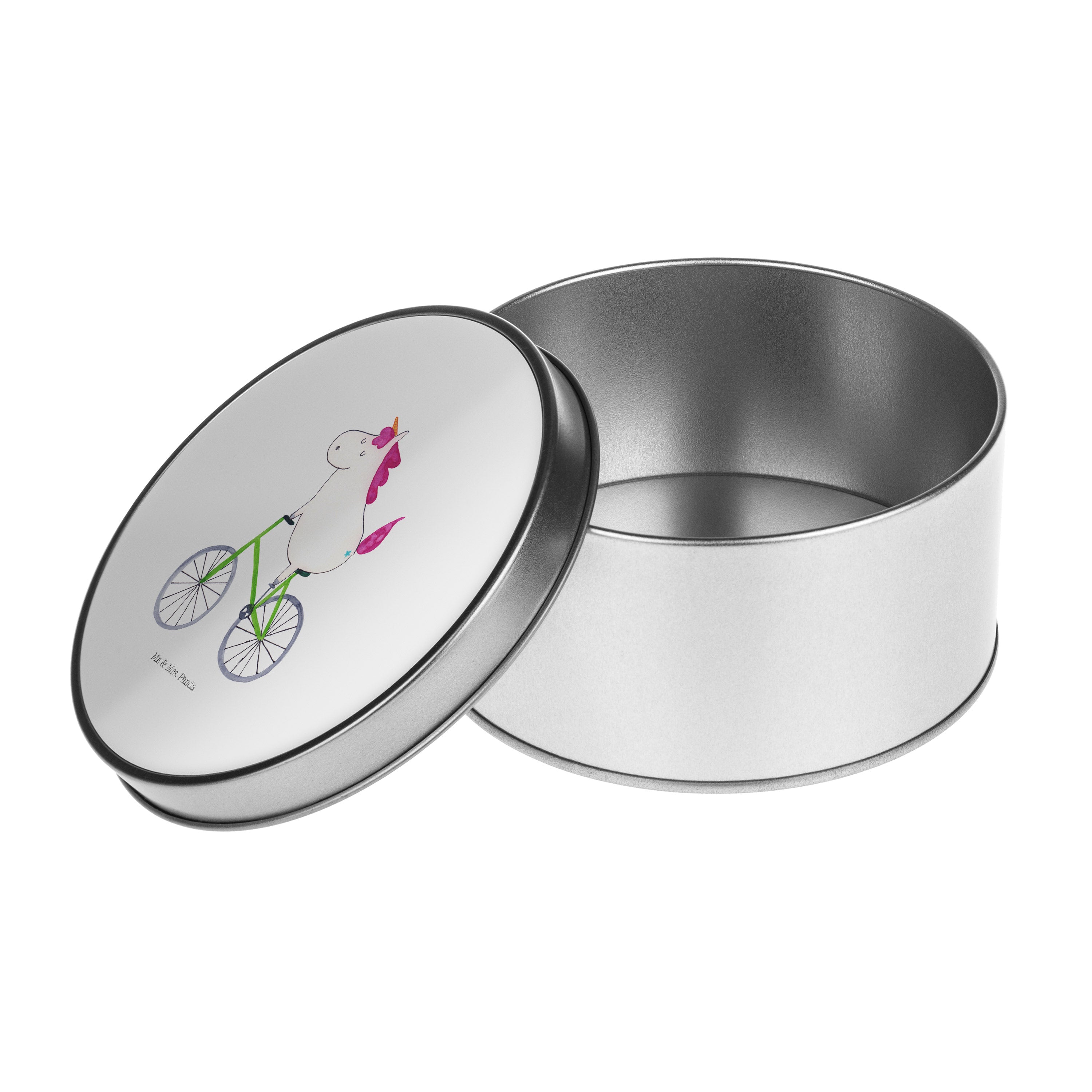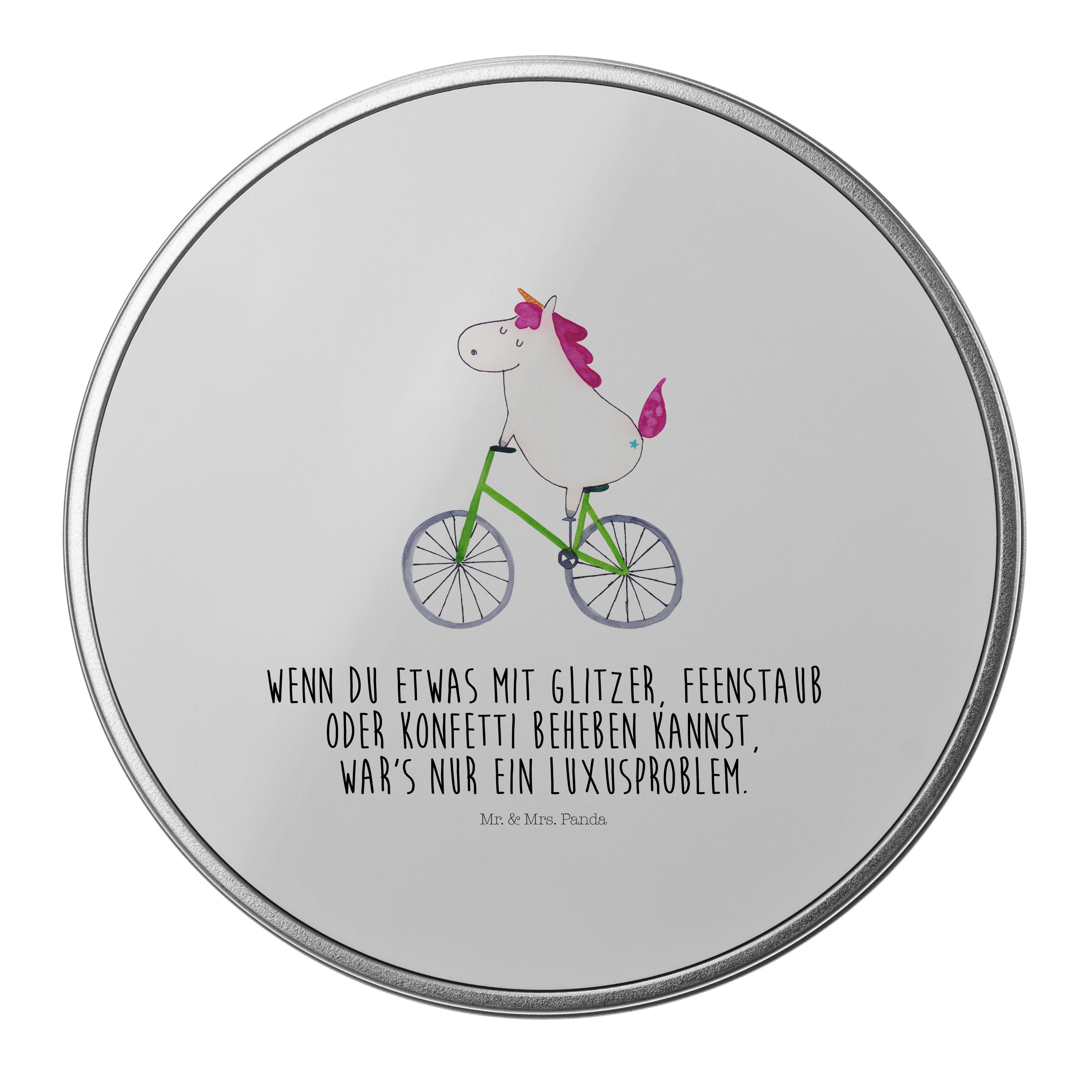 Blechdose rund Einhorn Radfahrer - ohne Spruch - Weiß