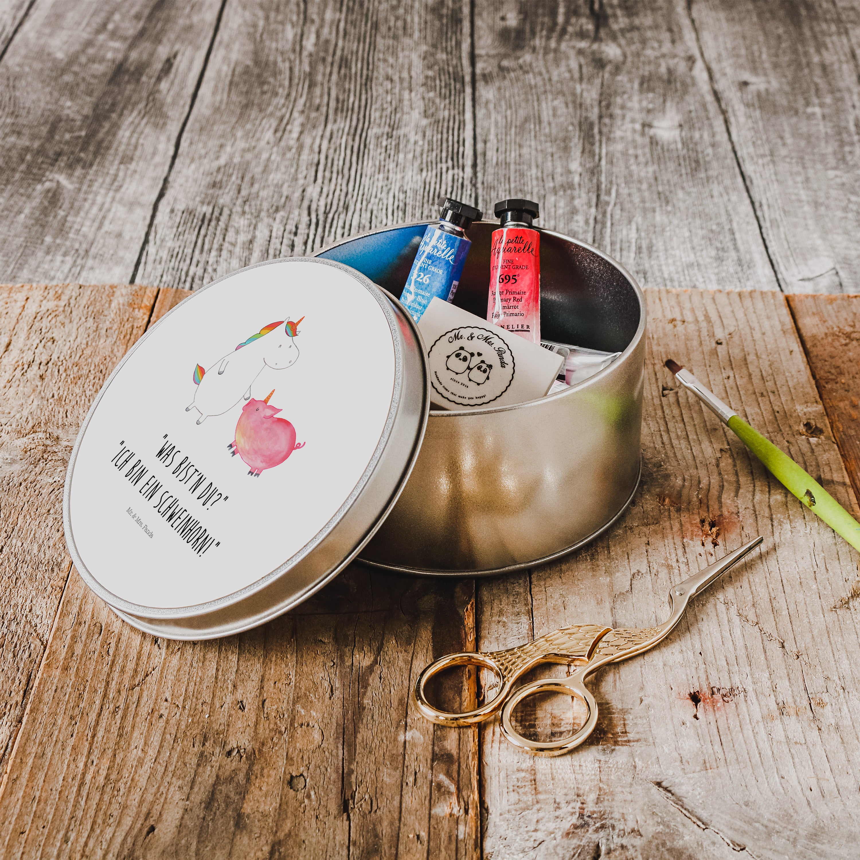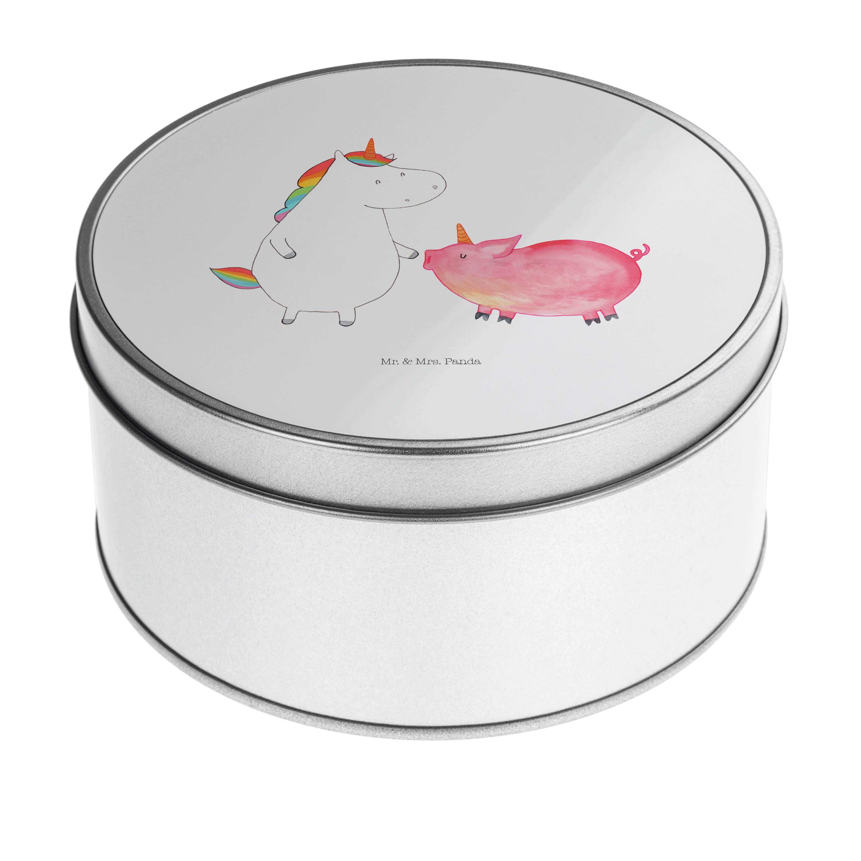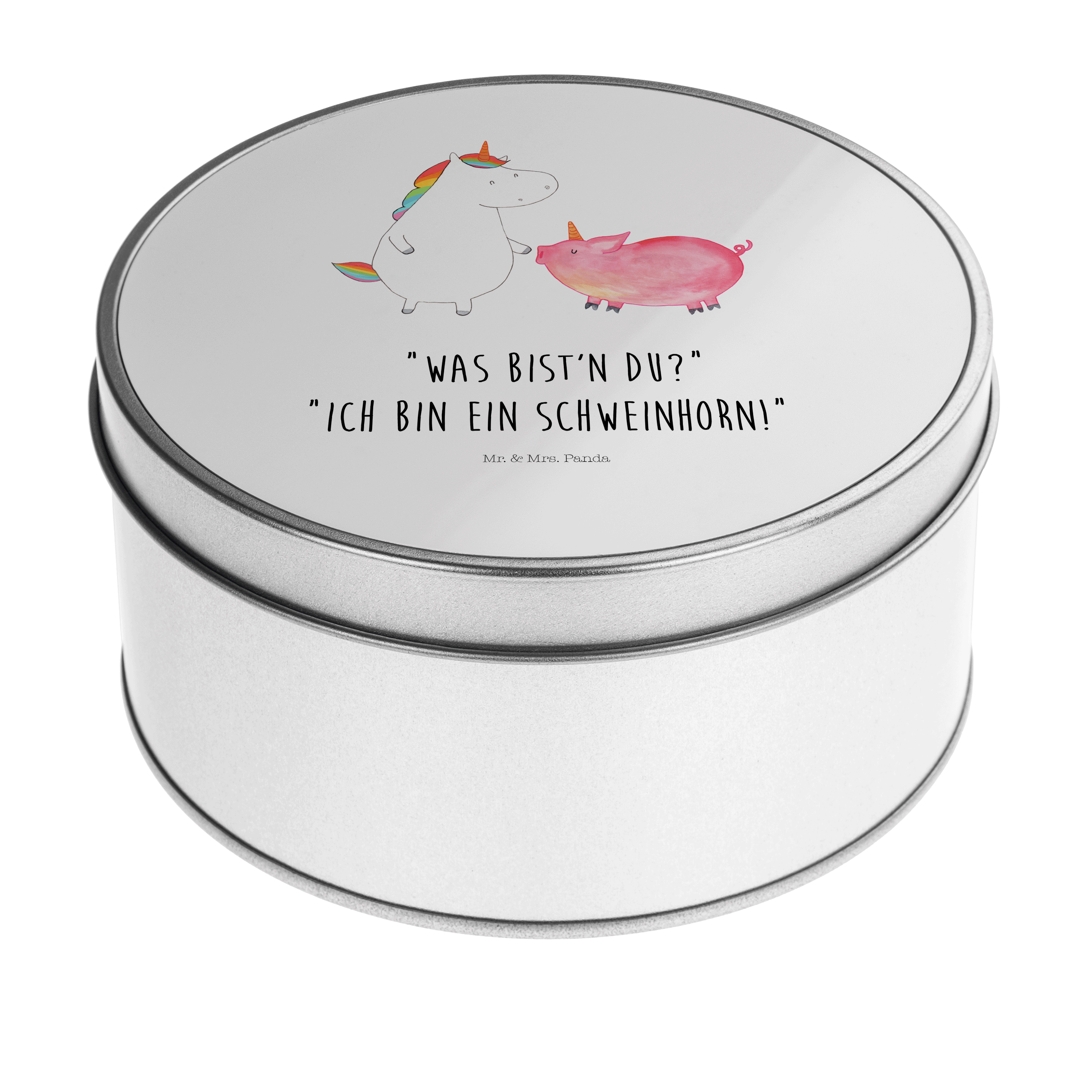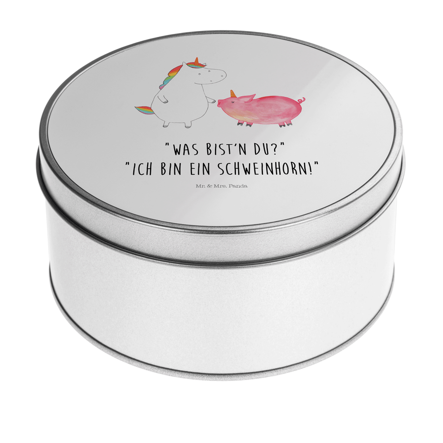 Blechdose rund Einhorn + Schweinhorn - mit Spruch - Weiß