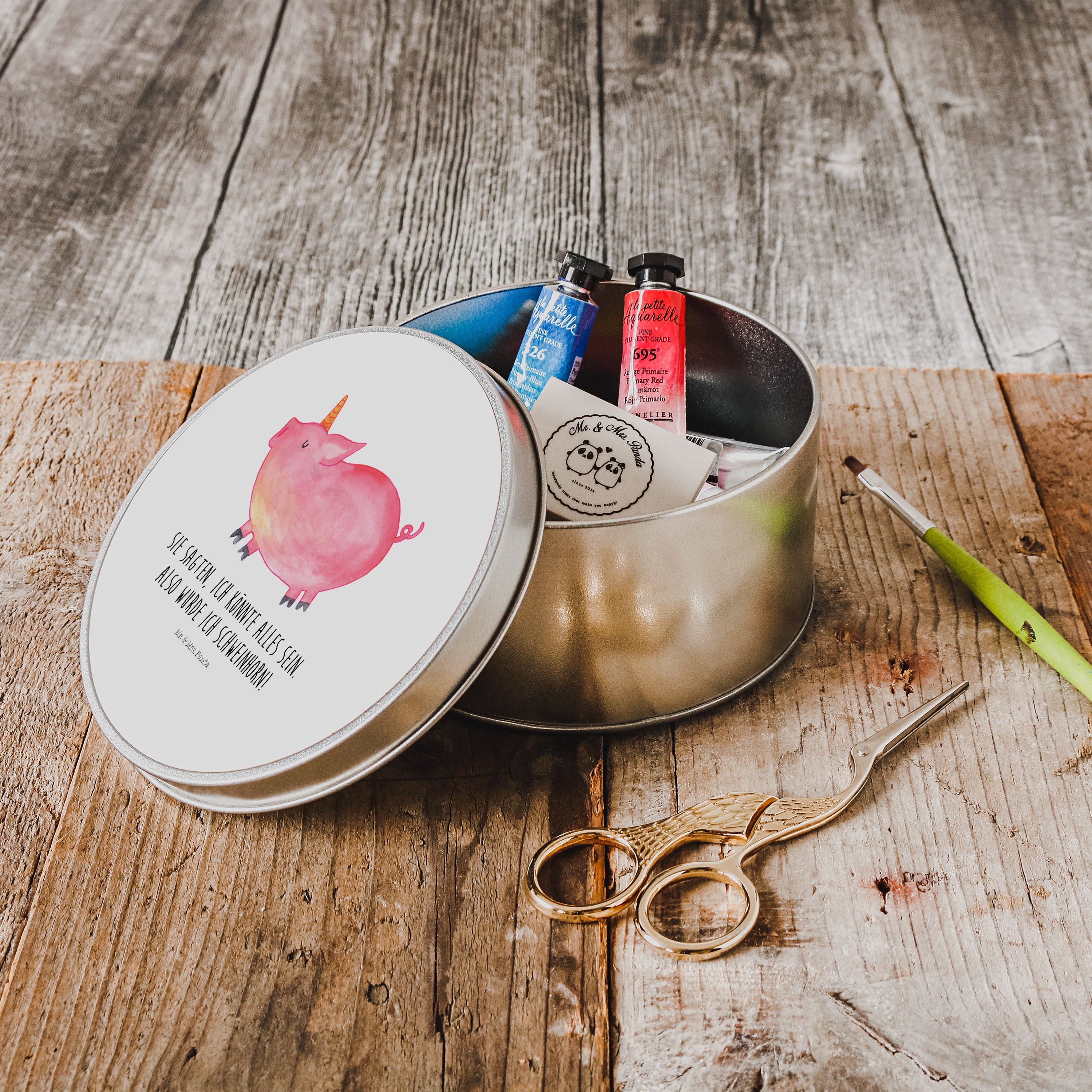 Blechdose rund Einhorn Schweinhorn - mit Spruch - Weiß
