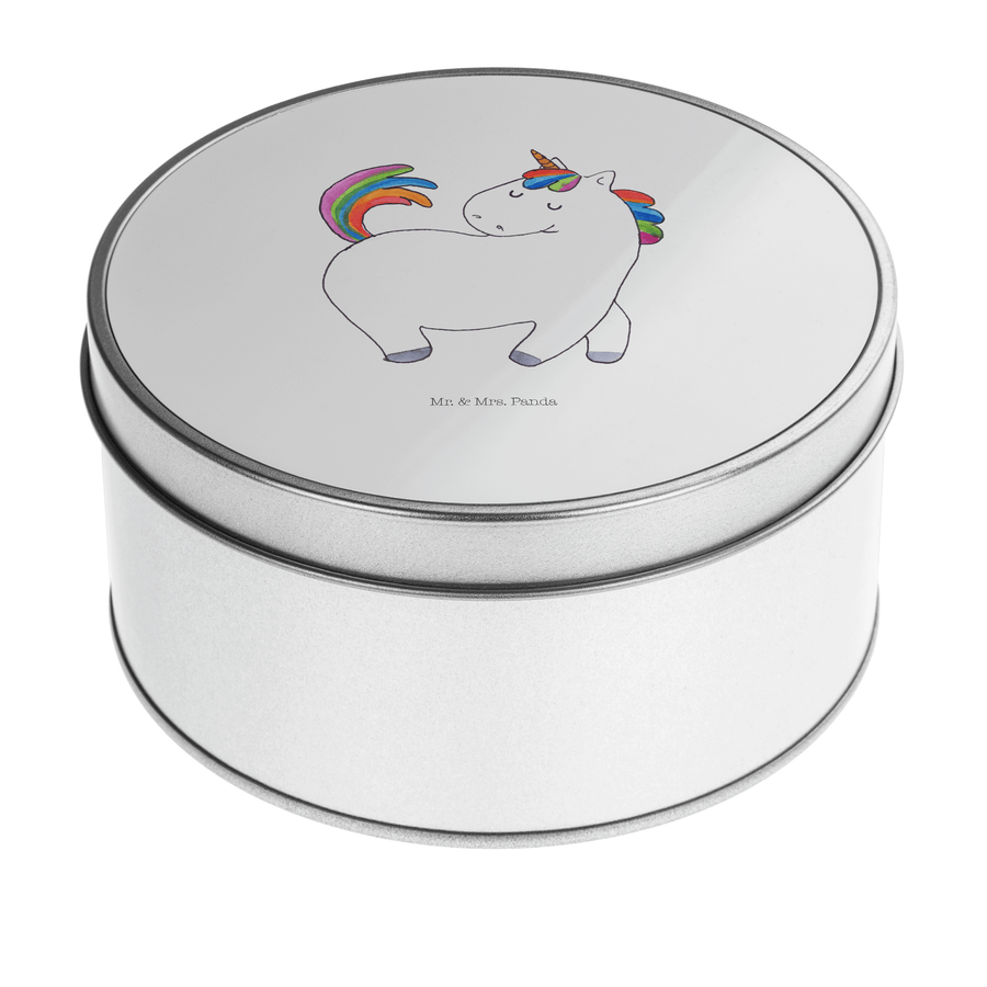 Blechdose rund Einhorn stolzierend - ohne Spruch - Weiß