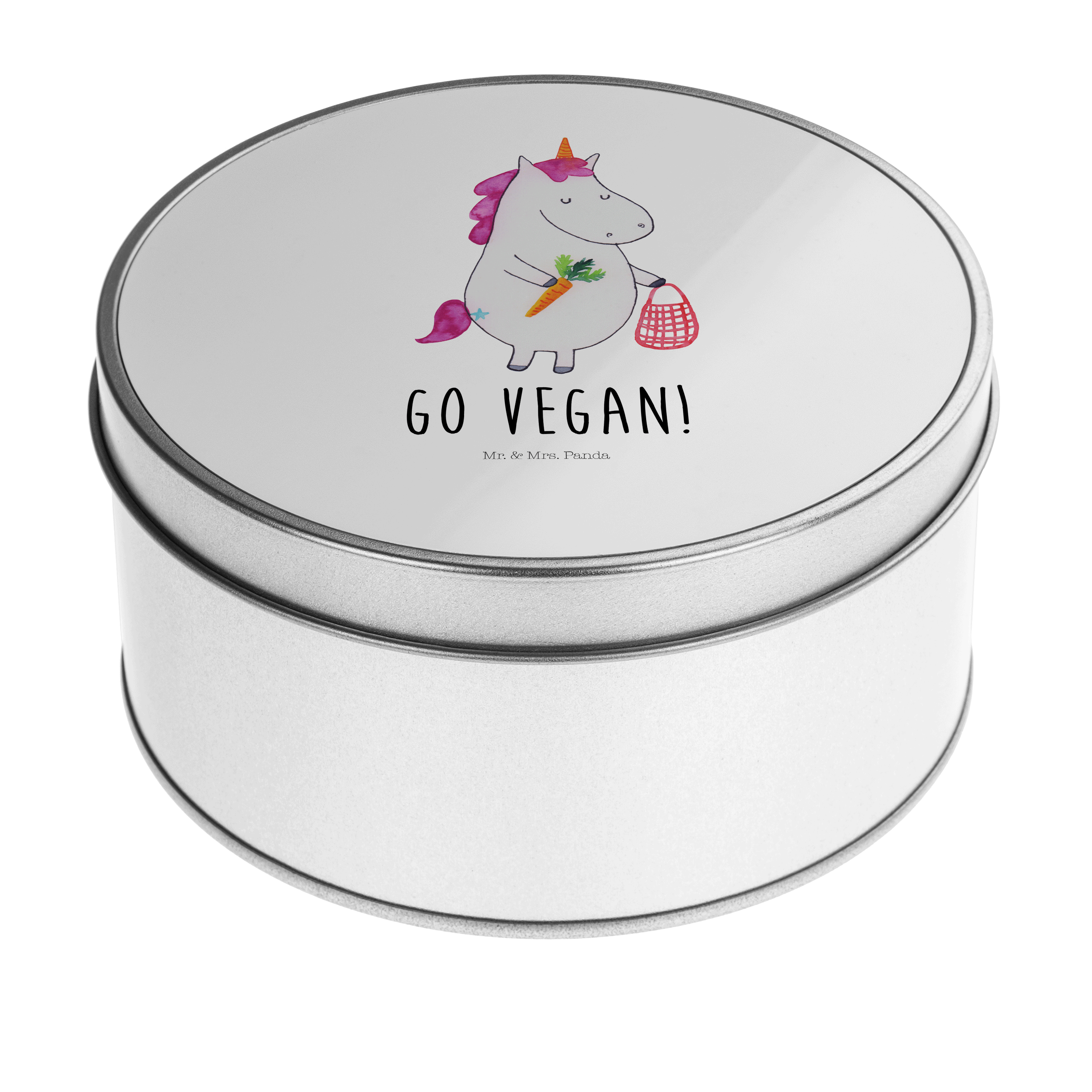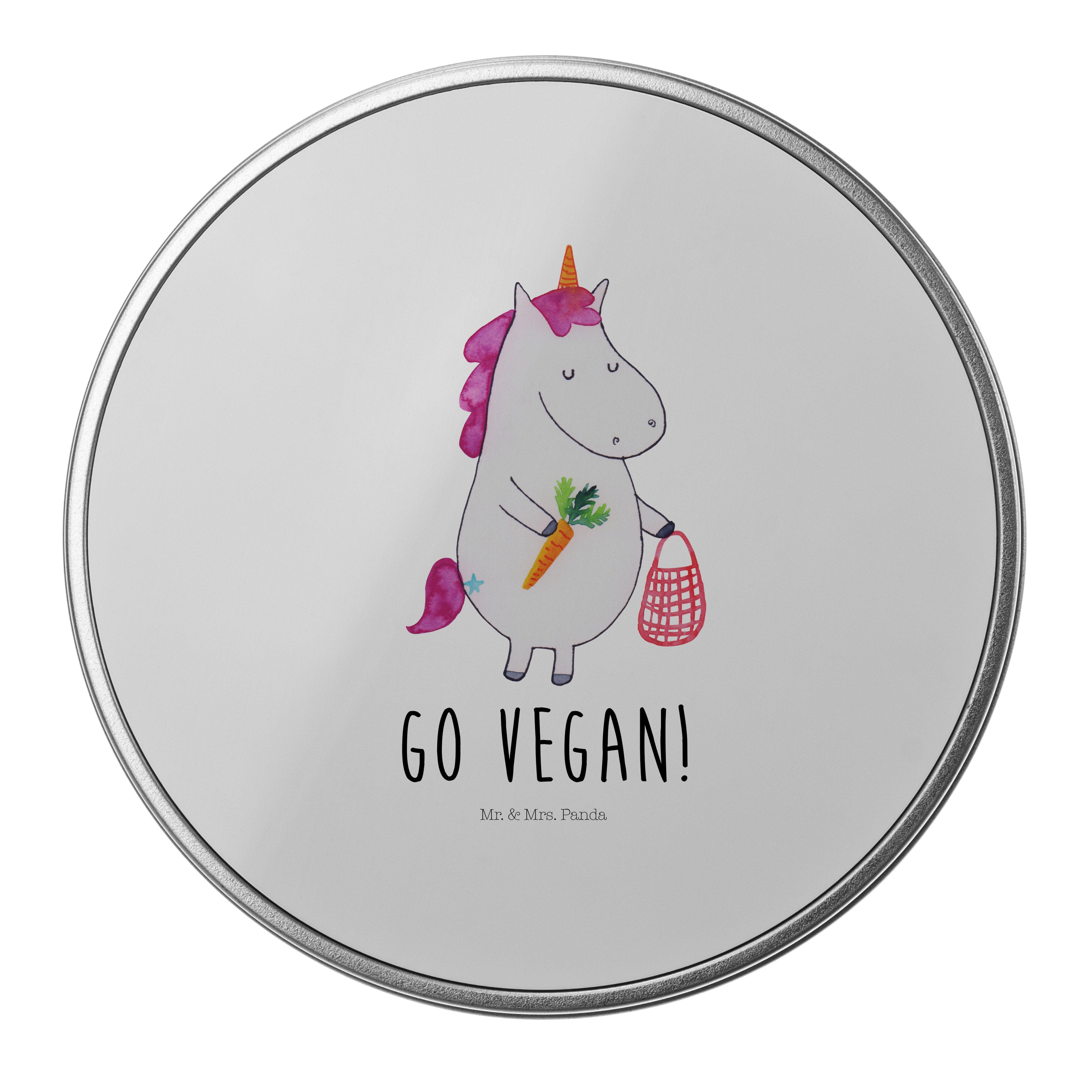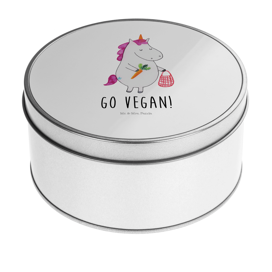 Blechdose rund Einhorn Vegan - mit Spruch - Weiß