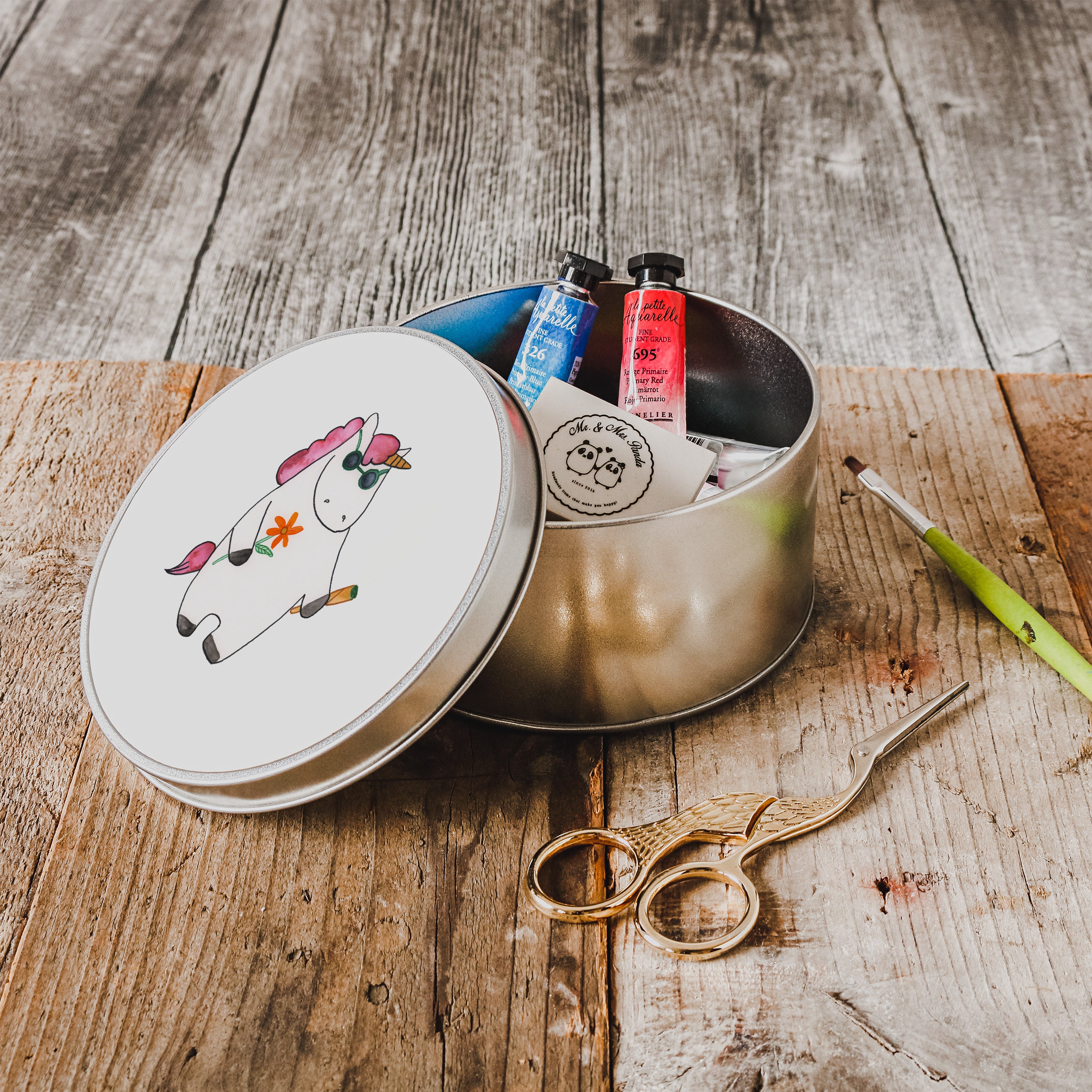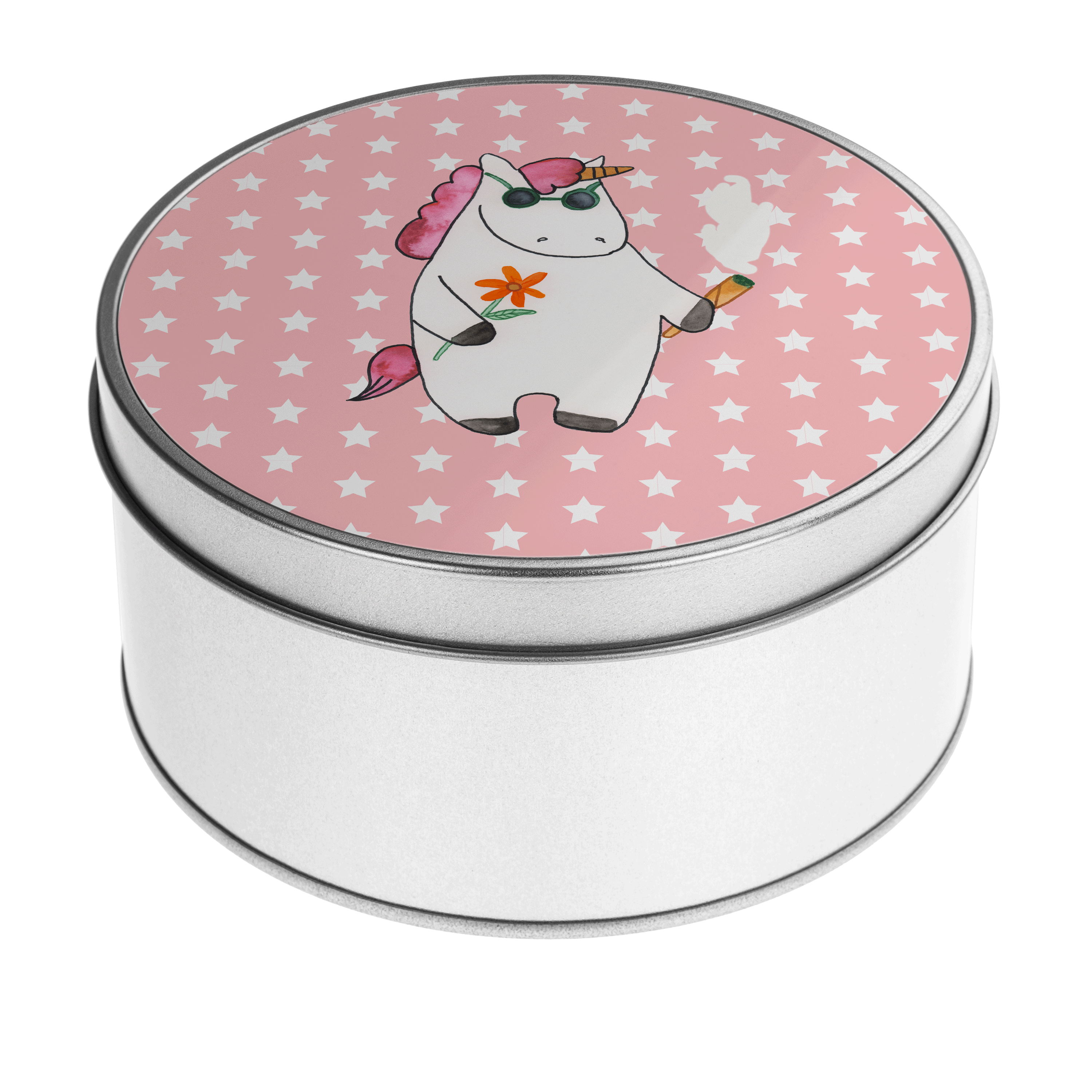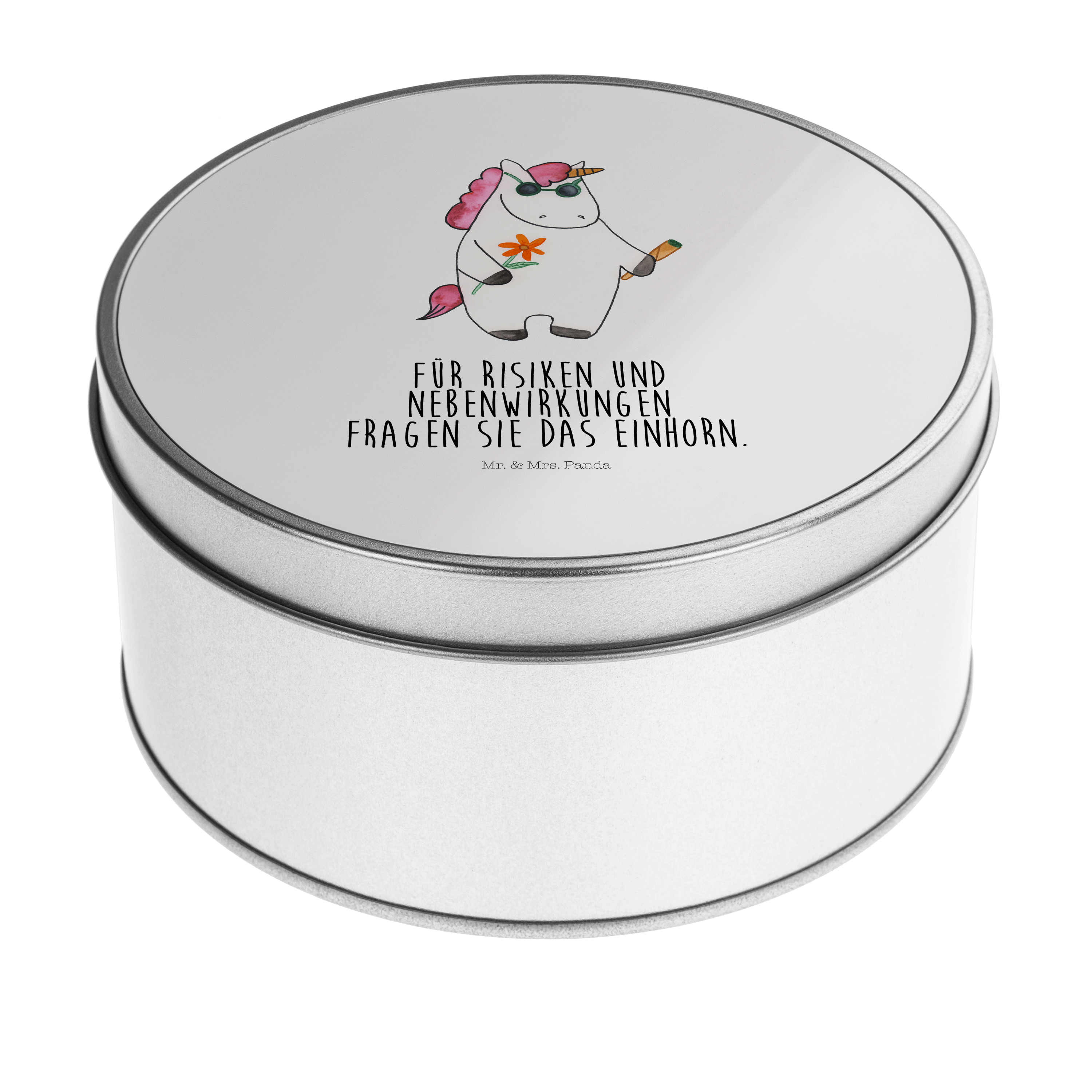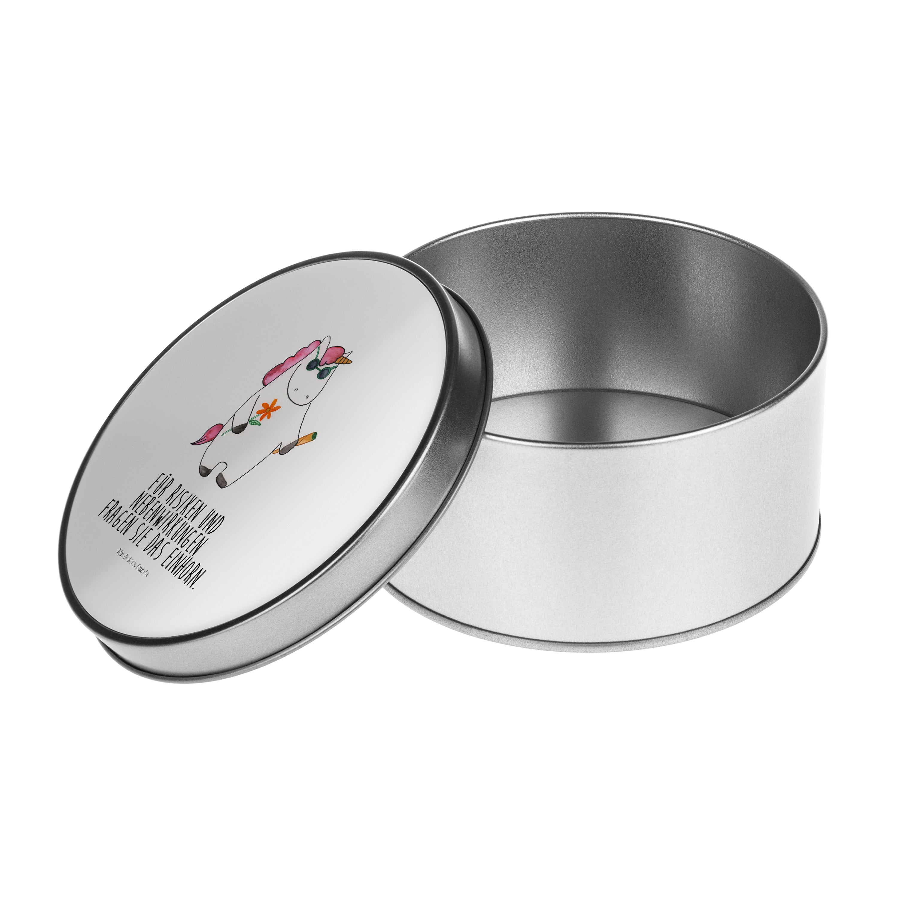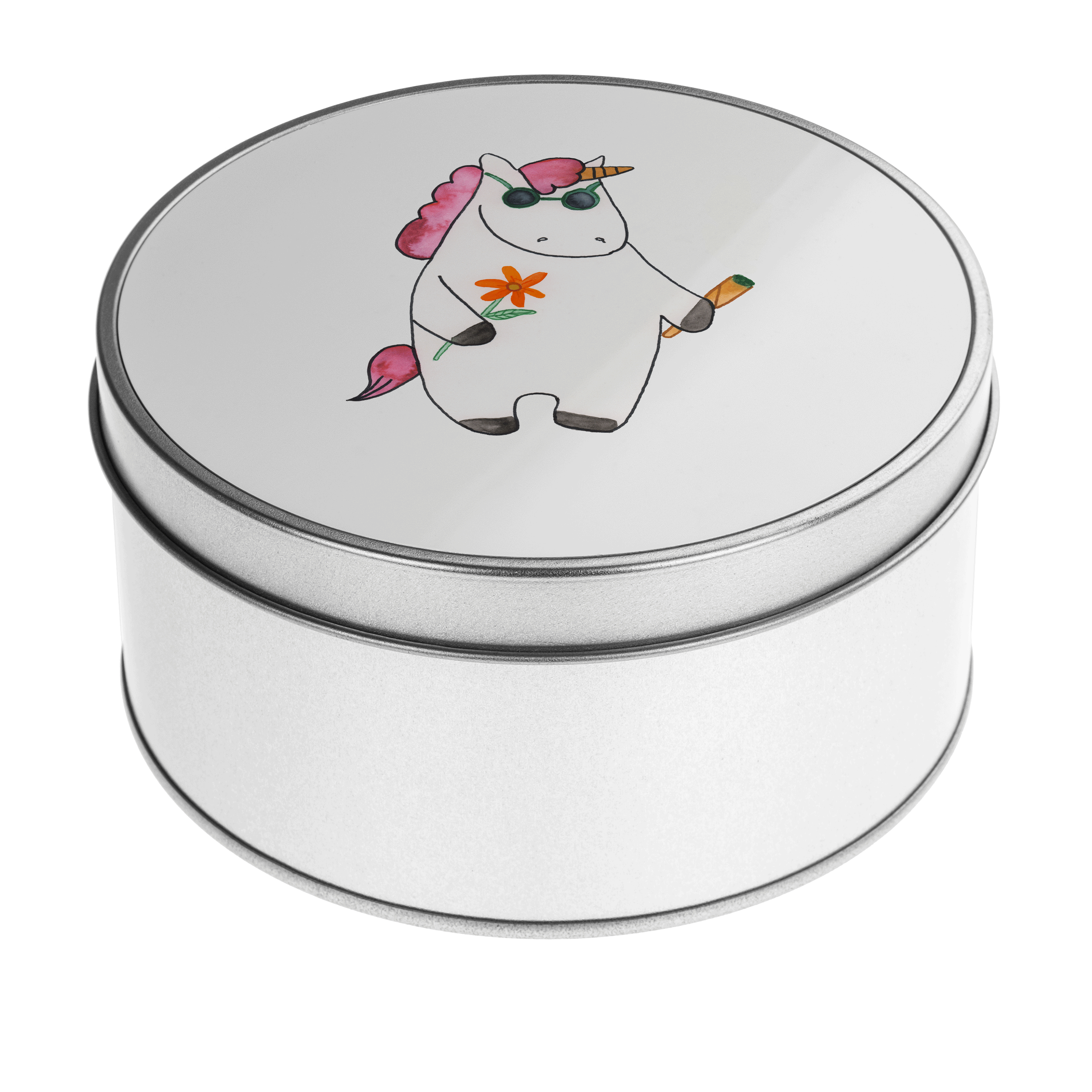 Blechdose rund Einhorn Woodstock - mit Spruch - Weiß