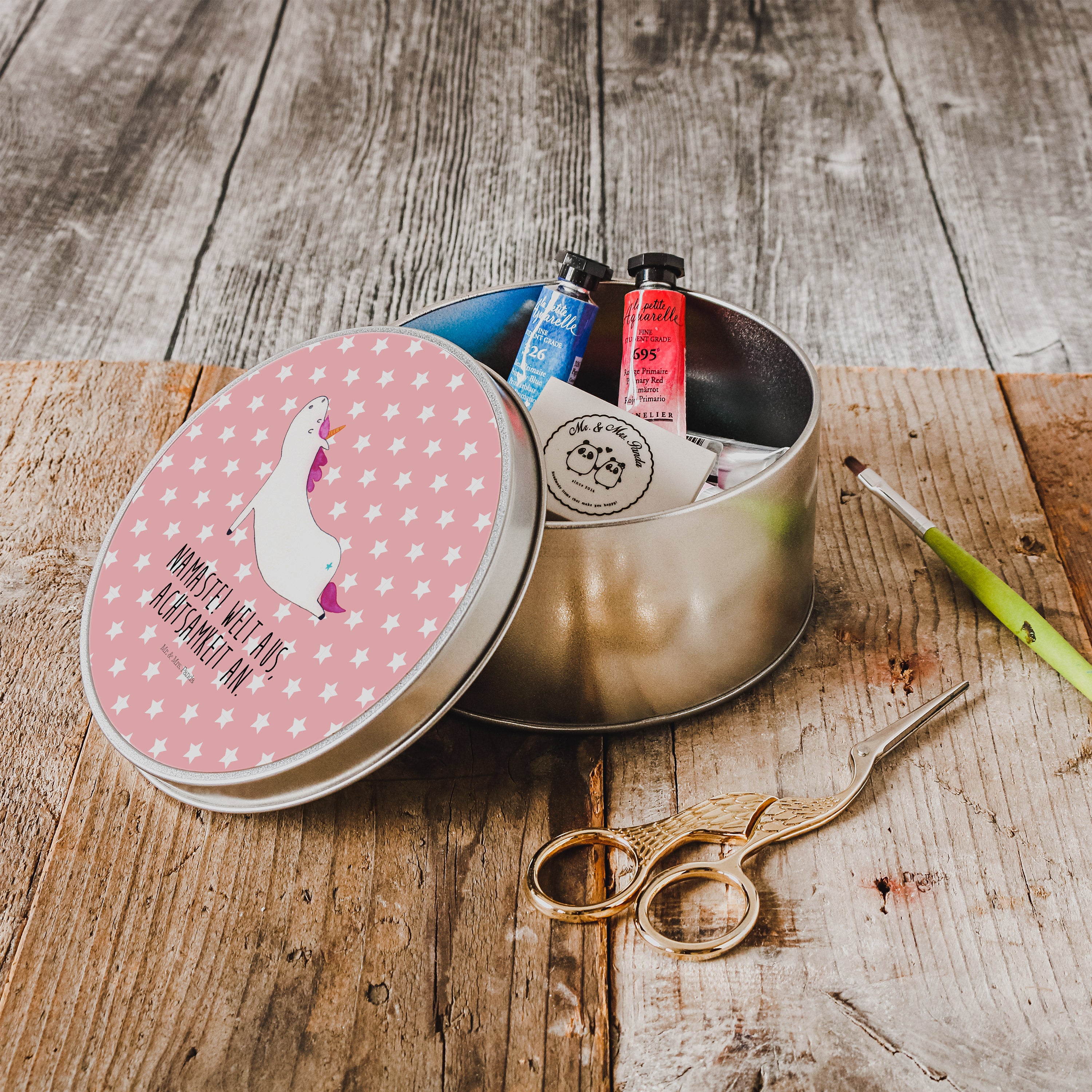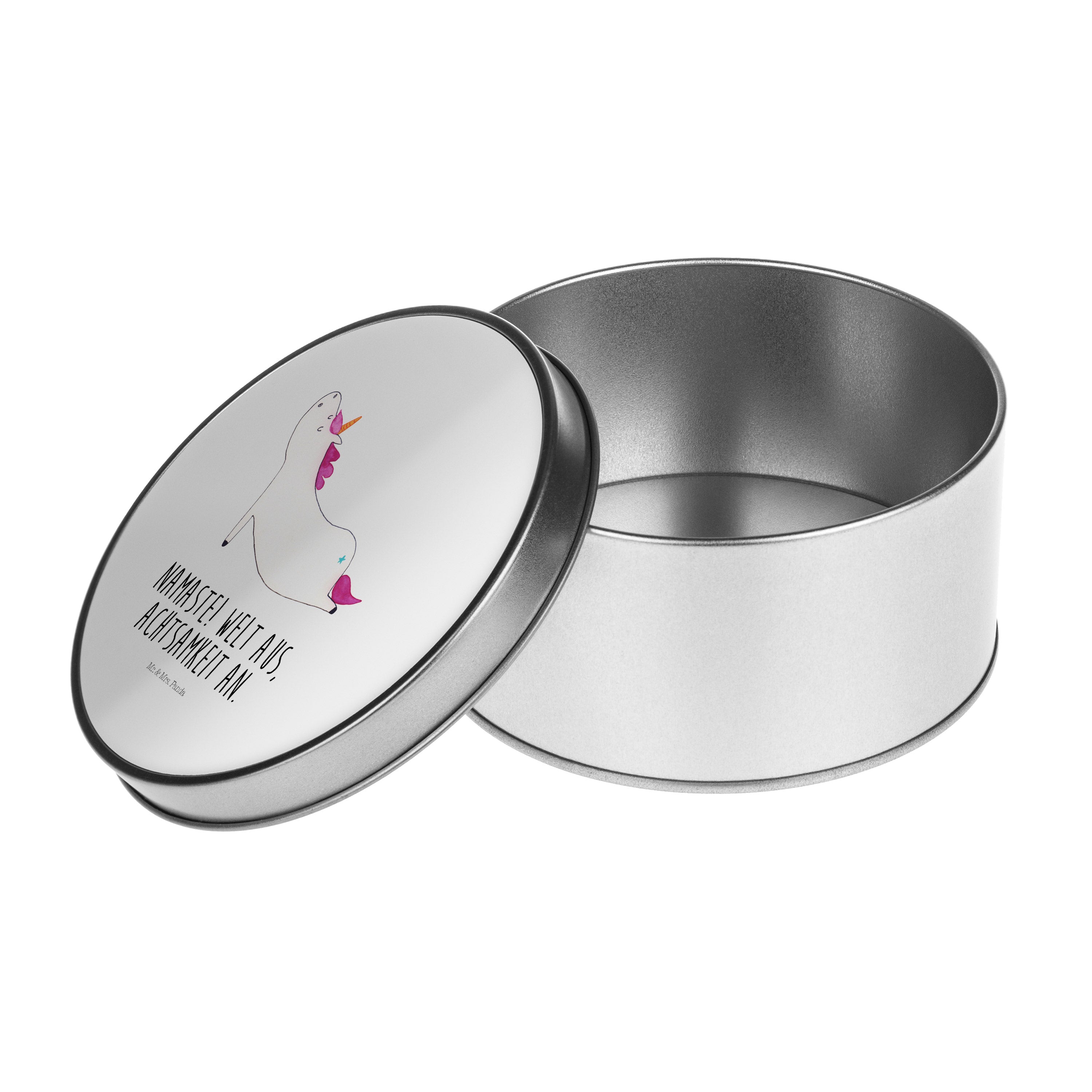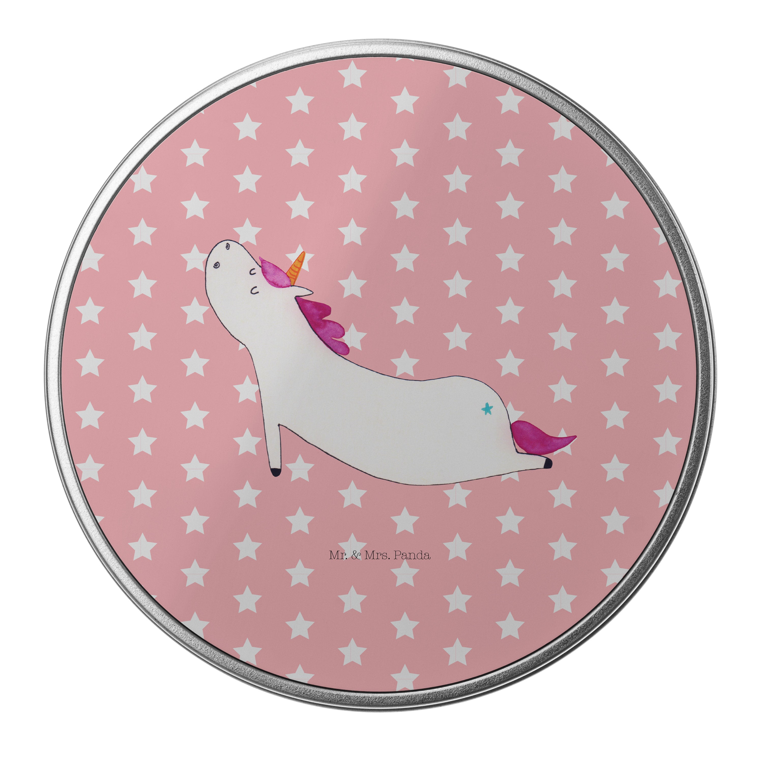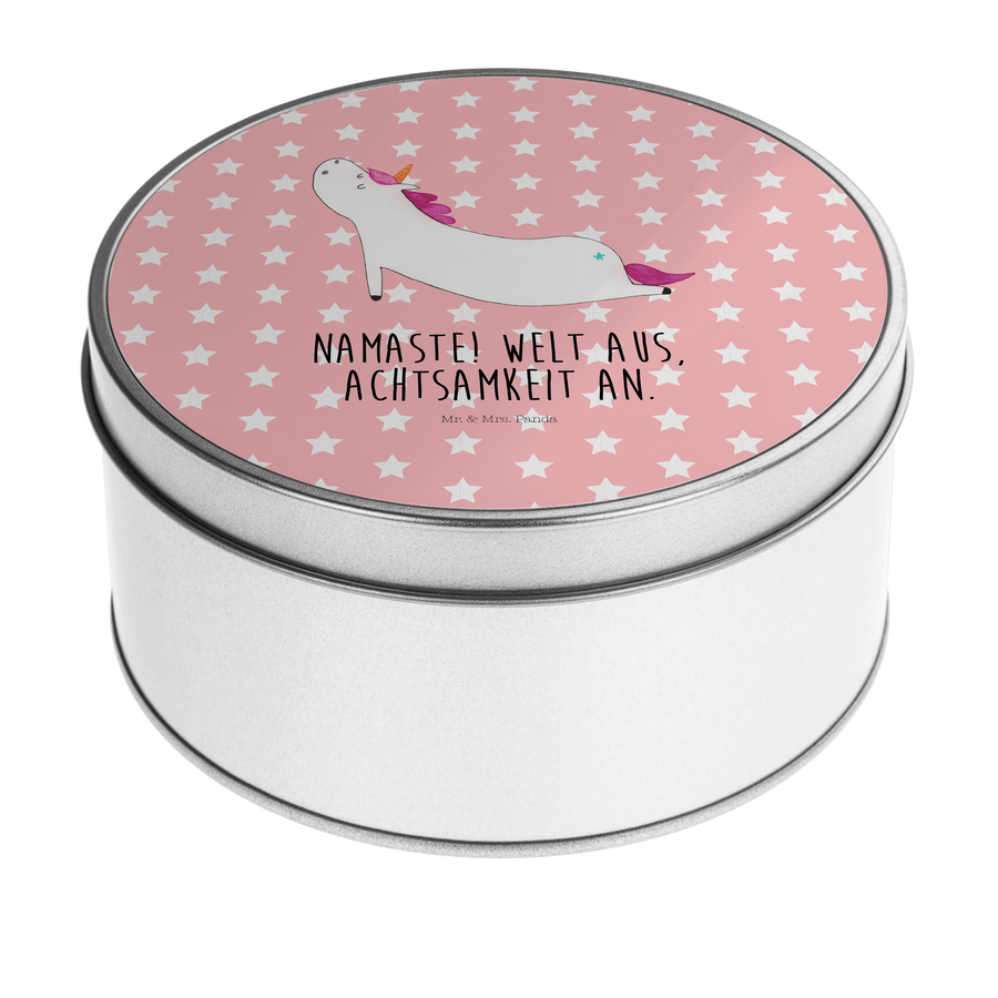 Blechdose rund Einhorn Yoga - mit Spruch - Rot Pastell