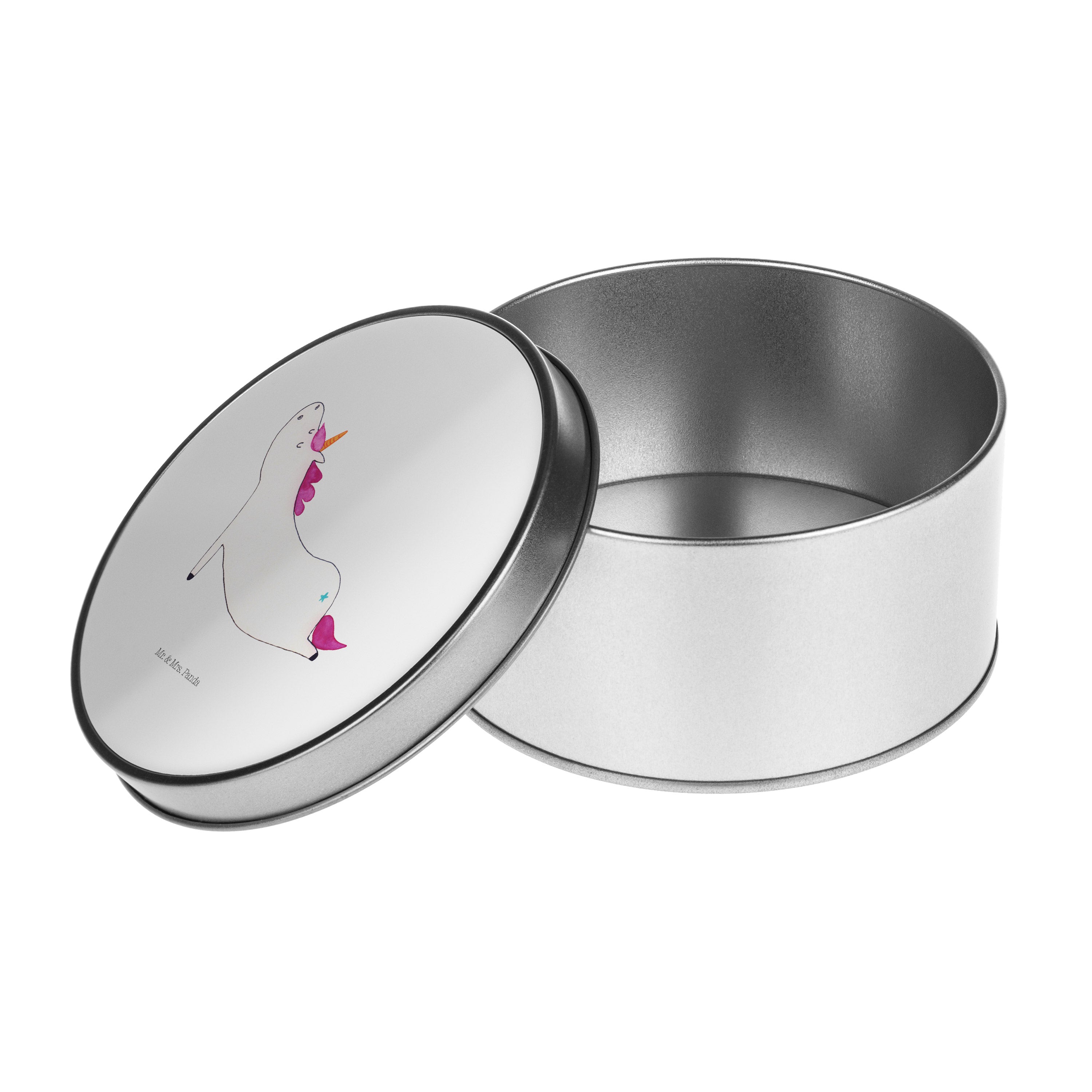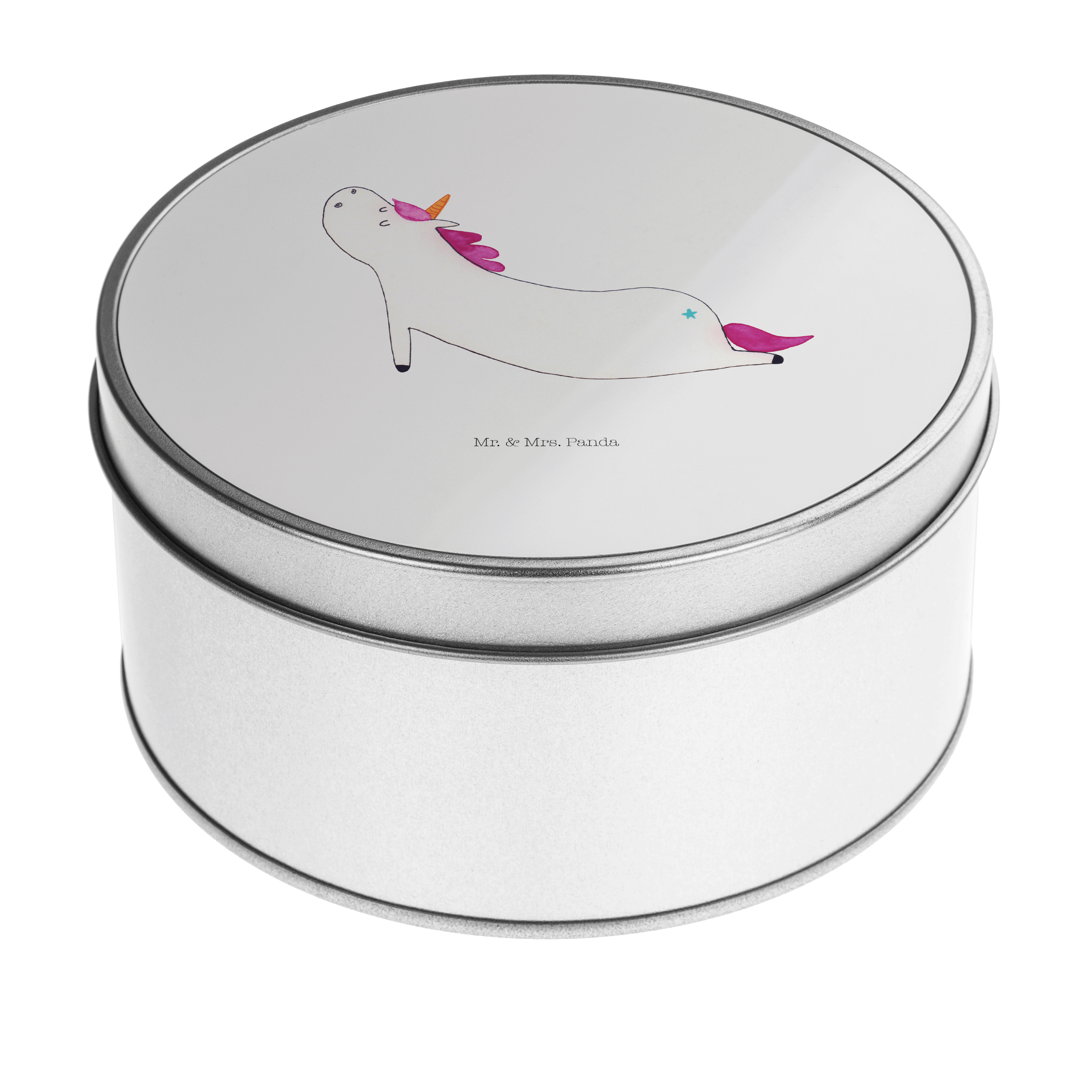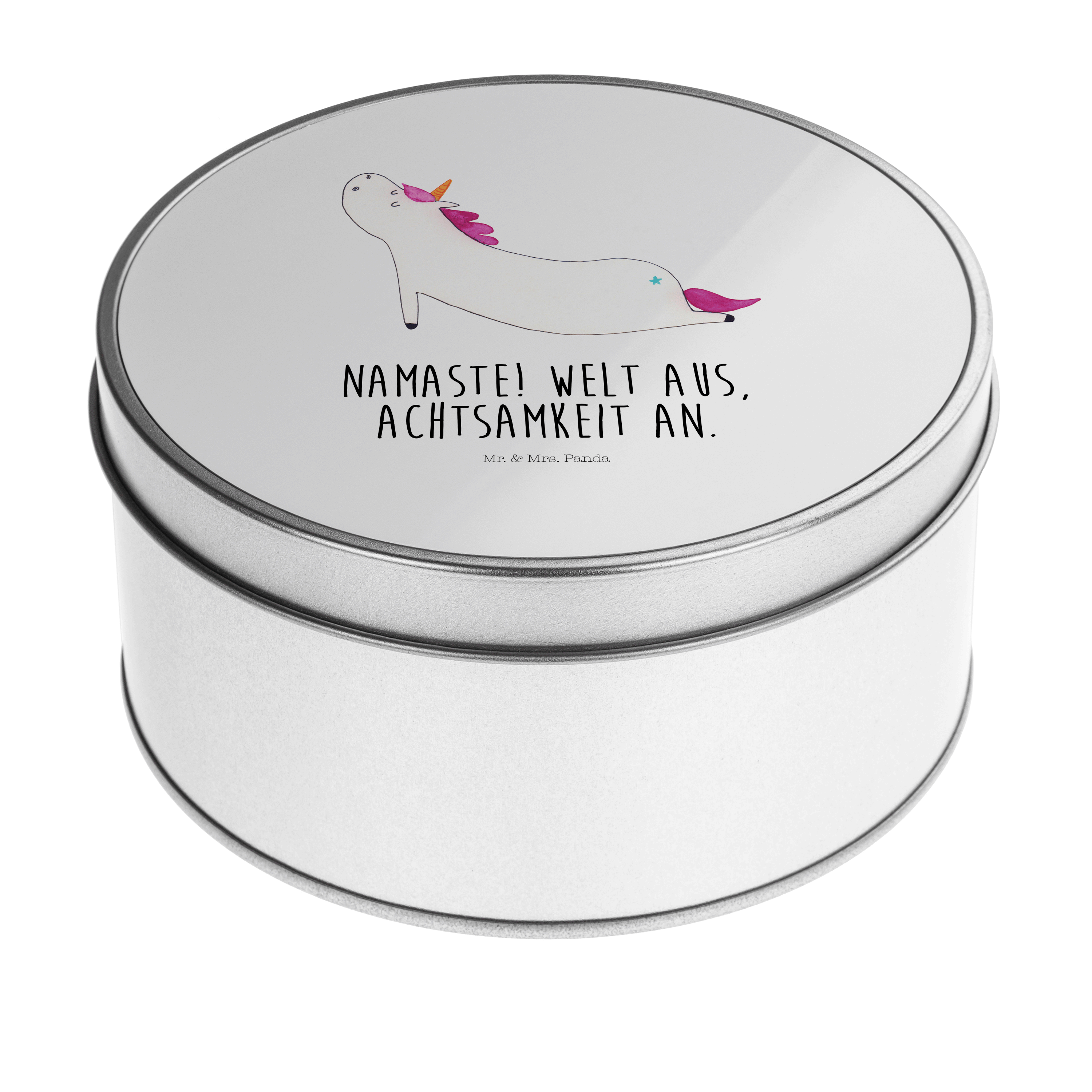 Blechdose rund Einhorn Yoga - mit Spruch - Rot Pastell
