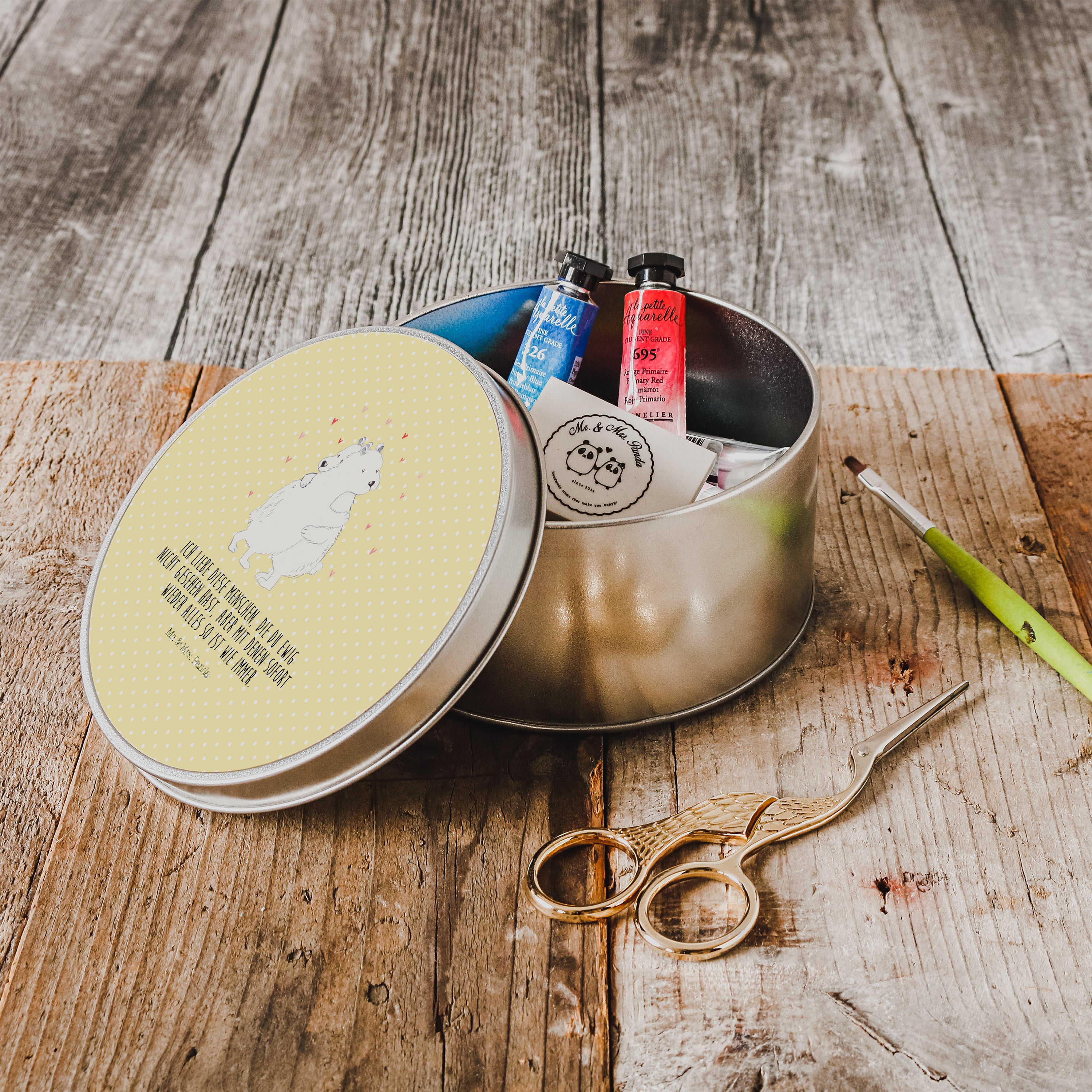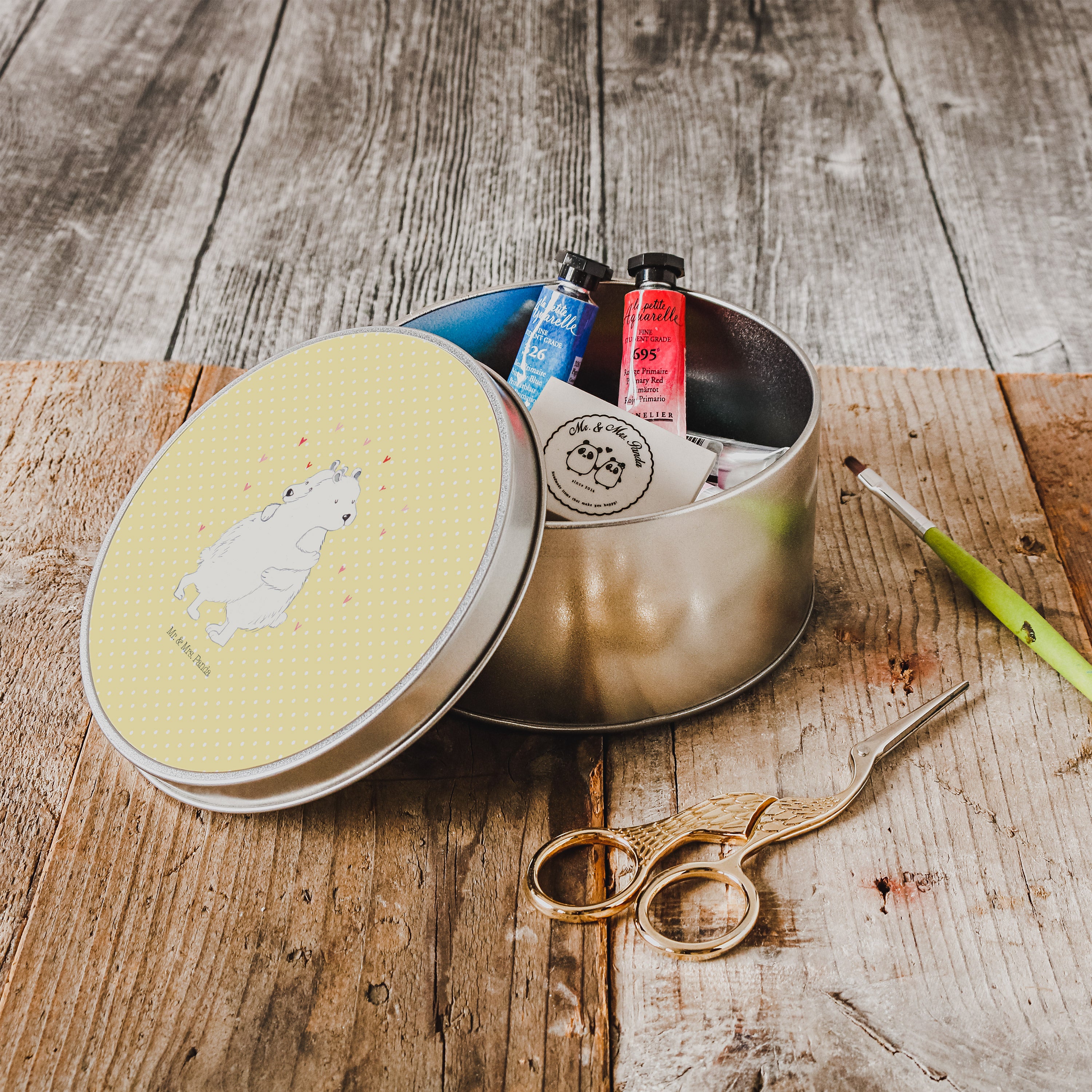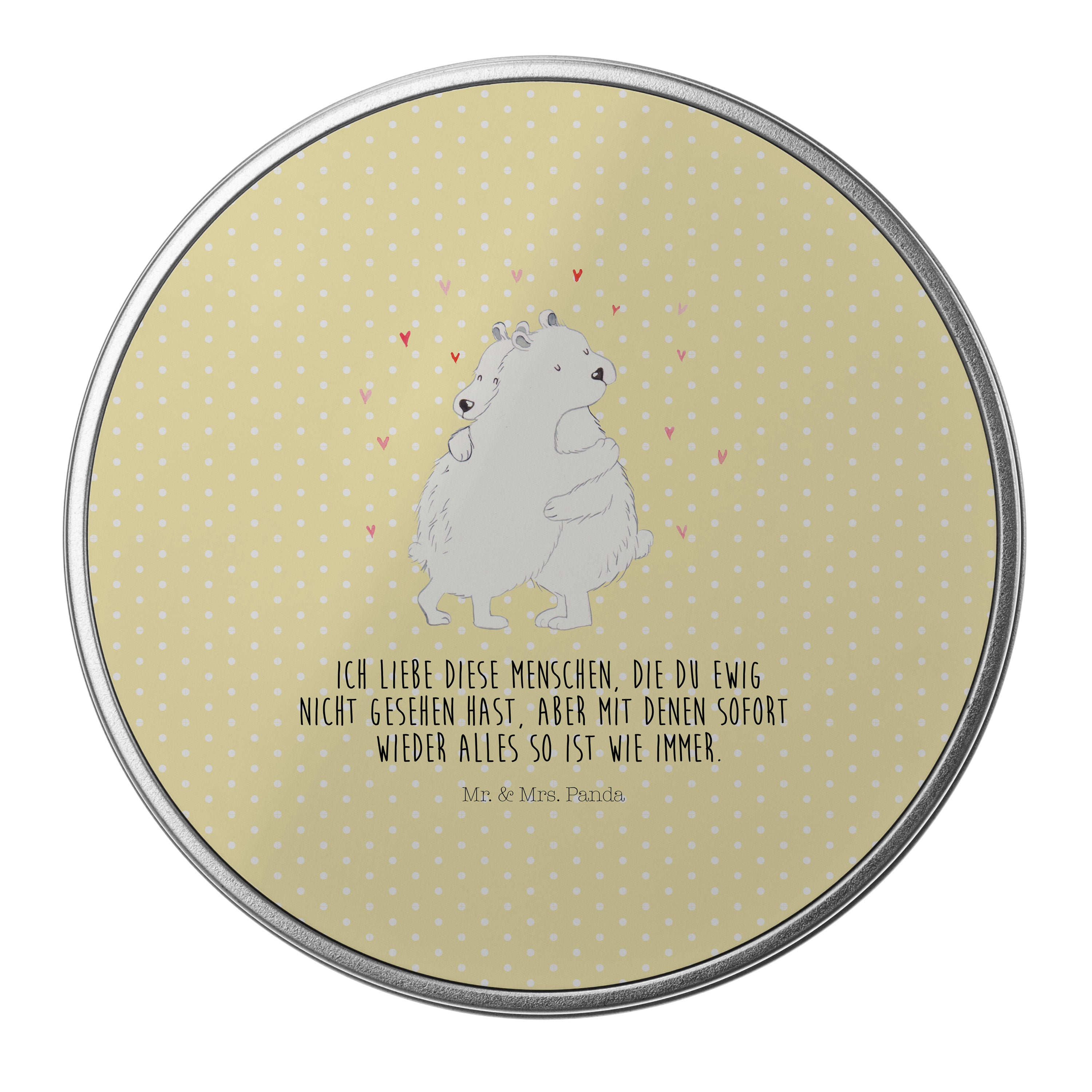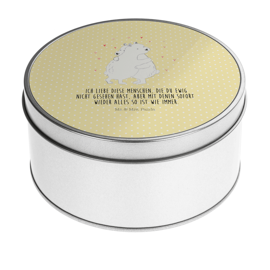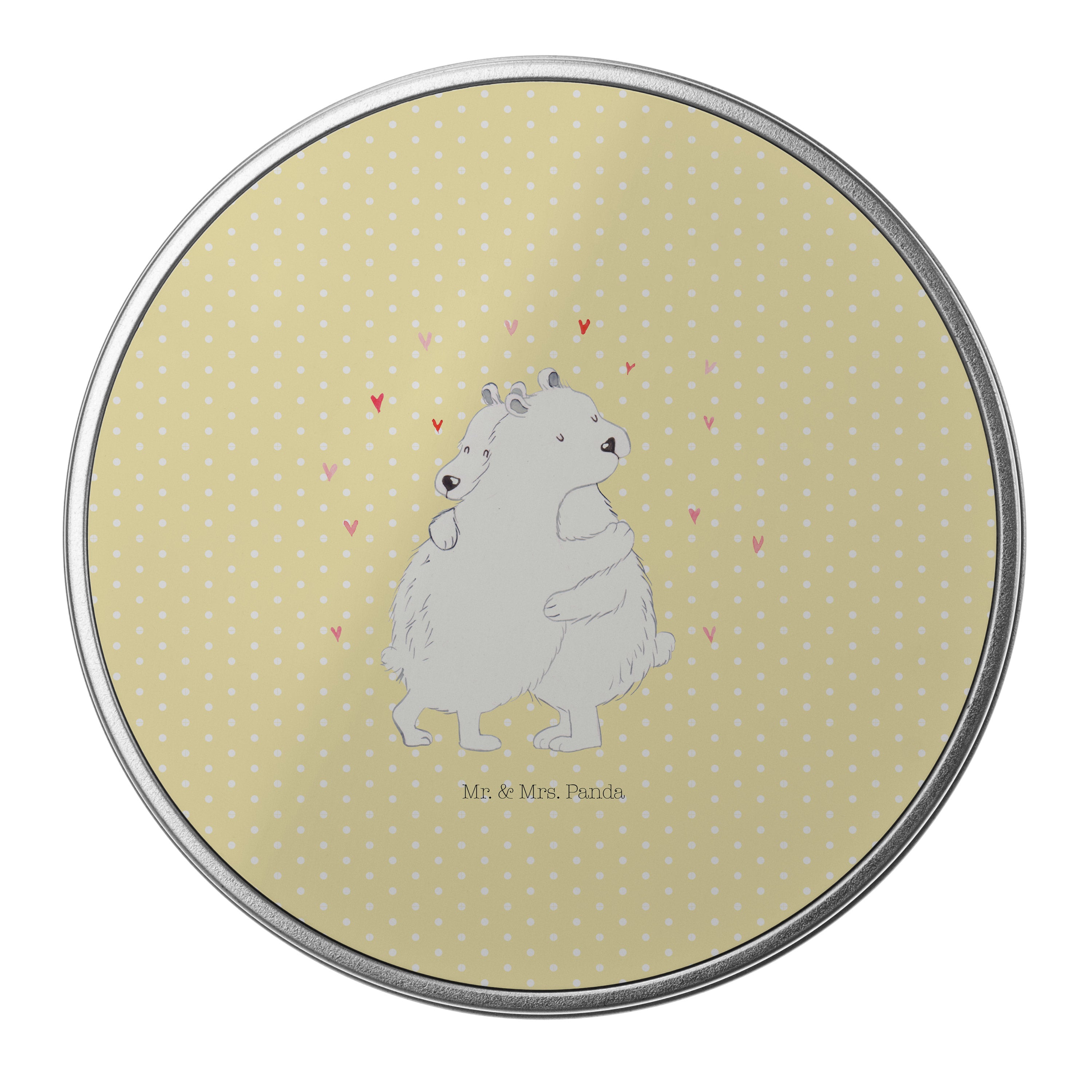 Blechdose rund Eisbär Umarmen - mit Spruch - Gelb Pastell