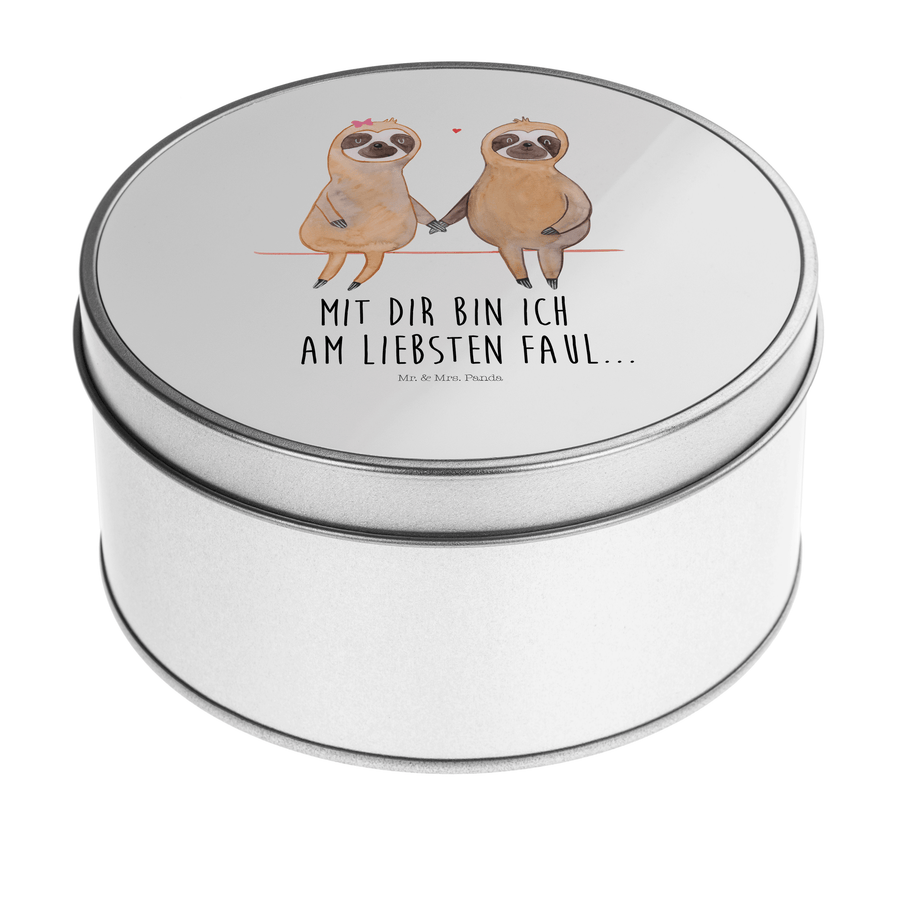 Blechdose rund Faultier Pärchen - mit Spruch - Weiß
