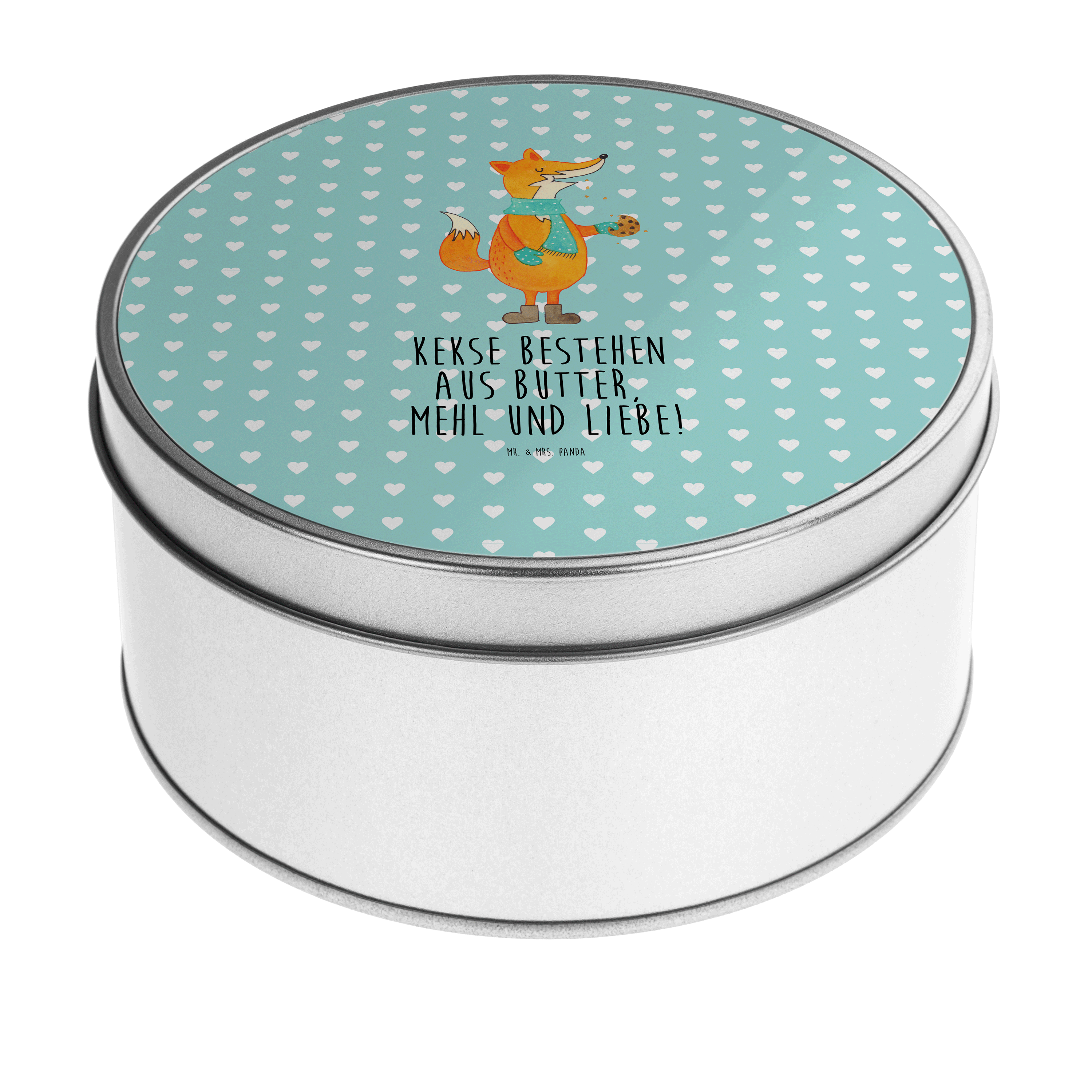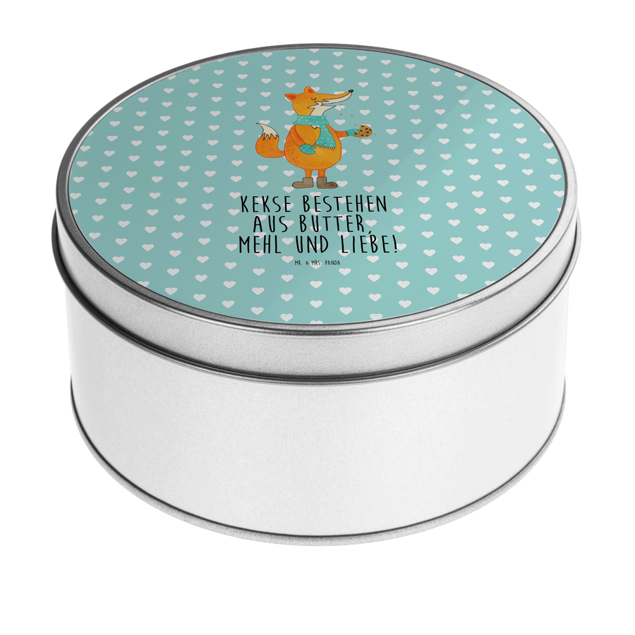 Blechdose rund Fuchs Keks - mit Spruch - Türkis Pastell