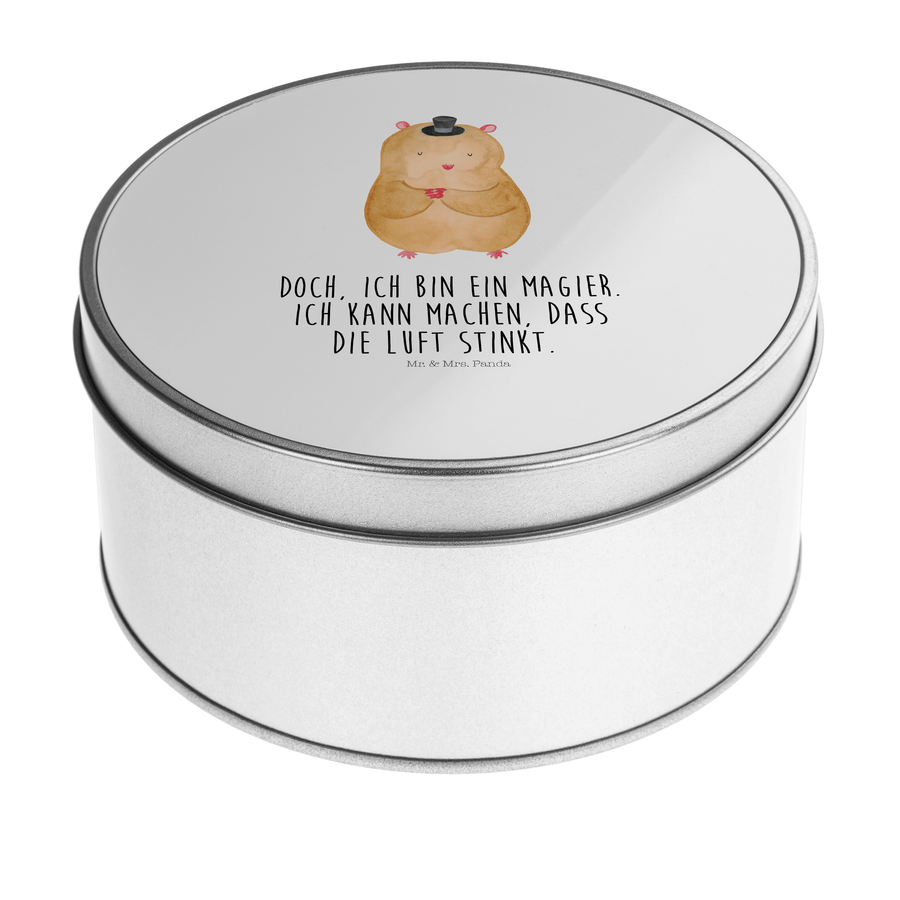 Blechdose rund Hamster mit Hut - mit Spruch - Weiß