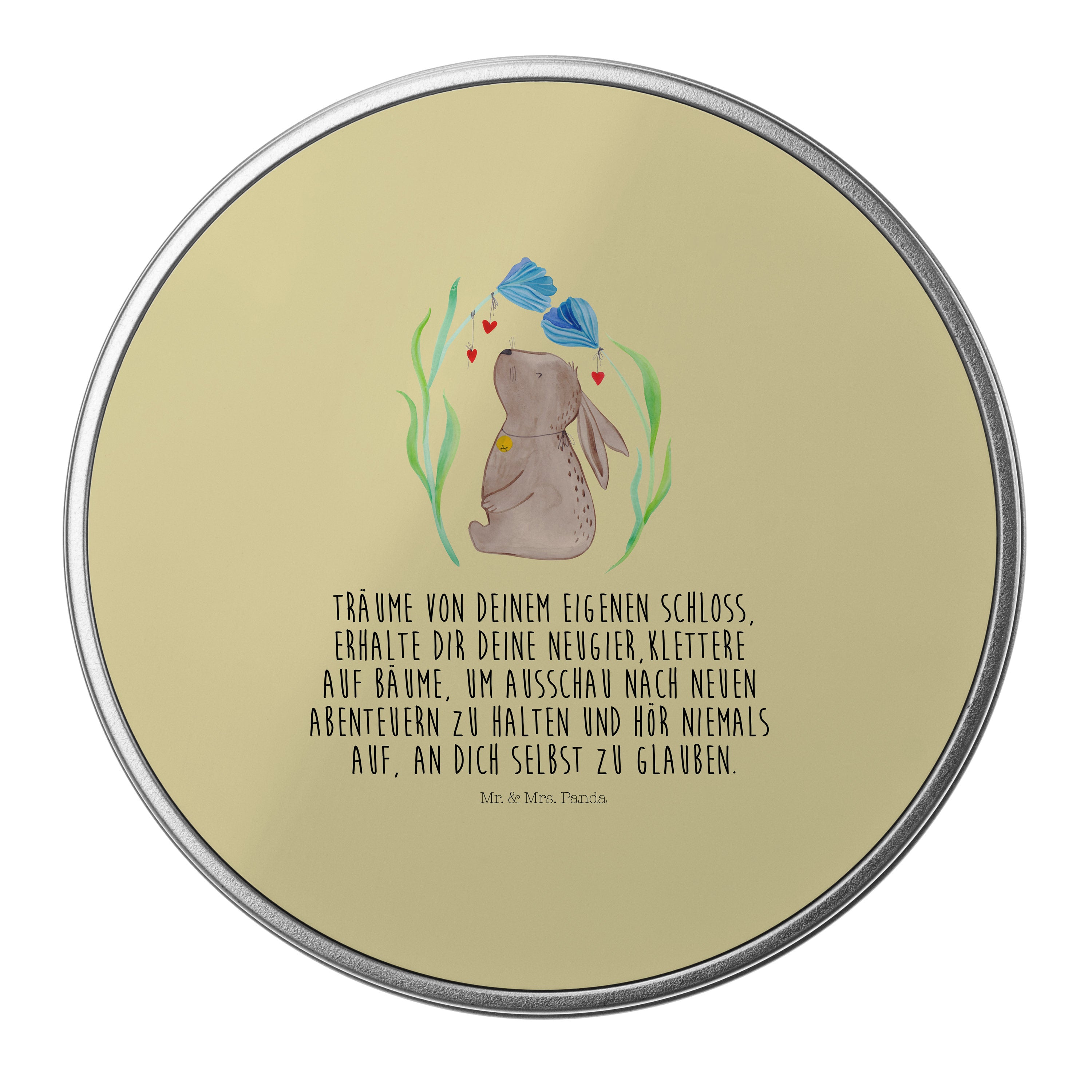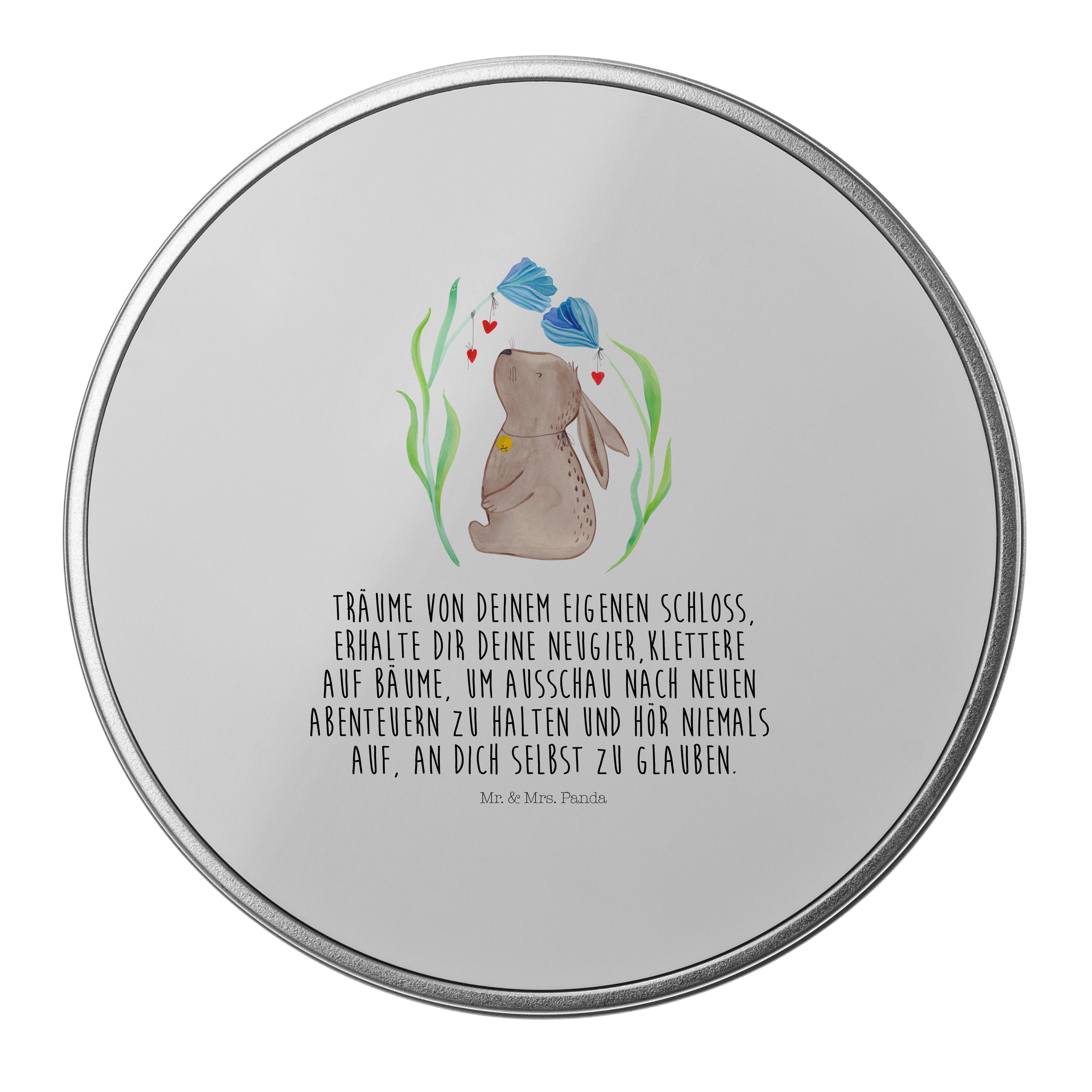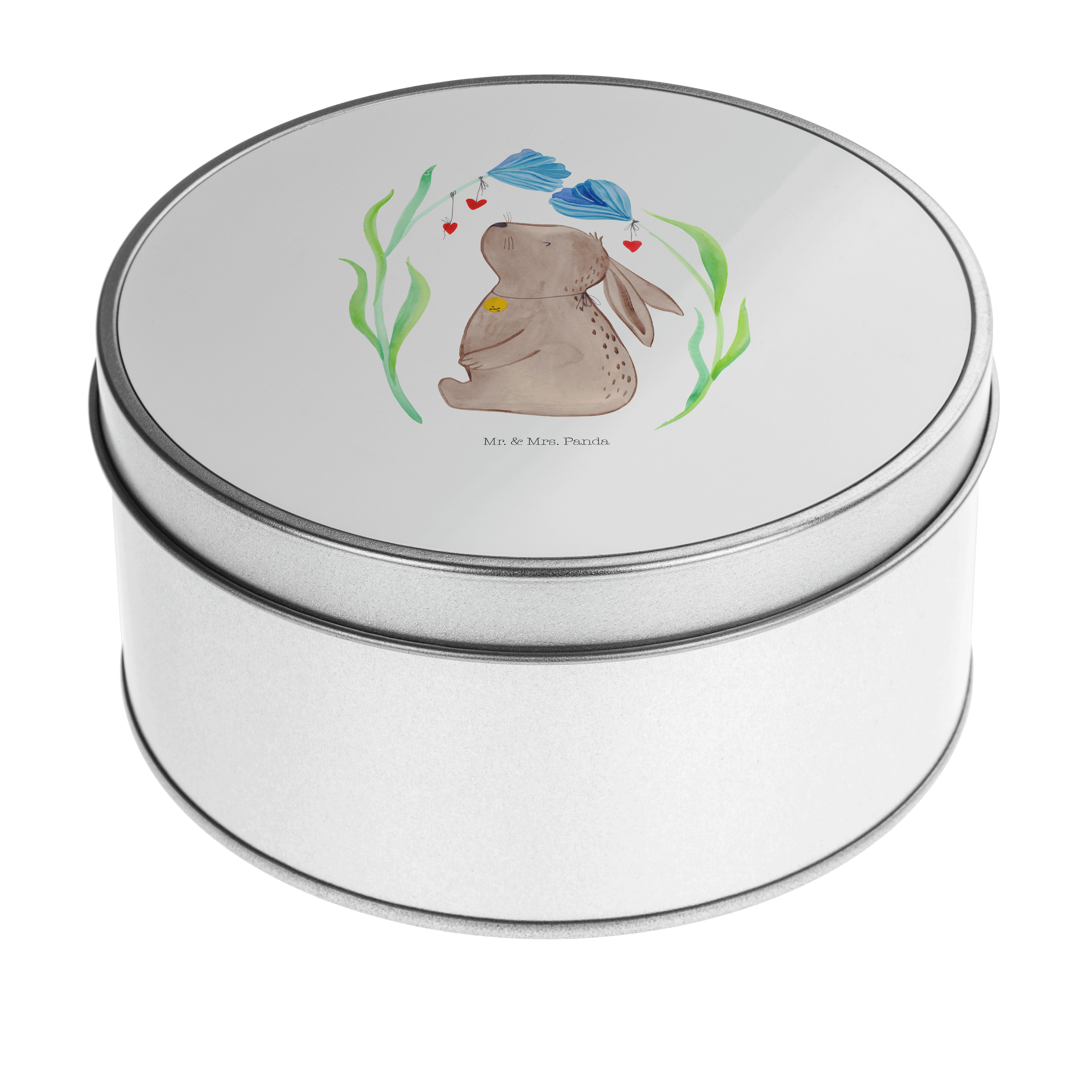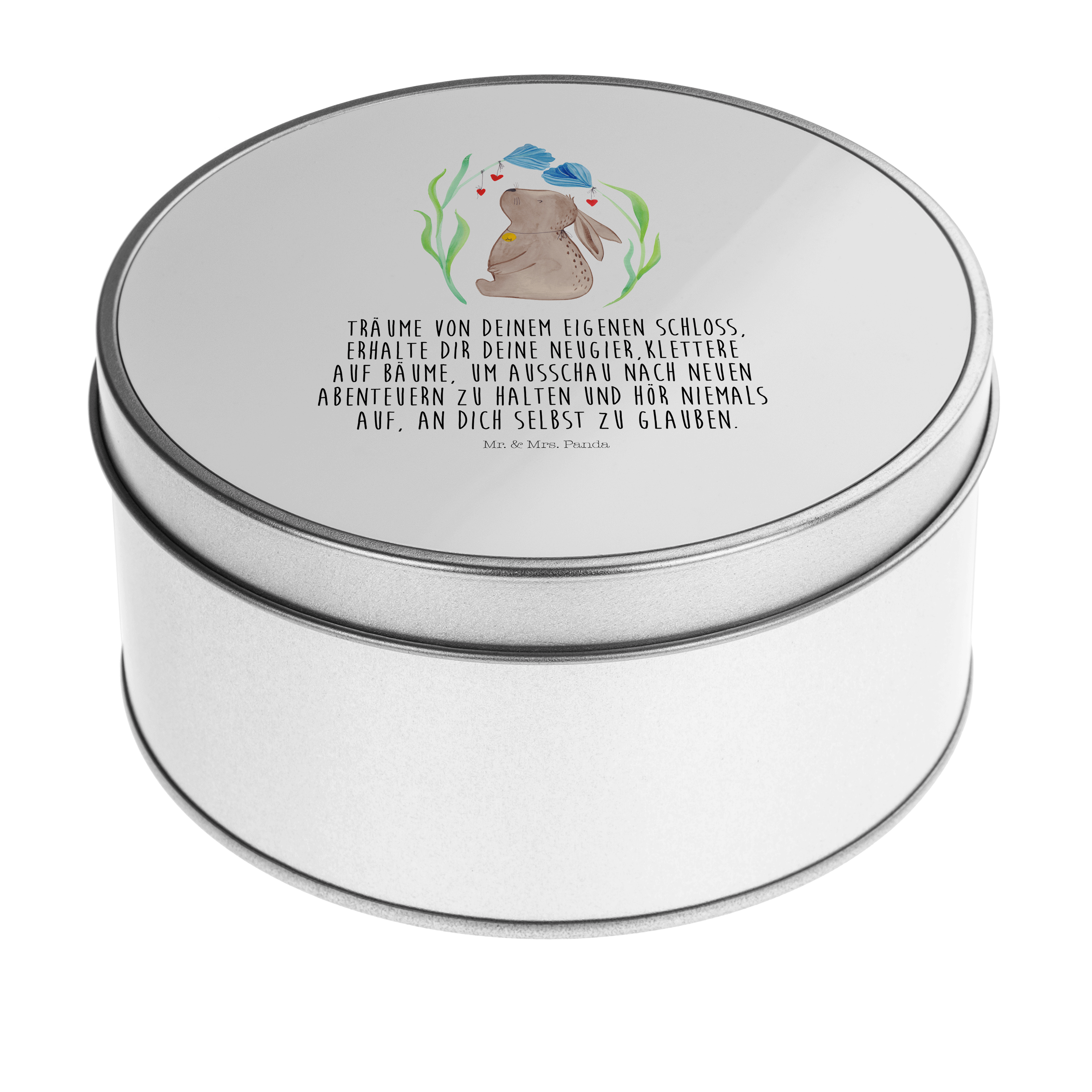 Blechdose rund Hase Blume - mit Spruch - Weiß