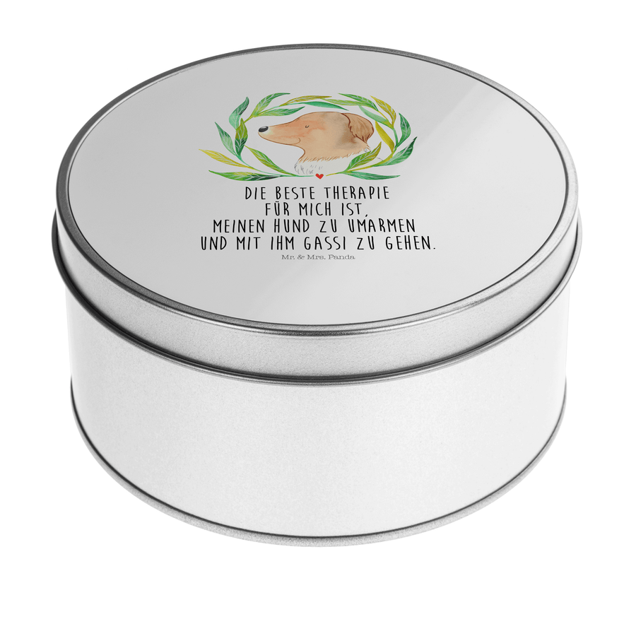 Blechdose rund Hund Ranke - mit Spruch - Weiß