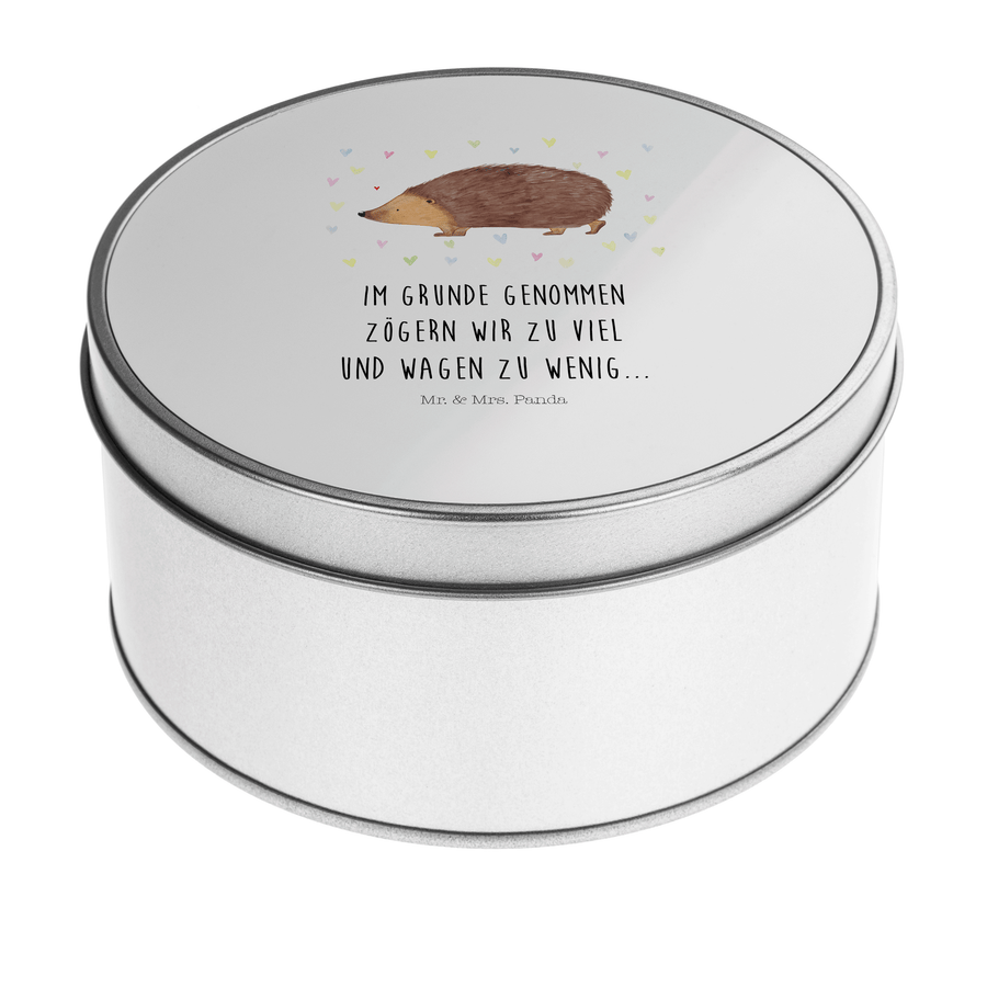 Blechdose rund Igel Herzen - mit Spruch - Weiß