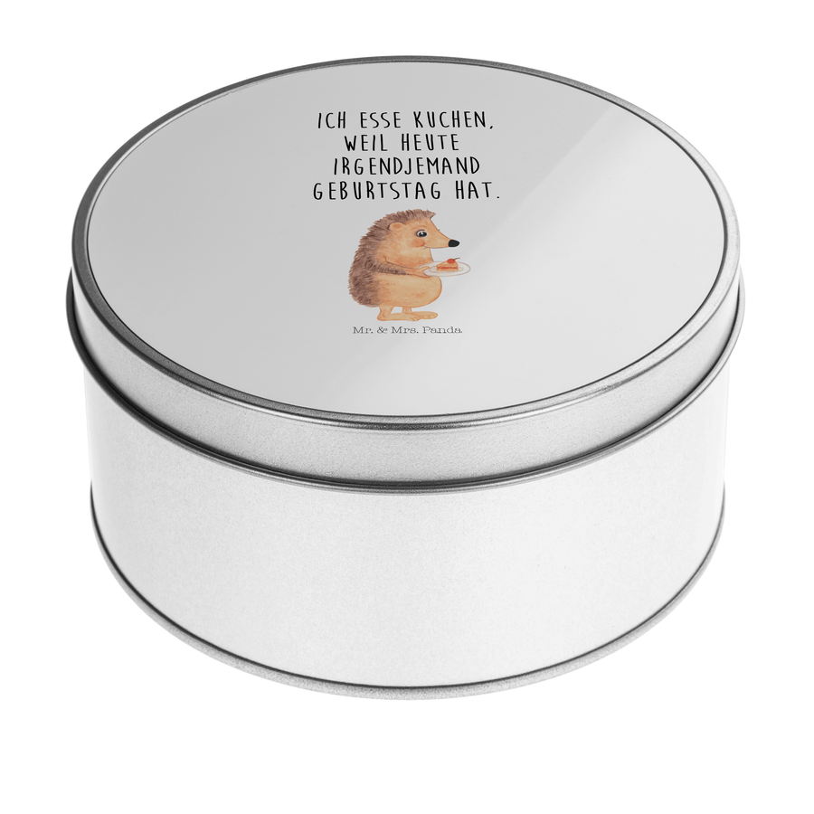 Blechdose rund Igel mit Kuchenstück - mit Spruch - Weiß