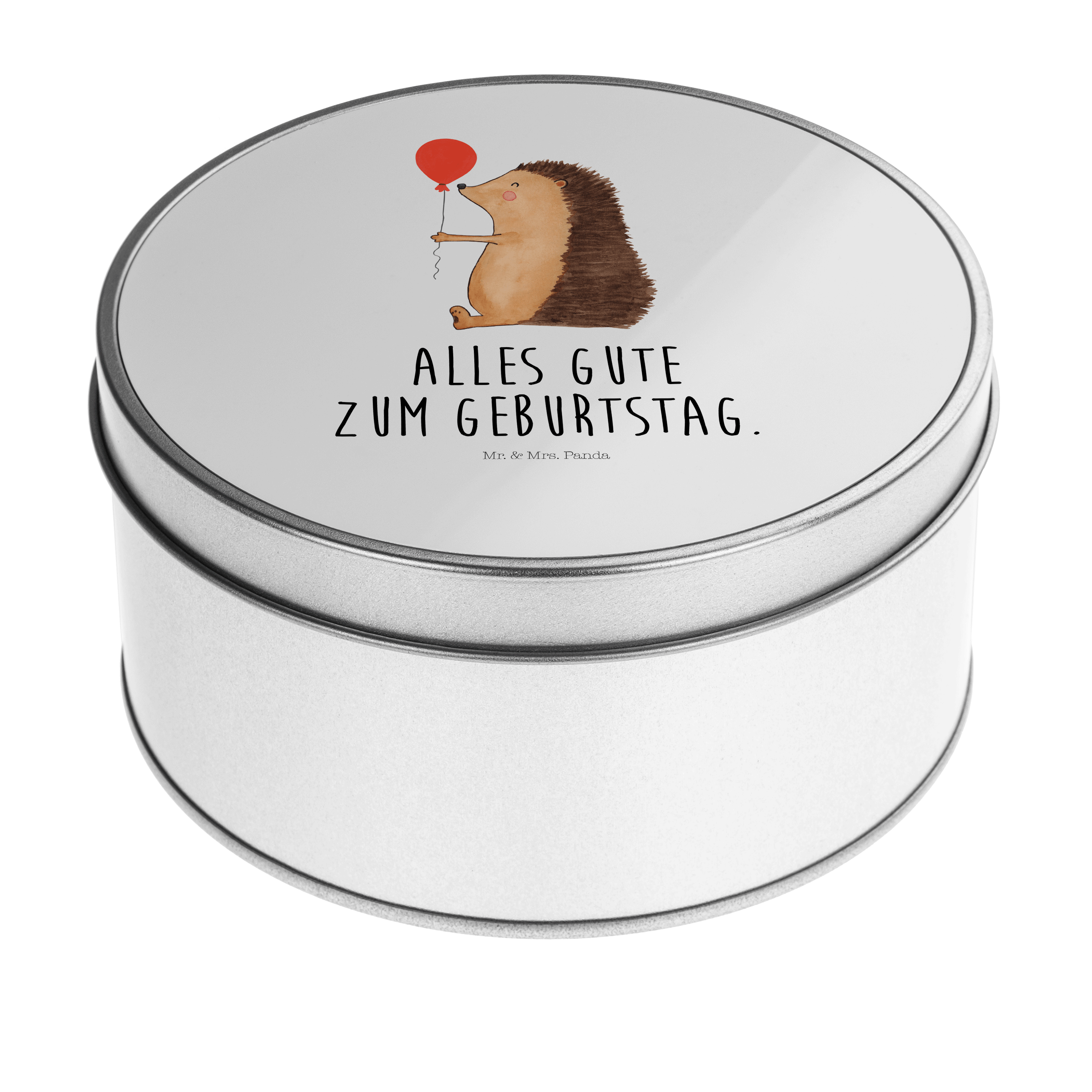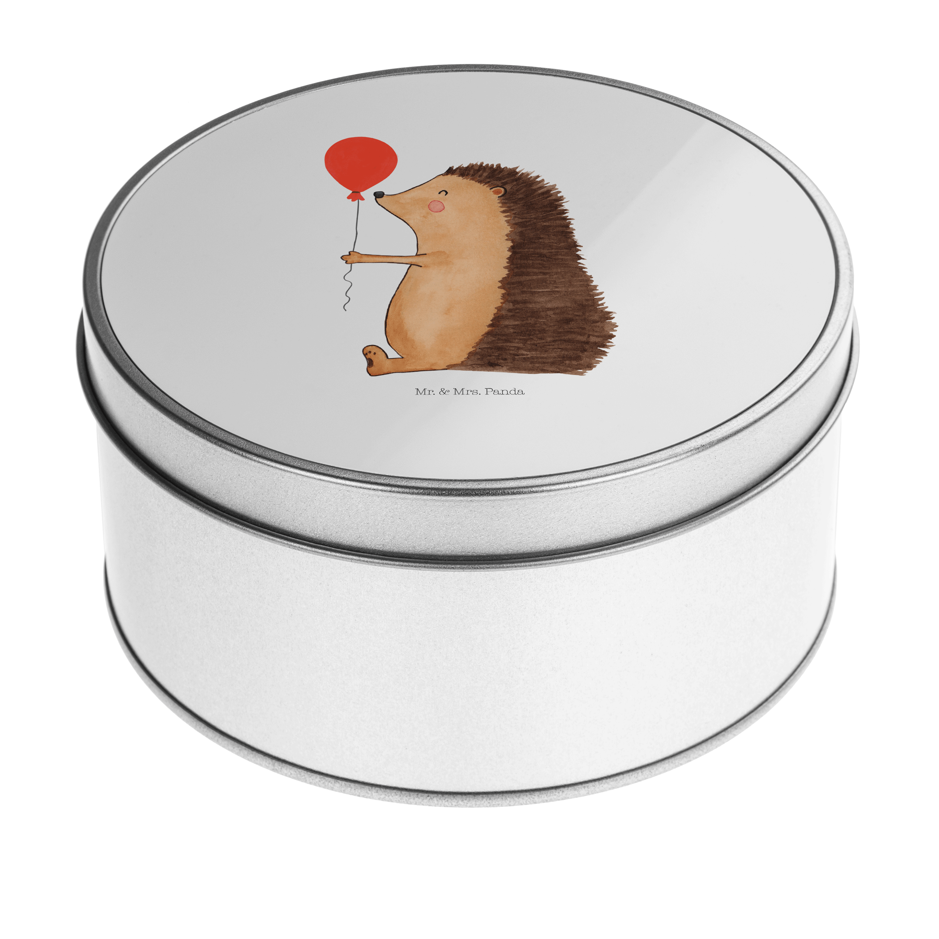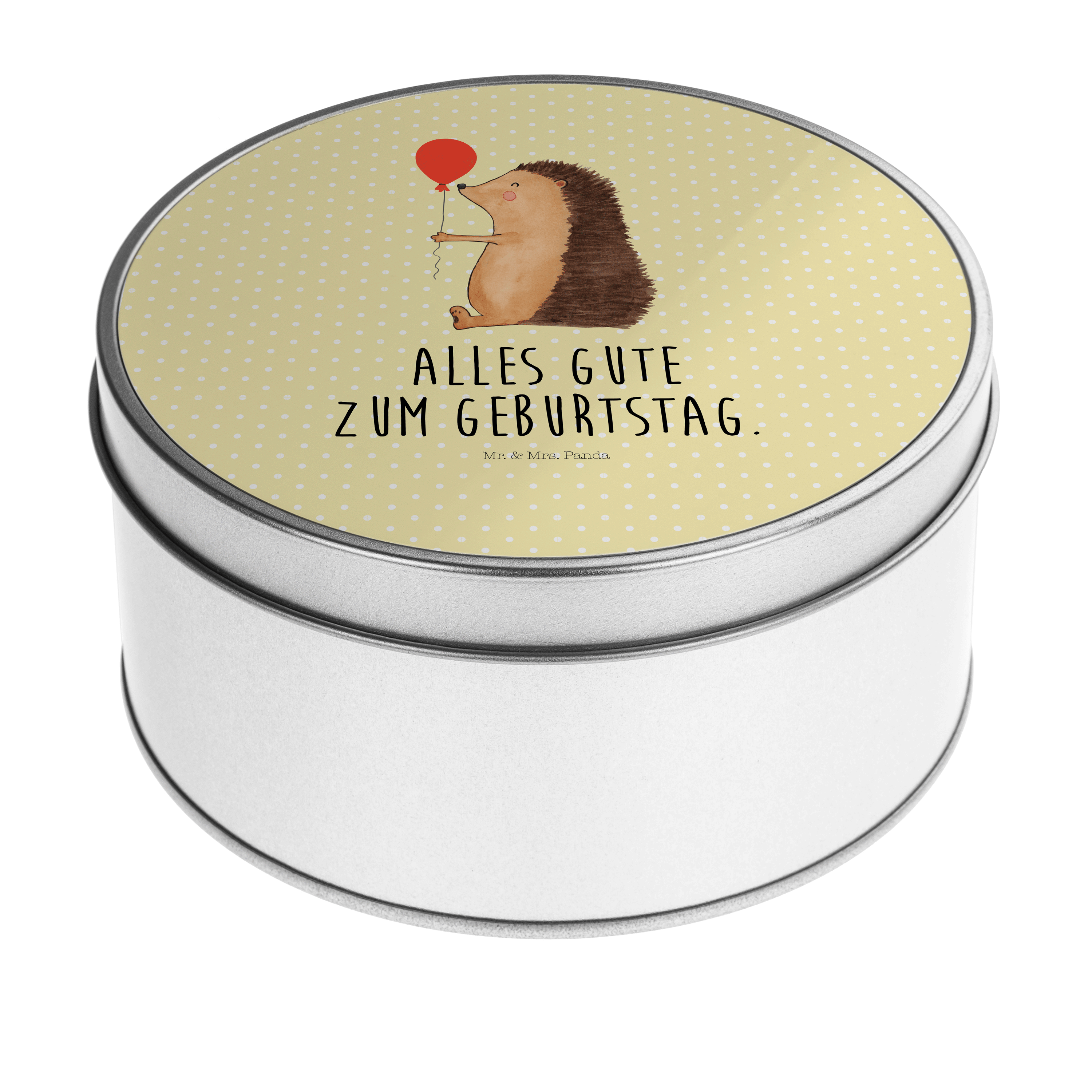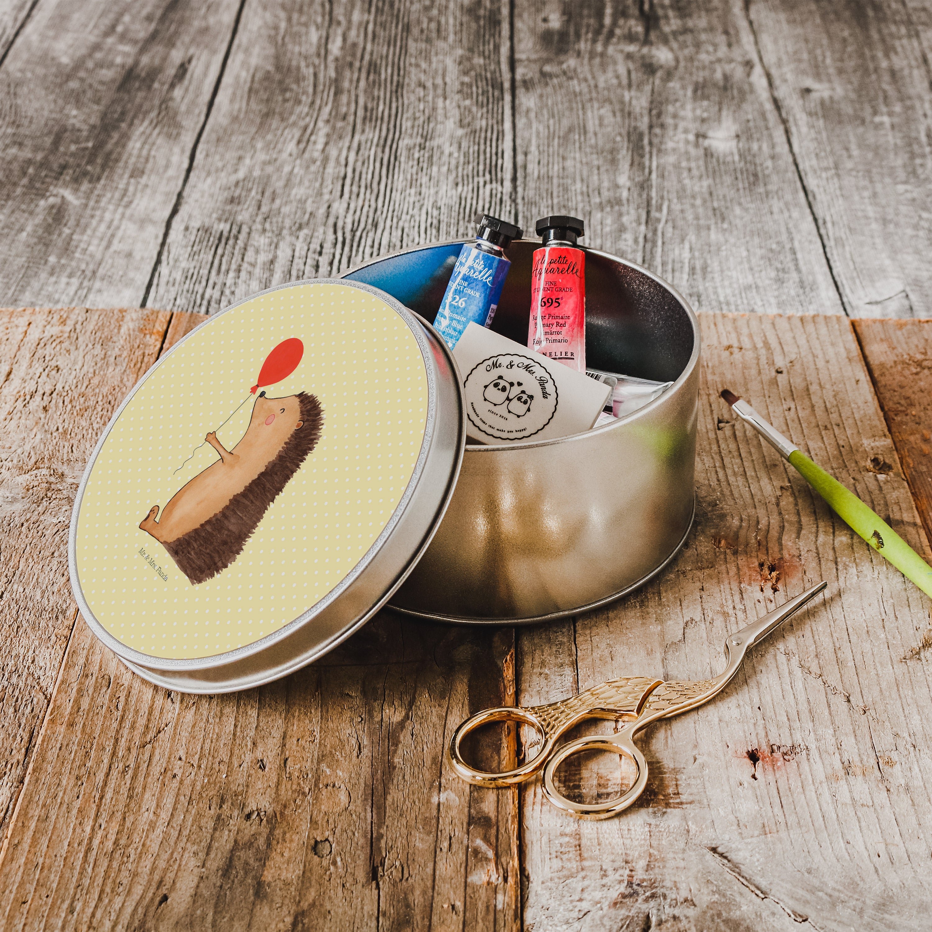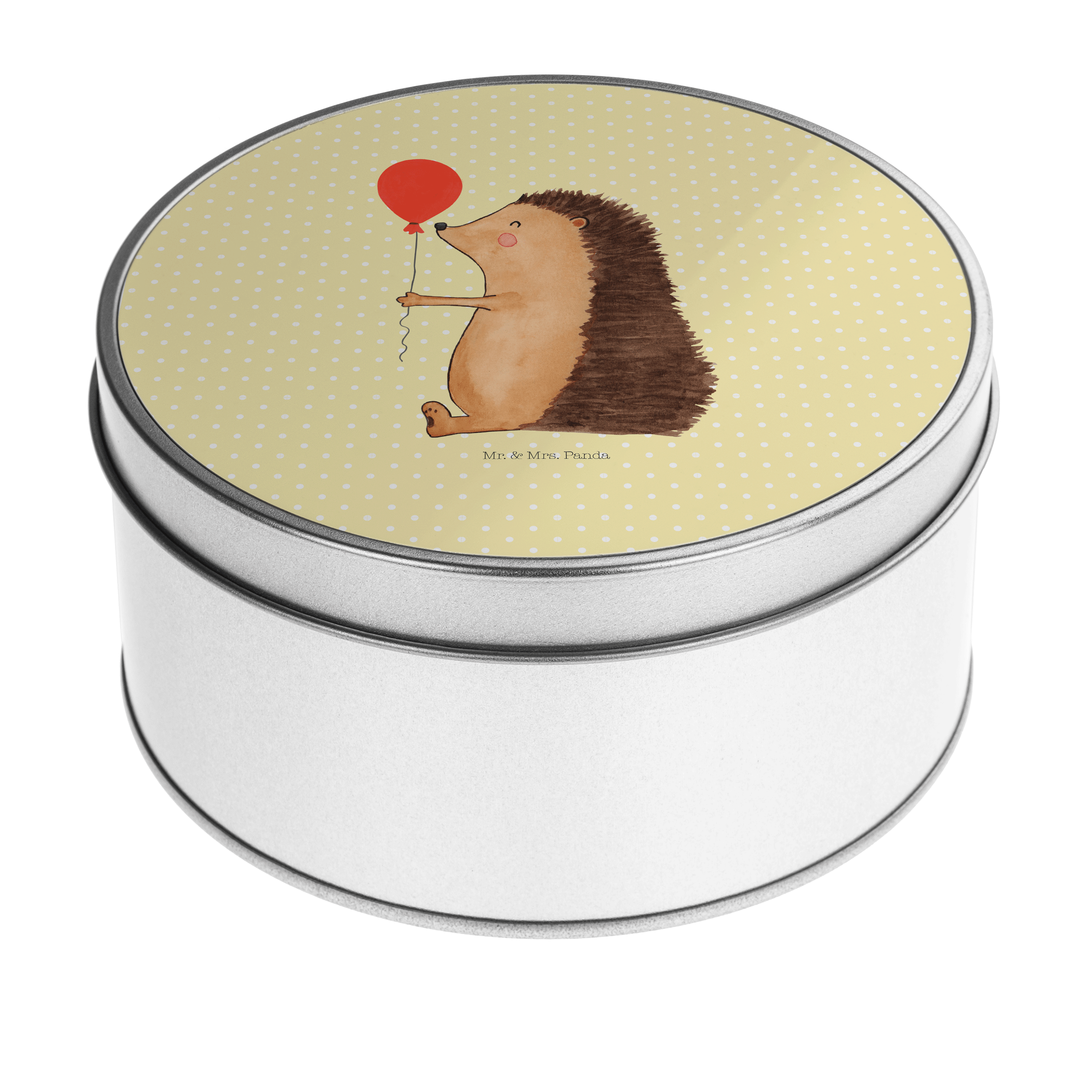 Blechdose rund Igel mit Luftballon - mit Spruch - Gelb Pastell