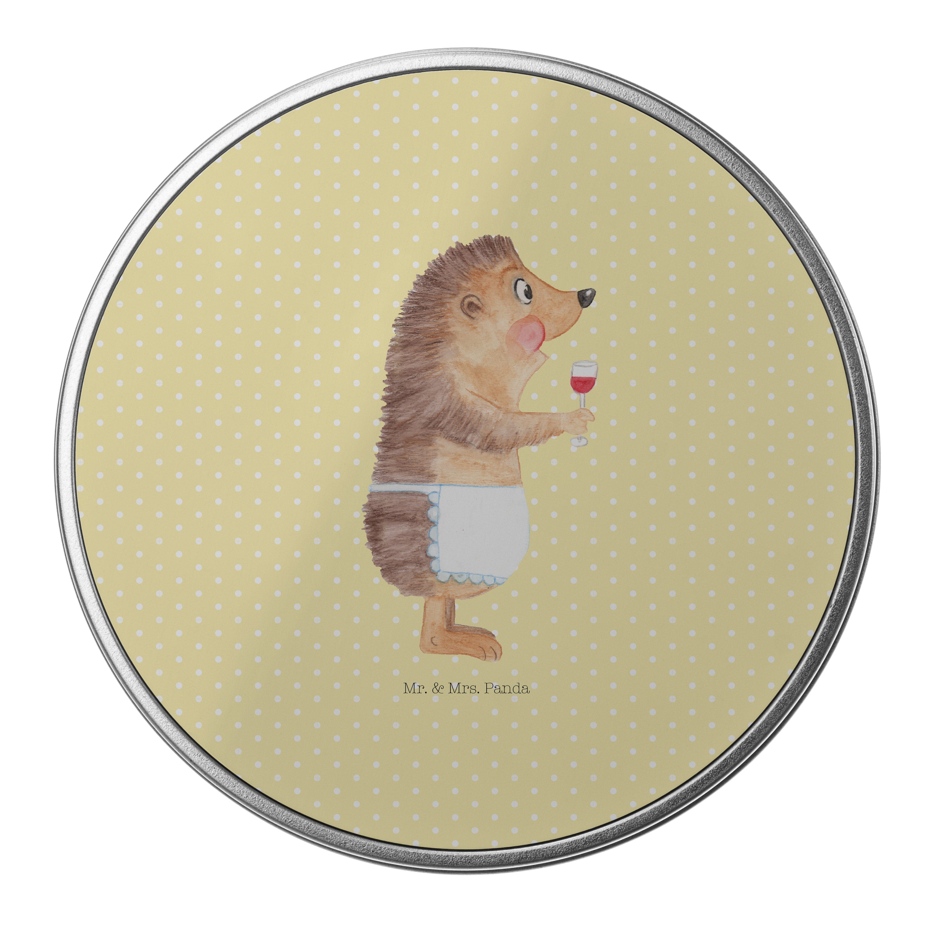 Blechdose rund Igel mit Wein - mit Spruch - Gelb Pastell