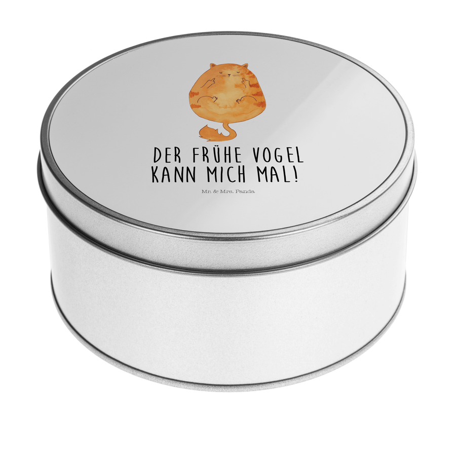 Blechdose rund Katze Frühaufsteher - mit Spruch - Weiß