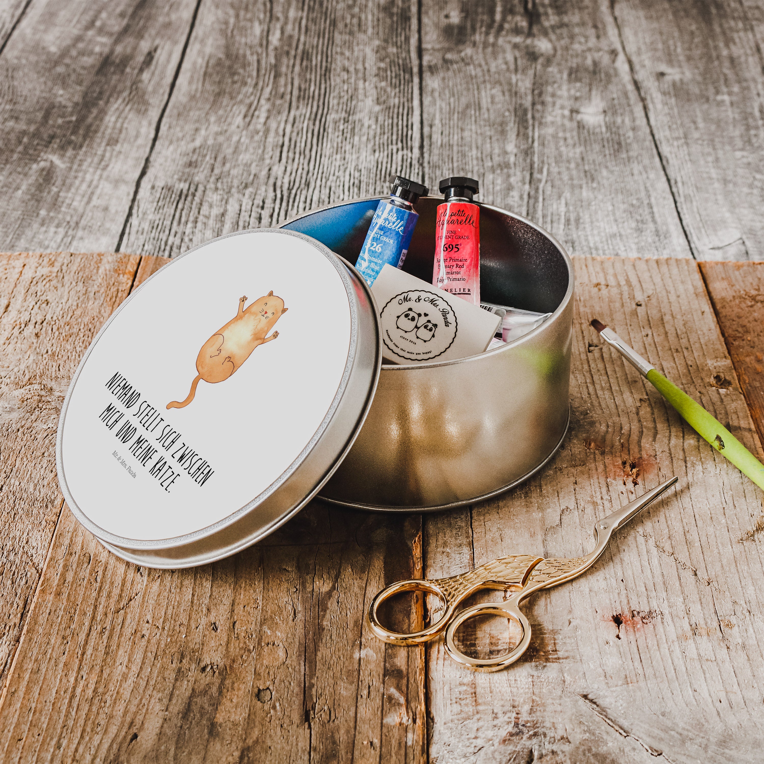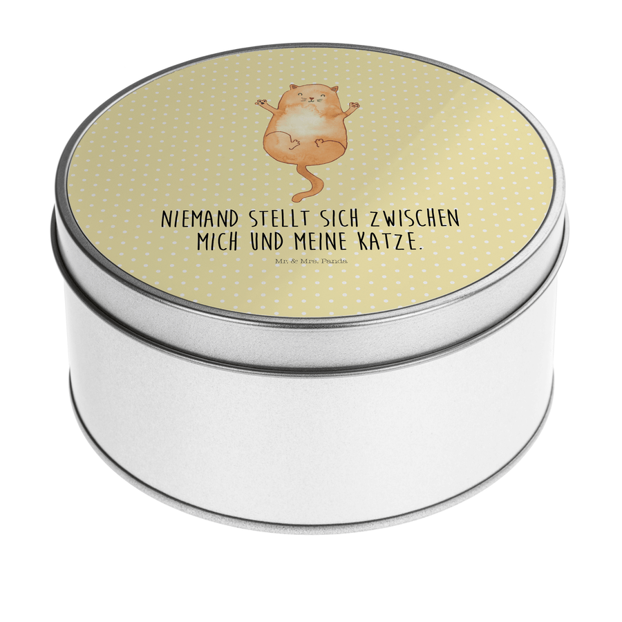 Blechdose rund Katzen Umarmen - mit Spruch - Gelb Pastell