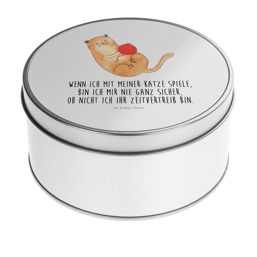 Blechdose rund Katzen Wollknäul - mit Spruch - Weiß
