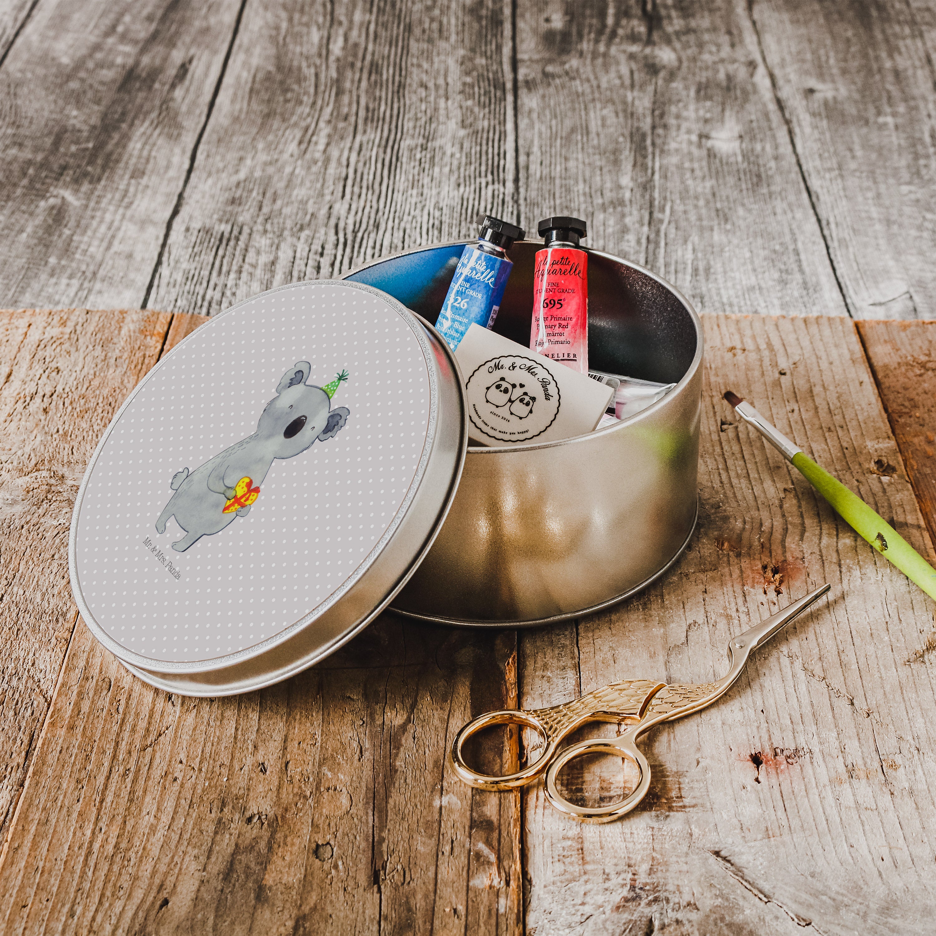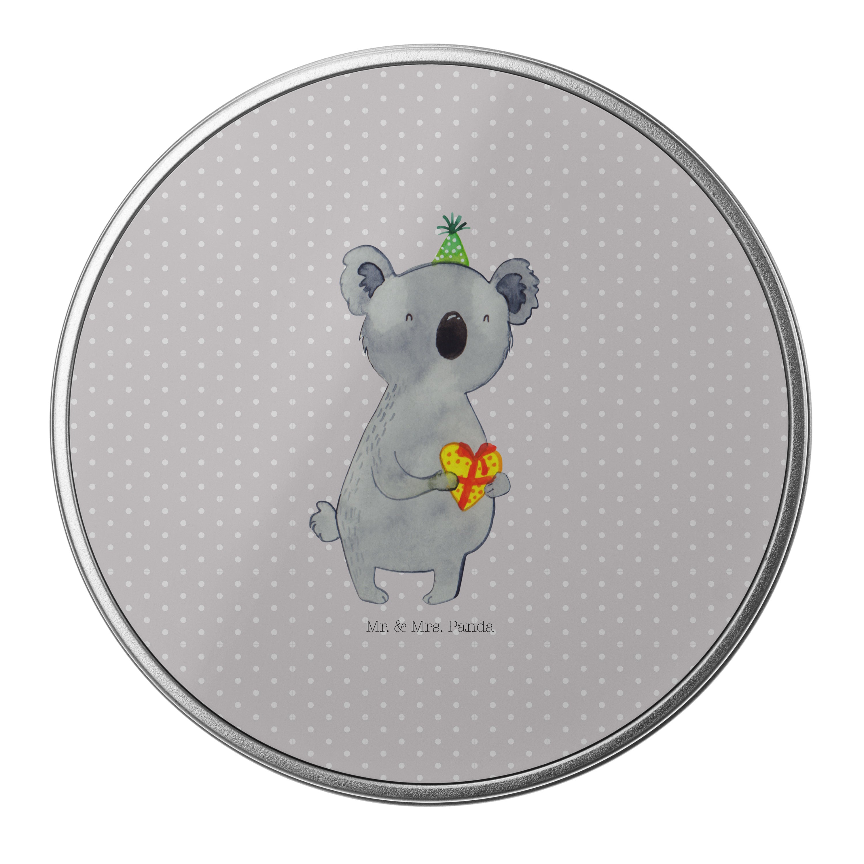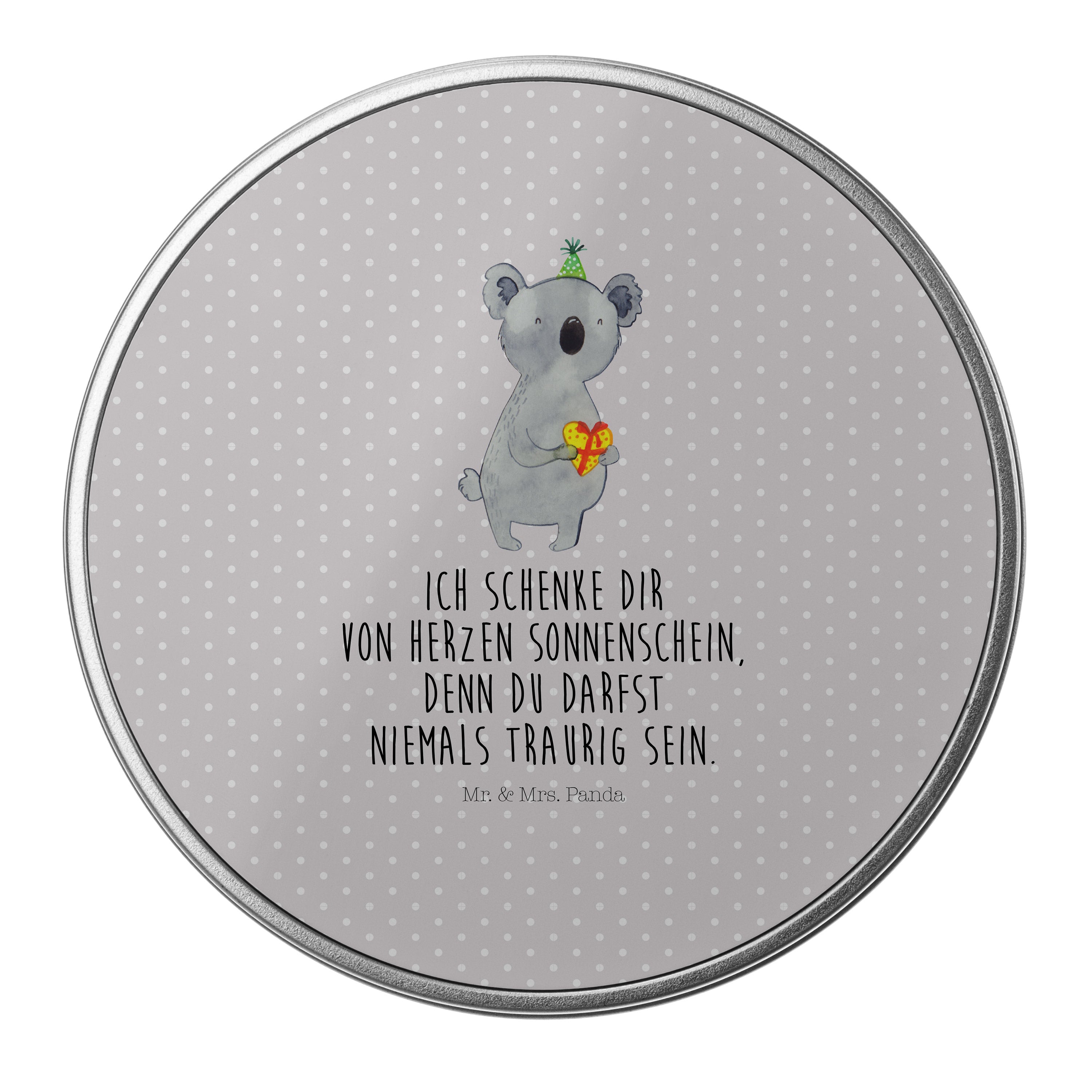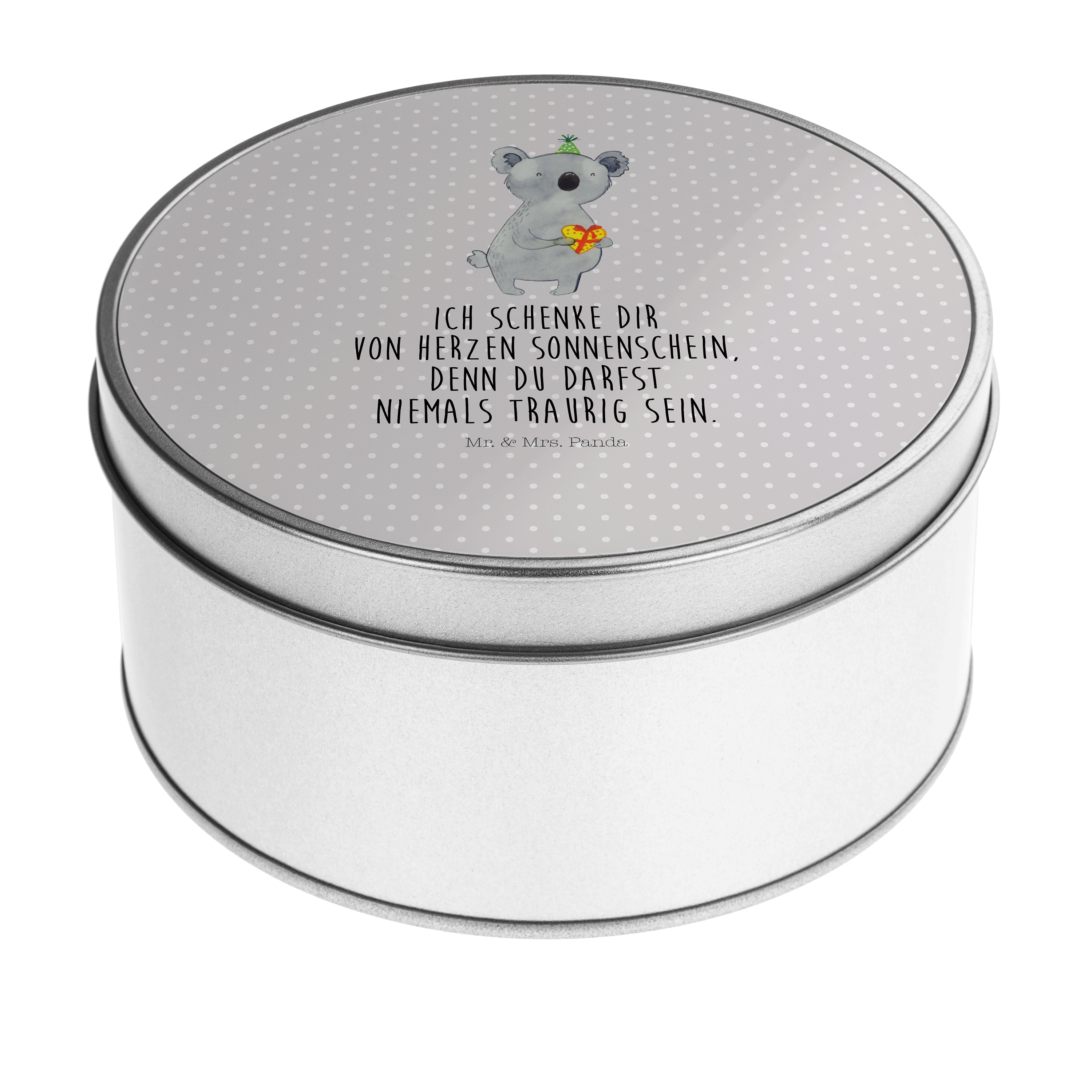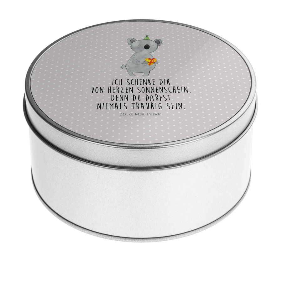 Blechdose rund Koala Geschenk - mit Spruch - Grau Pastell