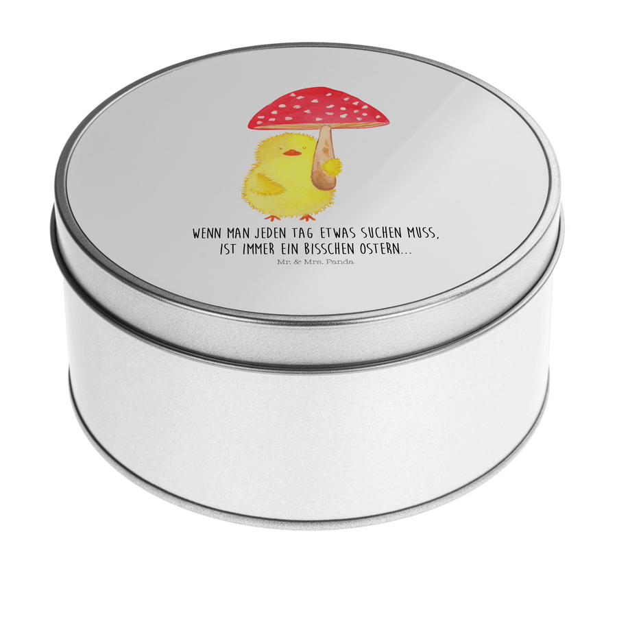 Blechdose rund Küken Fliegenpilz - mit Spruch - Weiß