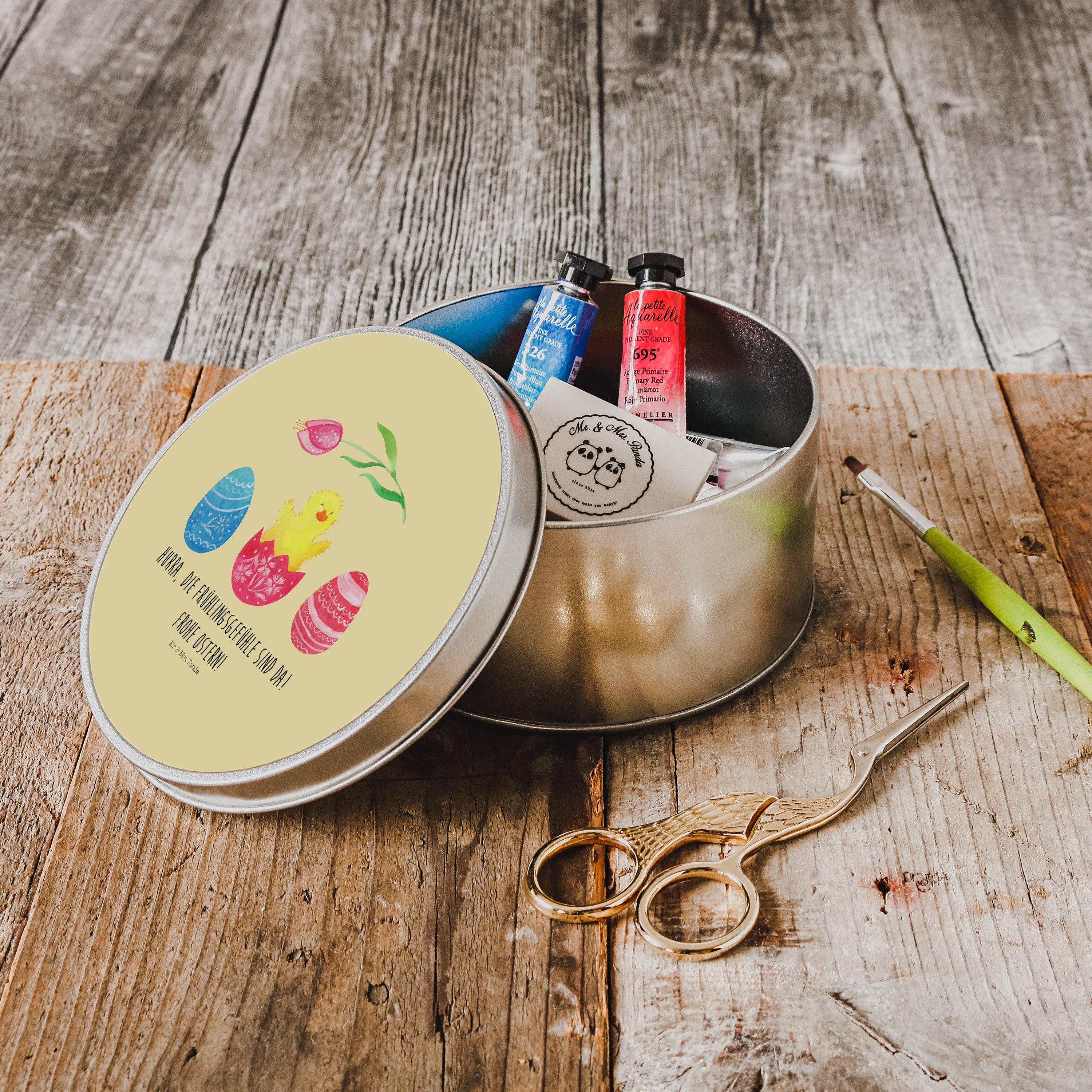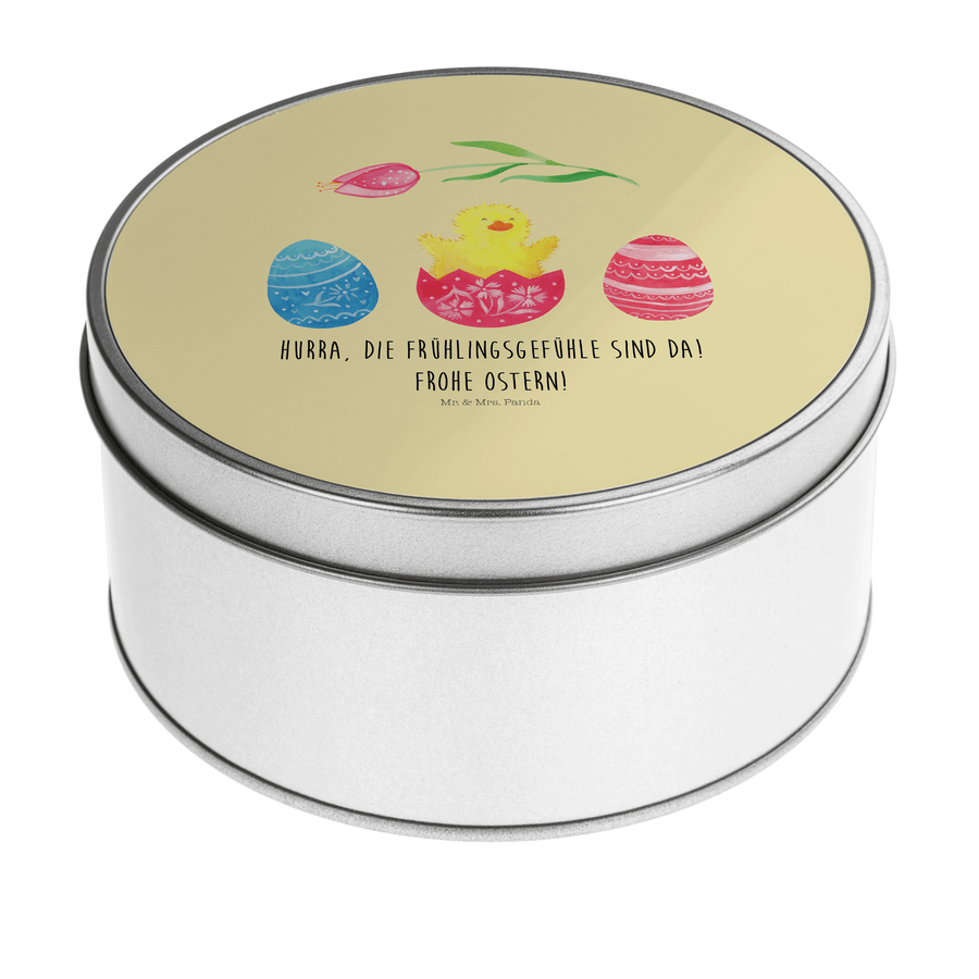 Blechdose rund Küken geschlüpft - mit Spruch - Gelb Pastell
