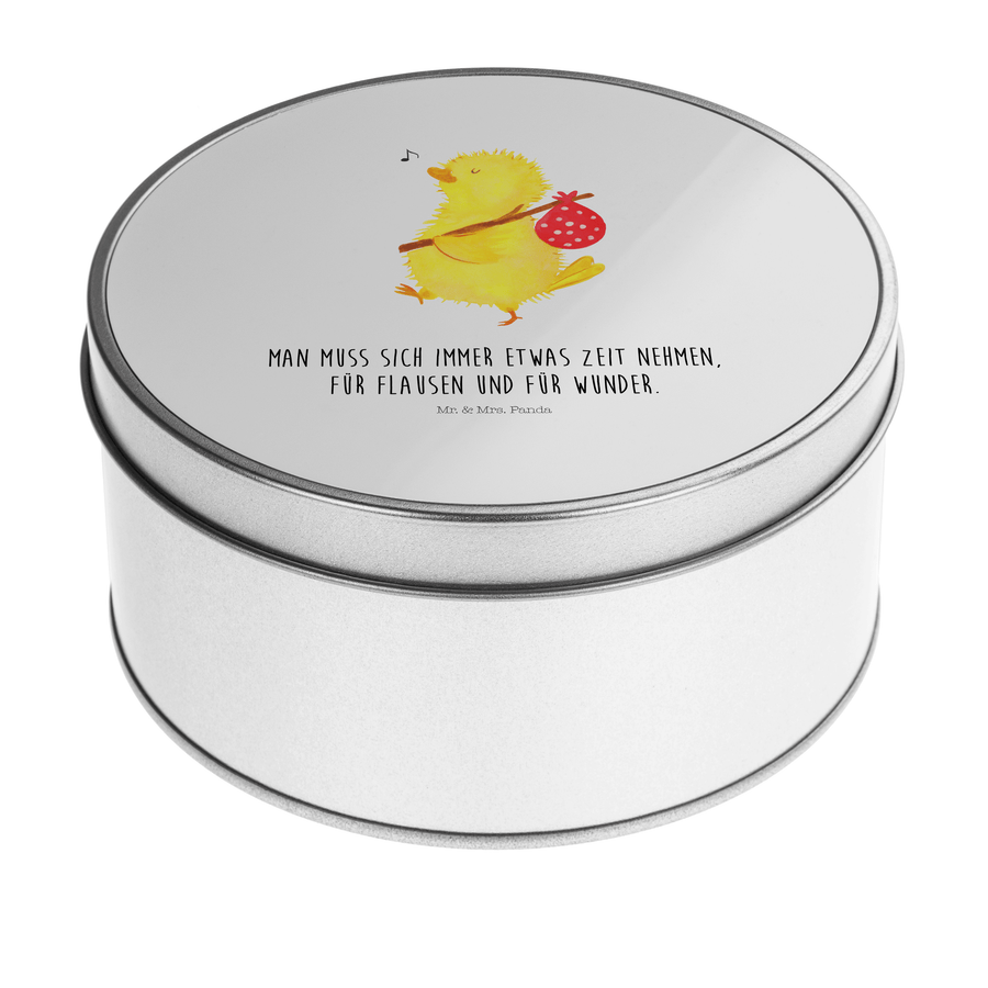 Blechdose rund Küken Wanderer - mit Spruch - Weiß