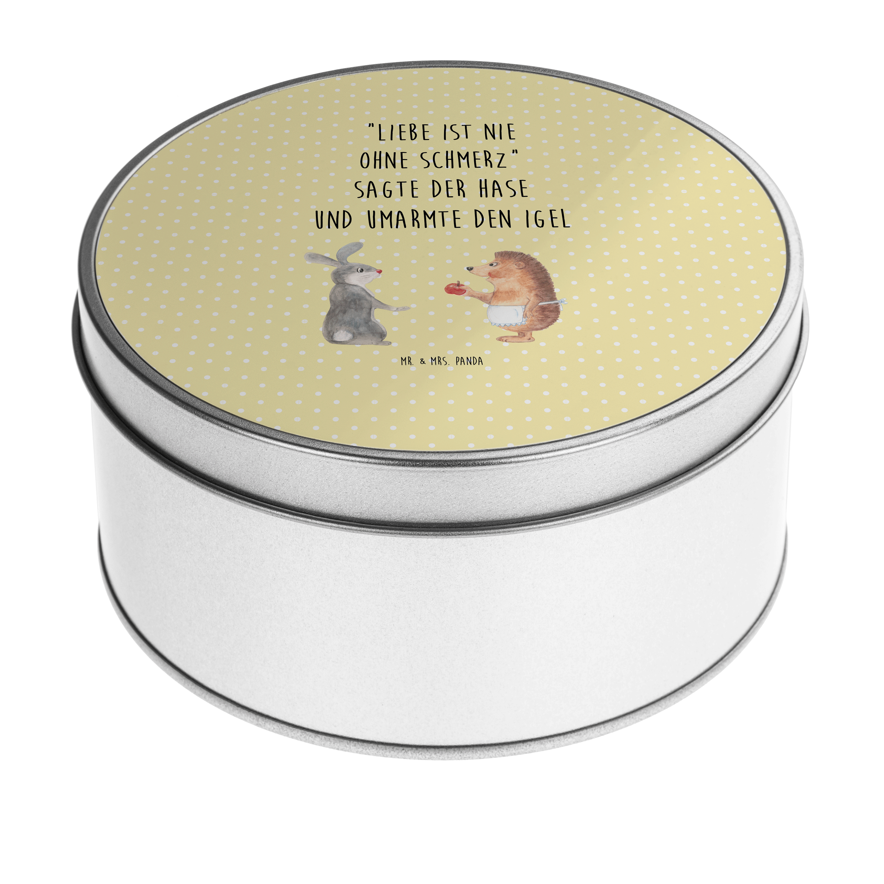 Blechdose rund Liebe ist nie ohne Schmerz - mit Spruch - Gelb Pastell