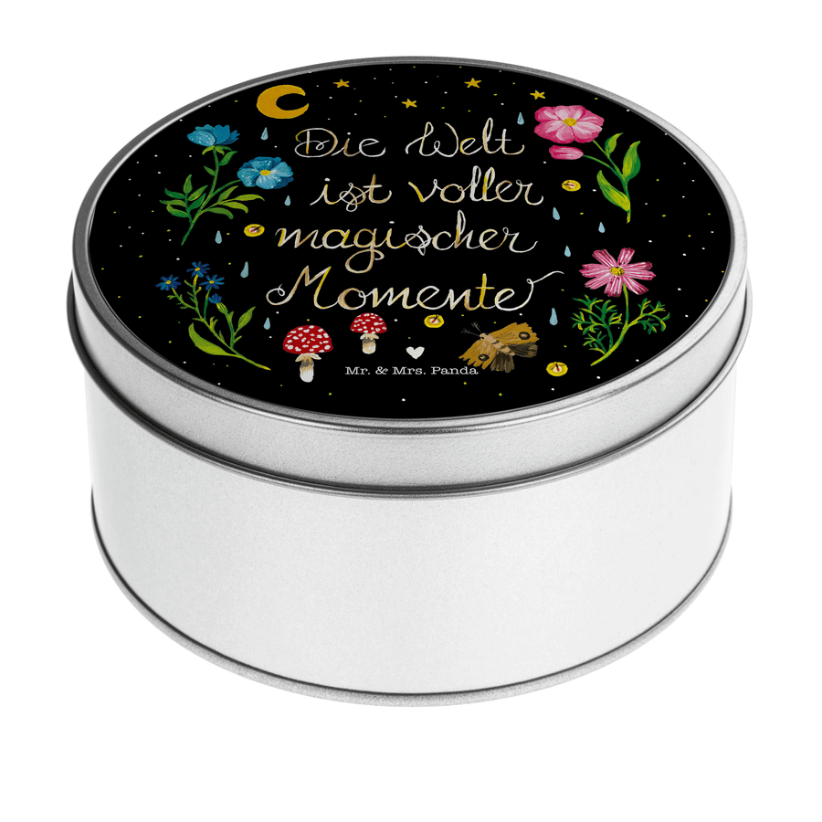 Blechdose rund Magische Welt Metalldose, Keksdose, Dose, Vorratsdose, Geschenkbox, Blumen Deko, Frühlings Deko, Sommer Deko, Dekoration, positive Botschaft, Naturliebhaber, Outdoor, Natur, Abenteuer, Magische Momente, Spruch schön, Spruch positiv, Motivation, schwarz, magisch, Blumen, Nacht, Weisheit