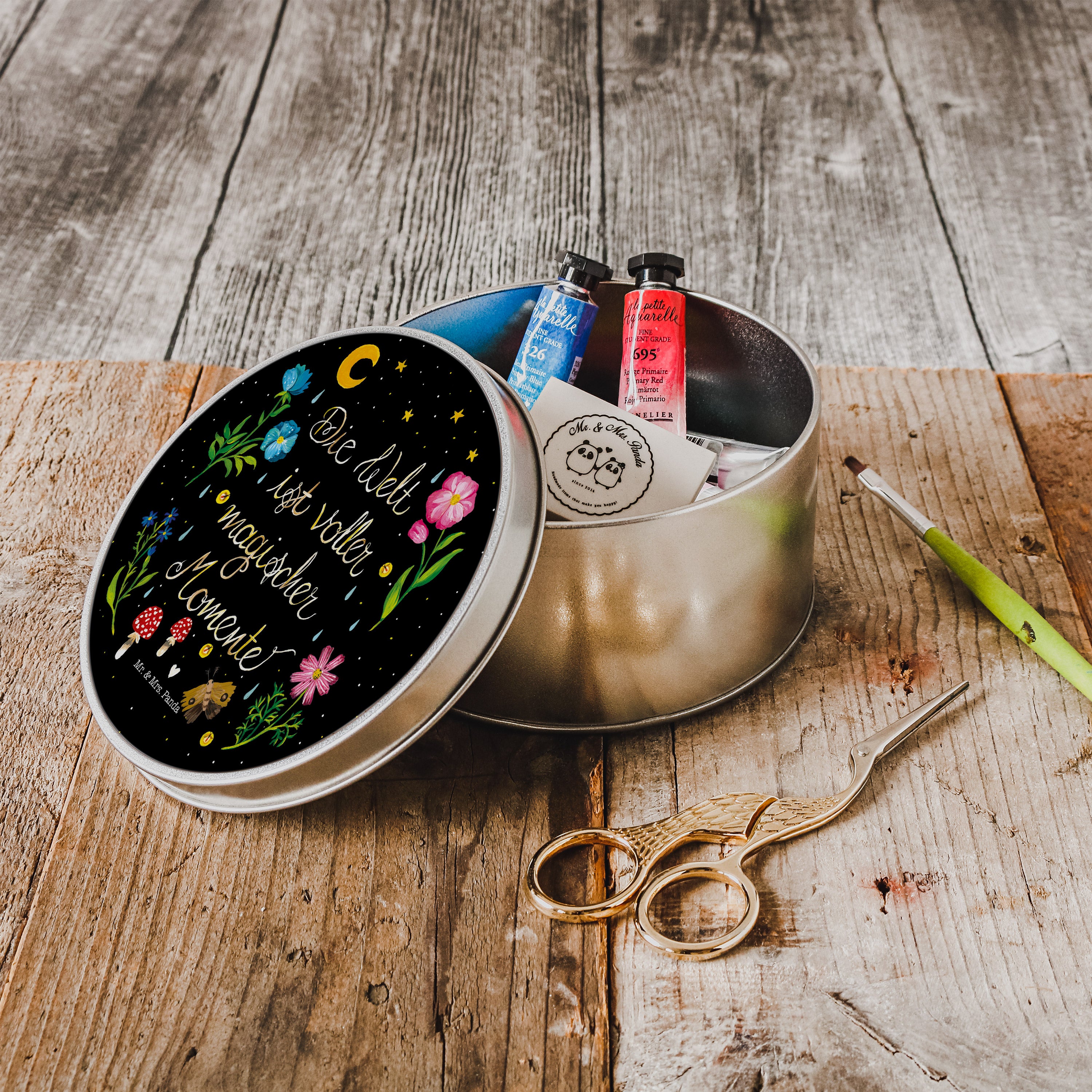 Diese wunderschöne Dose von Mr. & Mrs. Panda ist wirklich etwas ganz Besonderes - sie ist stabil, sehr hochwertig und mit einer exklusiv bedruckten Abdeckung ausgestattet.