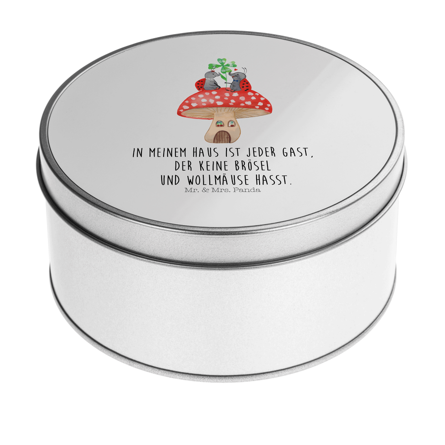 Blechdose rund Marienkäfer Paar Fliegenpilz - mit Spruch - Weiß