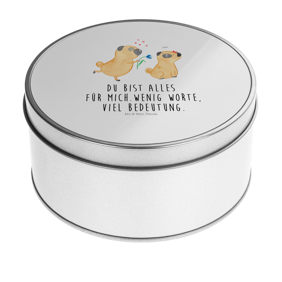 Blechdose rund Mops verliebt - mit Spruch - Weiß