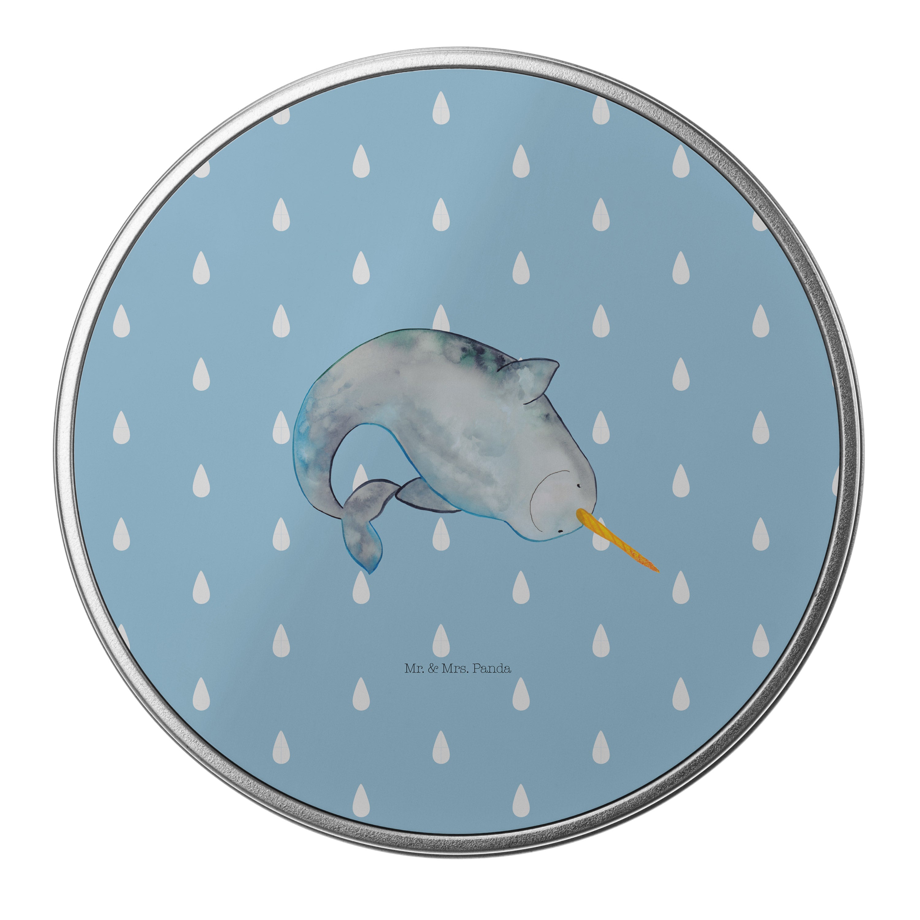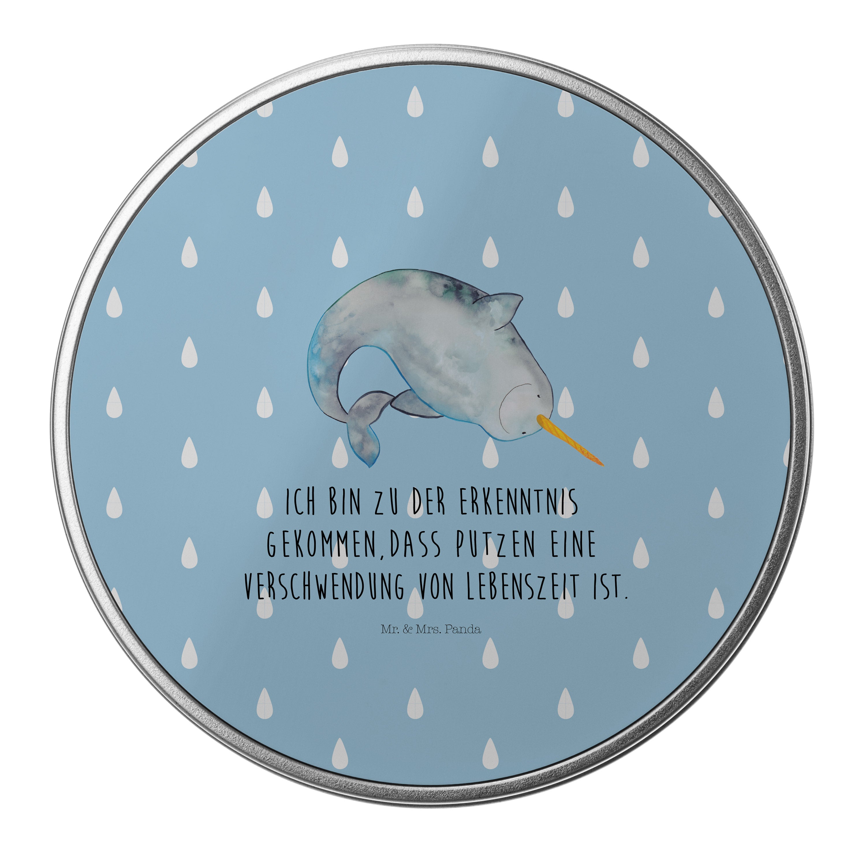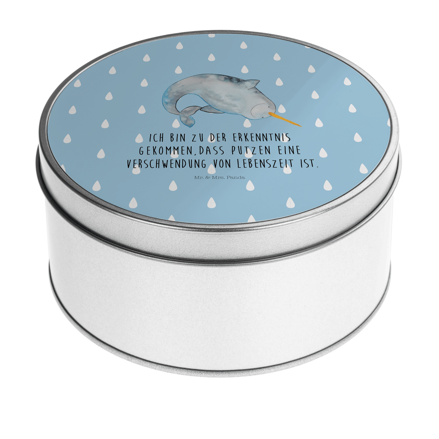 Blechdose rund Narwal Metalldose, Keksdose, Dose, Vorratsdose, Geschenkbox, Meerestiere, Meer, Urlaub, Narwal, Wal, Putzen, Hausfrau, Junggesellin, aufräumen, Kinderzimmer