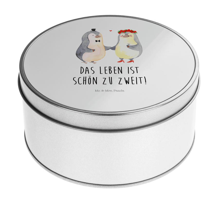 Blechdose rund Pinguin Heirat - mit Spruch - Weiß
